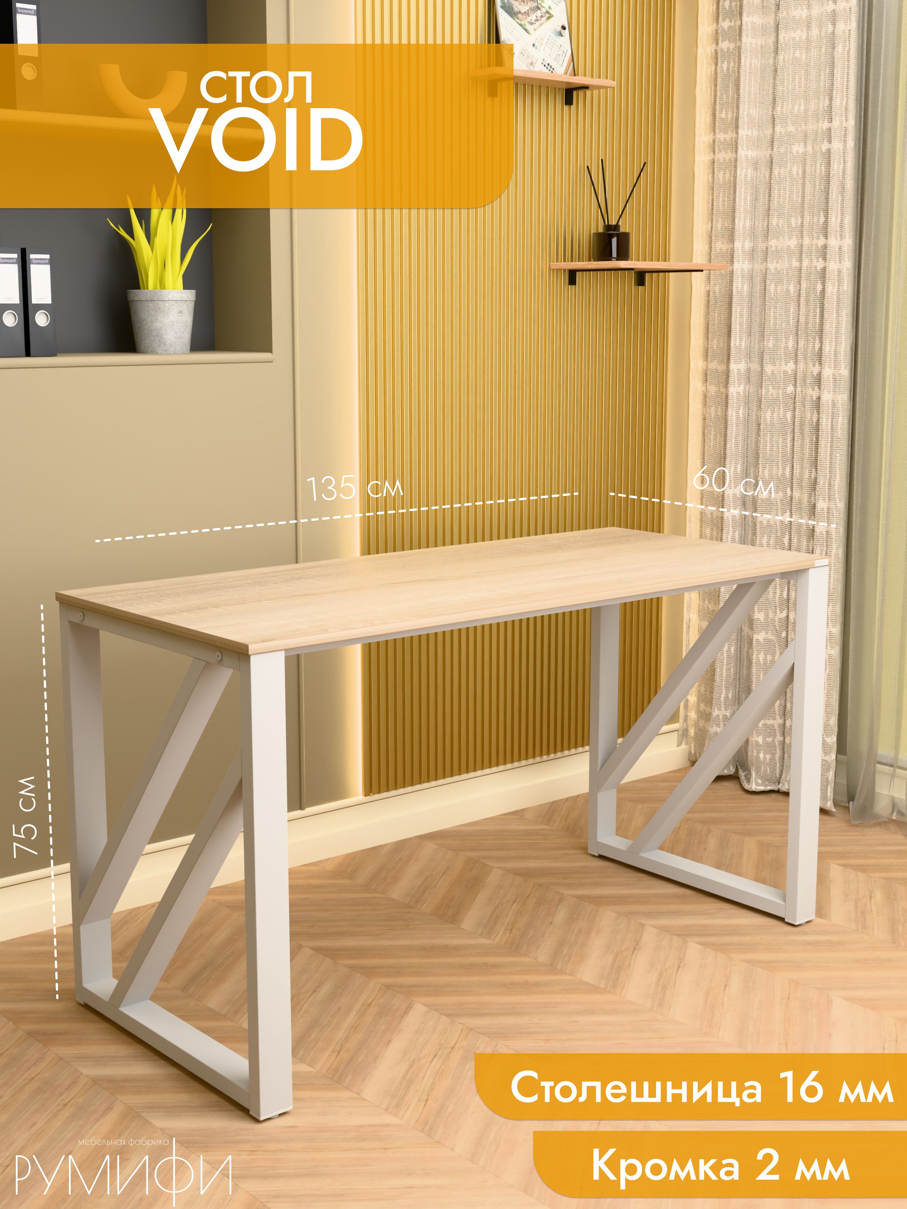 Модель Void отличается эффектным дизайном с диагональными перекрестными элементами на опорах. Благодаря такой конструкции стол выглядит технологично и современно, гармонично вписываясь как в офисное пространство, так и в домашний интерьер. Металлическое подстолье покрыто прочной порошковой краской, устойчивой к сколам и коррозии. Столешница из ЛДСП премиум с защитной кромкой гарантирует долговечность и удобство в эксплуатации. Размеры: ширина 120/135/155 см, глубина 60/70 см. Цвета: белая, антрацит, ателье светлый, дуб Сонома, дуб Табак. Цвет подстолья: белый или черный. Void — стильный акцент в интерьере с продуманной эргономикой.