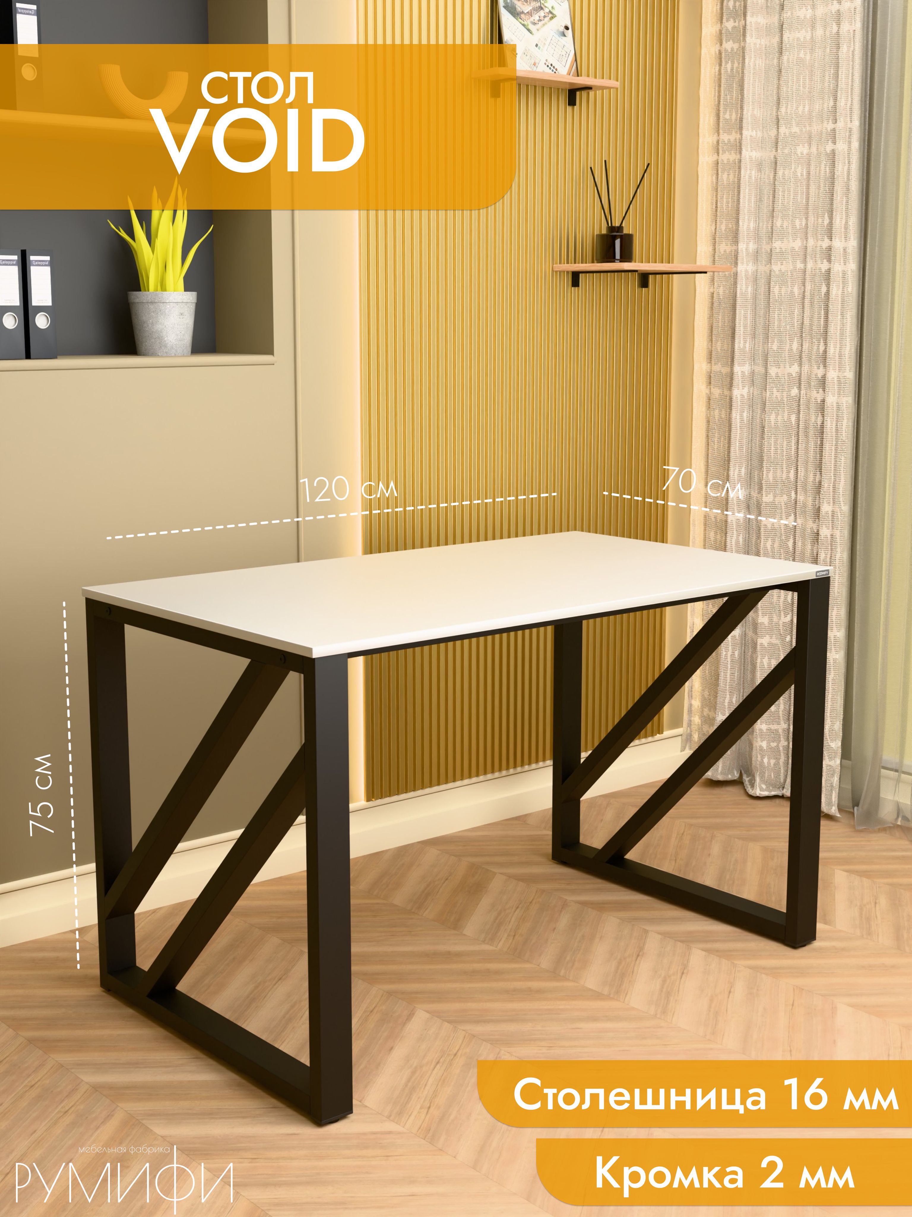 Модель Void отличается эффектным дизайном с диагональными перекрестными элементами на опорах. Благодаря такой конструкции стол выглядит технологично и современно, гармонично вписываясь как в офисное пространство, так и в домашний интерьер. Металлическое подстолье покрыто прочной порошковой краской, устойчивой к сколам и коррозии. Столешница из ЛДСП премиум с защитной кромкой гарантирует долговечность и удобство в эксплуатации. Размеры: ширина 120/135/155 см, глубина 60/70 см. Цвета: белая, антрацит, ателье светлый, дуб Сонома, дуб Табак. Цвет подстолья: белый или черный. Void — стильный акцент в интерьере с продуманной эргономикой.