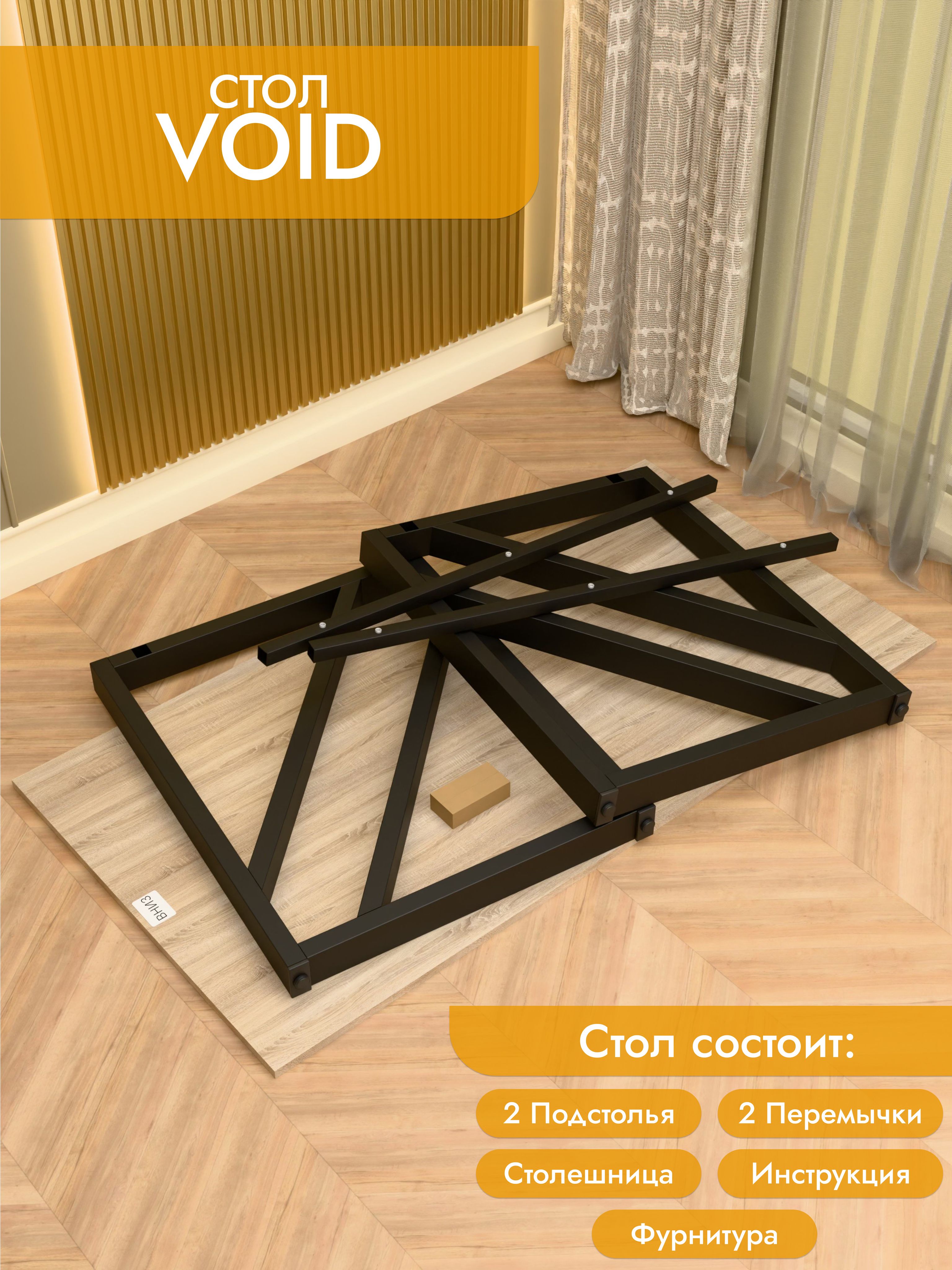 Модель Void отличается эффектным дизайном с диагональными перекрестными элементами на опорах. Благодаря такой конструкции стол выглядит технологично и современно, гармонично вписываясь как в офисное пространство, так и в домашний интерьер. Металлическое подстолье покрыто прочной порошковой краской, устойчивой к сколам и коррозии. Столешница из ЛДСП премиум с защитной кромкой гарантирует долговечность и удобство в эксплуатации. Размеры: ширина 120/135/155 см, глубина 60/70 см. Цвета: белая, антрацит, ателье светлый, дуб Сонома, дуб Табак. Цвет подстолья: белый или черный. Void — стильный акцент в интерьере с продуманной эргономикой.