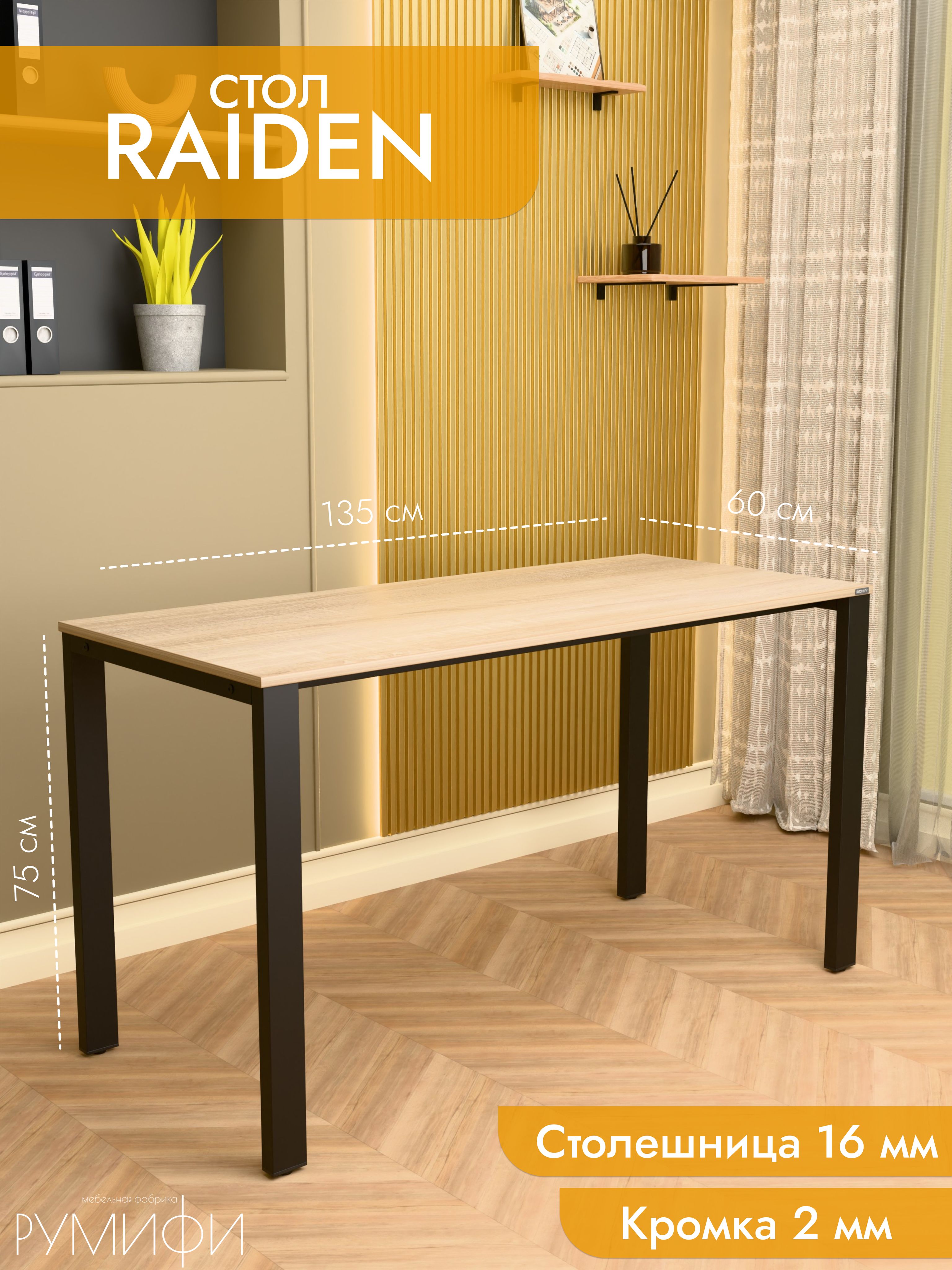 RAIDEN — это стол с мощным и выразительным характером. Подстолье выполнено в виде массивных рам с диагональными усилителями, что придаёт конструкции брутальность и подчёркивает индустриальный стиль. Столешница толщиной 16 мм доступна в популярных декорах: дуб сонома, дуб табак, антрацит, ателье светлый и белый. Металлическое основание предлагается в чёрном и белом муаре, сером матовом и хроме. Размеры от 100 до 200 см позволяют использовать RAIDEN как дома, так и в офисе. Его конструкция рассчитана на высокие нагрузки, а дизайн органично вписывается в интерьеры в стиле лофт или хай-тек. RAIDEN создаёт атмосферу силы и надёжности. Это модель для тех, кто ценит уверенность и долговечность мебели. Резюме: RAIDEN — это мощный и стильный стол. Он станет основой современного рабочего пространства с акцентом на надёжность.