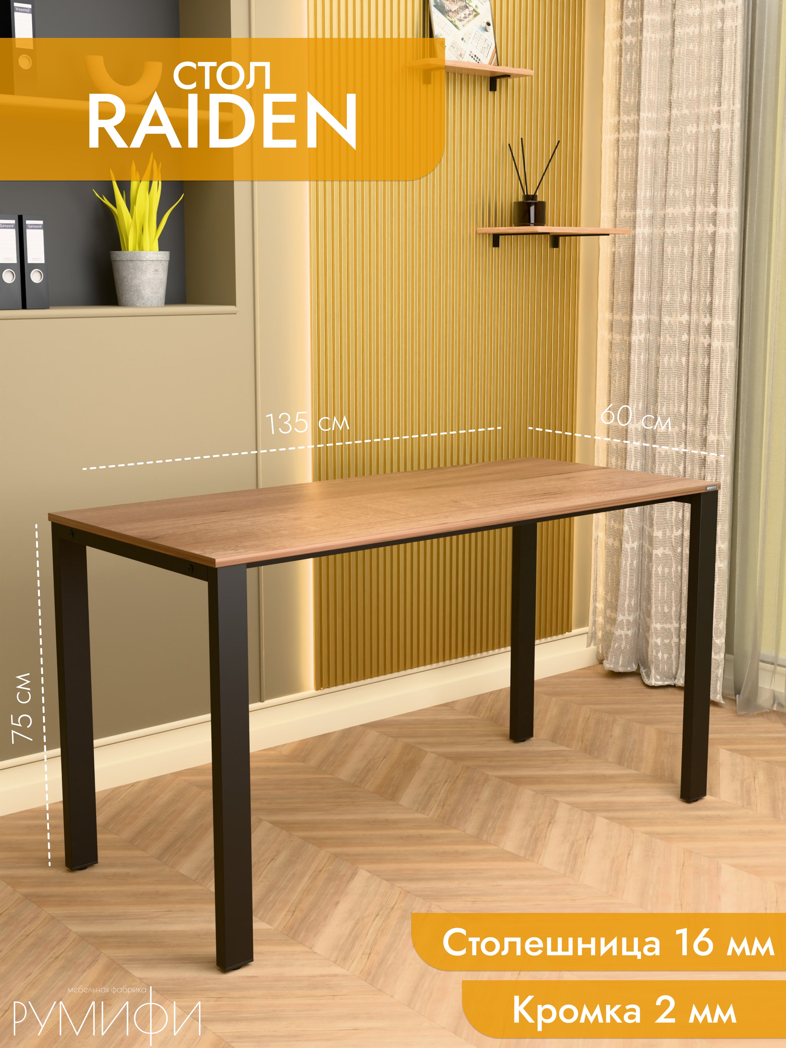 RAIDEN — это стол с мощным и выразительным характером. Подстолье выполнено в виде массивных рам с диагональными усилителями, что придаёт конструкции брутальность и подчёркивает индустриальный стиль. Столешница толщиной 16 мм доступна в популярных декорах: дуб сонома, дуб табак, антрацит, ателье светлый и белый. Металлическое основание предлагается в чёрном и белом муаре, сером матовом и хроме. Размеры от 100 до 200 см позволяют использовать RAIDEN как дома, так и в офисе. Его конструкция рассчитана на высокие нагрузки, а дизайн органично вписывается в интерьеры в стиле лофт или хай-тек. RAIDEN создаёт атмосферу силы и надёжности. Это модель для тех, кто ценит уверенность и долговечность мебели. Резюме: RAIDEN — это мощный и стильный стол. Он станет основой современного рабочего пространства с акцентом на надёжность.