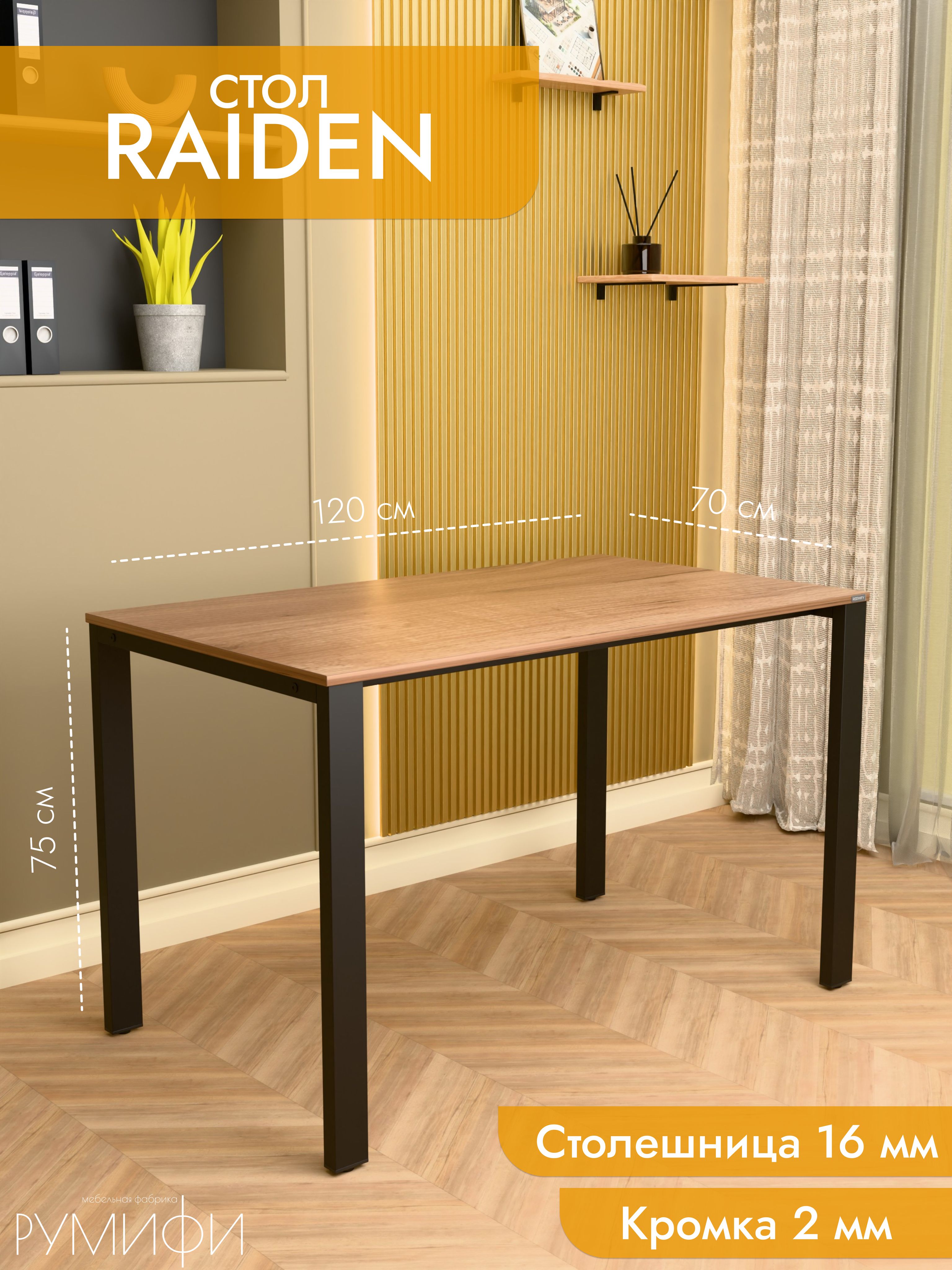 RAIDEN — это стол с мощным и выразительным характером. Подстолье выполнено в виде массивных рам с диагональными усилителями, что придаёт конструкции брутальность и подчёркивает индустриальный стиль. Столешница толщиной 16 мм доступна в популярных декорах: дуб сонома, дуб табак, антрацит, ателье светлый и белый. Металлическое основание предлагается в чёрном и белом муаре, сером матовом и хроме. Размеры от 100 до 200 см позволяют использовать RAIDEN как дома, так и в офисе. Его конструкция рассчитана на высокие нагрузки, а дизайн органично вписывается в интерьеры в стиле лофт или хай-тек. RAIDEN создаёт атмосферу силы и надёжности. Это модель для тех, кто ценит уверенность и долговечность мебели. Резюме: RAIDEN — это мощный и стильный стол. Он станет основой современного рабочего пространства с акцентом на надёжность.