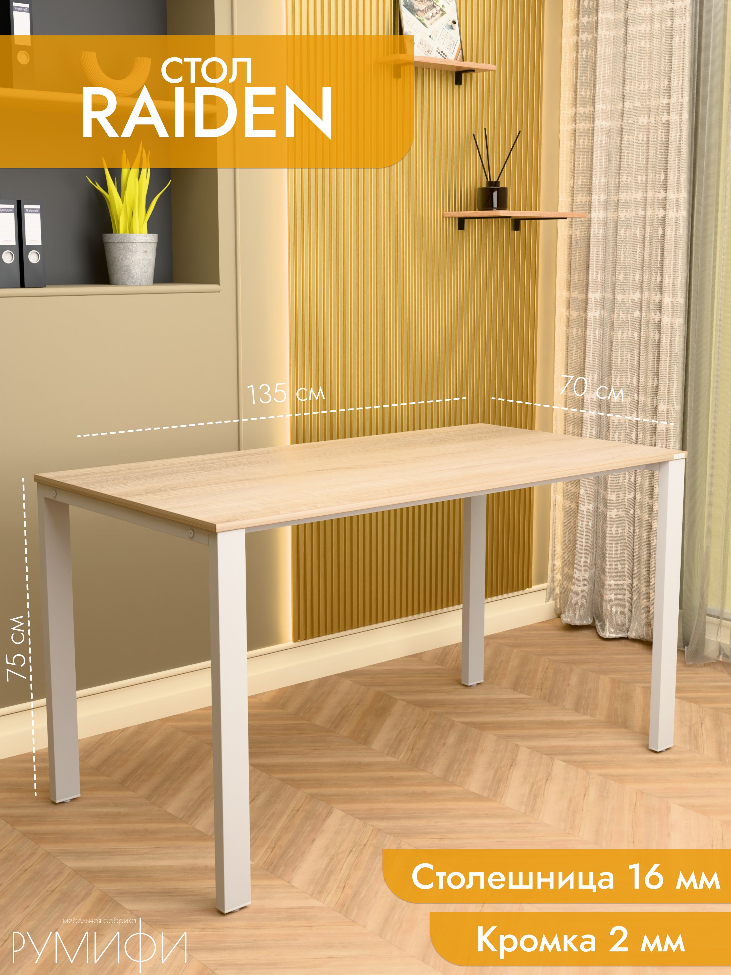 RAIDEN — это стол с мощным и выразительным характером. Подстолье выполнено в виде массивных рам с диагональными усилителями, что придаёт конструкции брутальность и подчёркивает индустриальный стиль. Столешница толщиной 16 мм доступна в популярных декорах: дуб сонома, дуб табак, антрацит, ателье светлый и белый. Металлическое основание предлагается в чёрном и белом муаре, сером матовом и хроме. Размеры от 100 до 200 см позволяют использовать RAIDEN как дома, так и в офисе. Его конструкция рассчитана на высокие нагрузки, а дизайн органично вписывается в интерьеры в стиле лофт или хай-тек. RAIDEN создаёт атмосферу силы и надёжности. Это модель для тех, кто ценит уверенность и долговечность мебели. Резюме: RAIDEN — это мощный и стильный стол. Он станет основой современного рабочего пространства с акцентом на надёжность.
