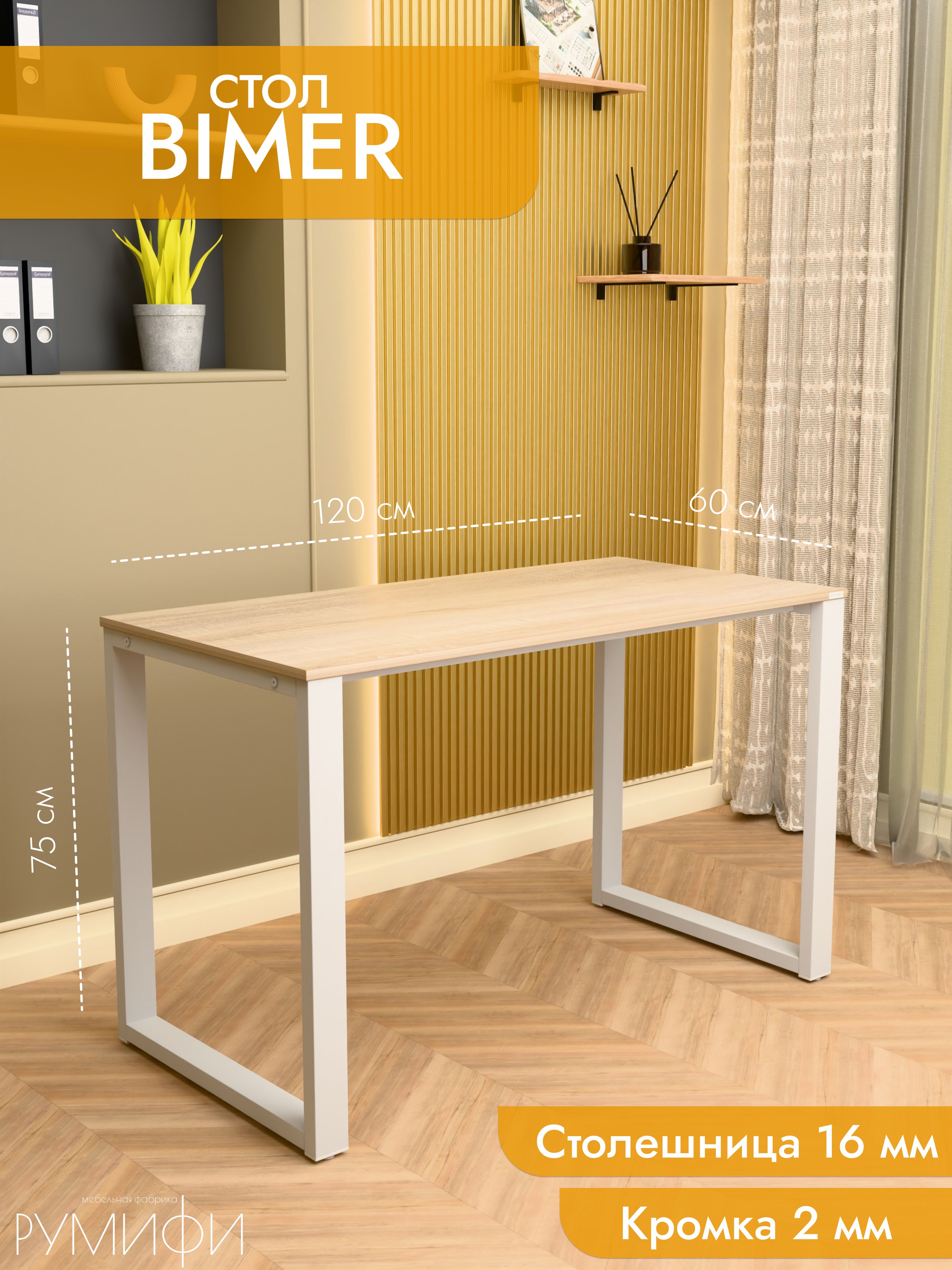 Модель Bimer выделяется подстольем в форме прямоугольной рамы, что делает ее особенно устойчивой и визуально легкой. Конструкция из стали с порошковым покрытием не боится времени и сохраняет аккуратный вид. Столешница выполнена из ЛДСП премиум, устойчива к царапинам и легко моется. Размеры: ширина 120/135/155 см, глубина 60/70 см. Цвета: белая, антрацит, ателье светлый, дуб Сонома, дуб Табак. Цвет подстолья: белый или черный. Bimer — надежный и стильный партнер для вашего рабочего пространства.