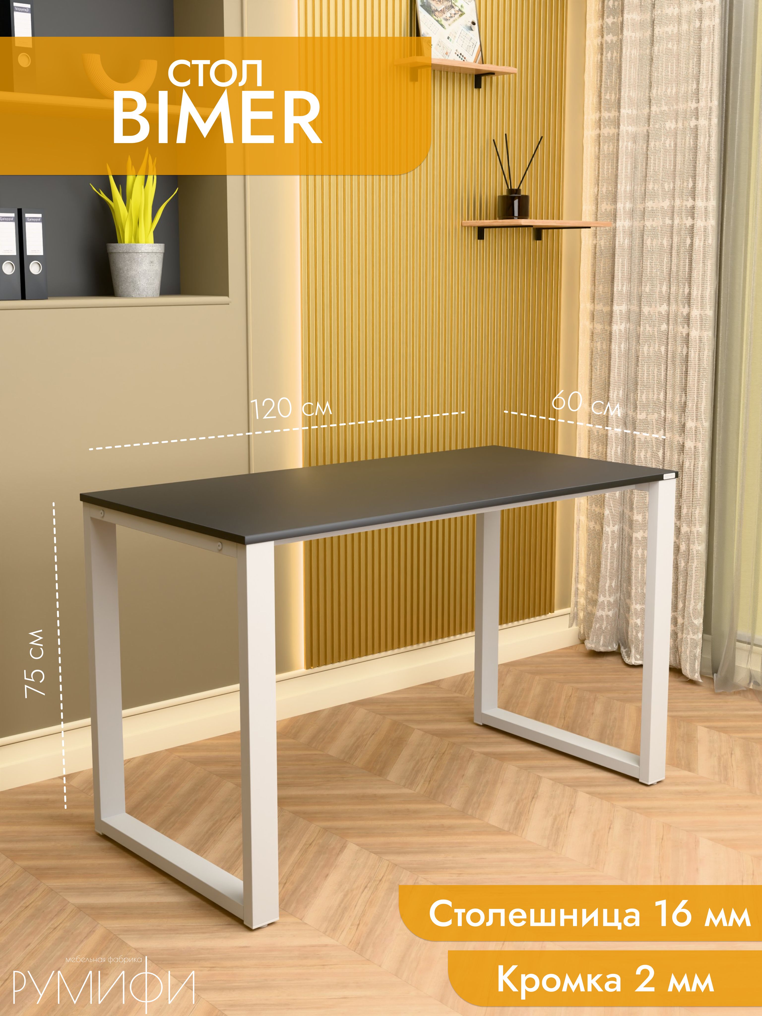 Модель Bimer выделяется подстольем в форме прямоугольной рамы, что делает ее особенно устойчивой и визуально легкой. Конструкция из стали с порошковым покрытием не боится времени и сохраняет аккуратный вид. Столешница выполнена из ЛДСП премиум, устойчива к царапинам и легко моется. Размеры: ширина 120/135/155 см, глубина 60/70 см. Цвета: белая, антрацит, ателье светлый, дуб Сонома, дуб Табак. Цвет подстолья: белый или черный. Bimer — надежный и стильный партнер для вашего рабочего пространства.