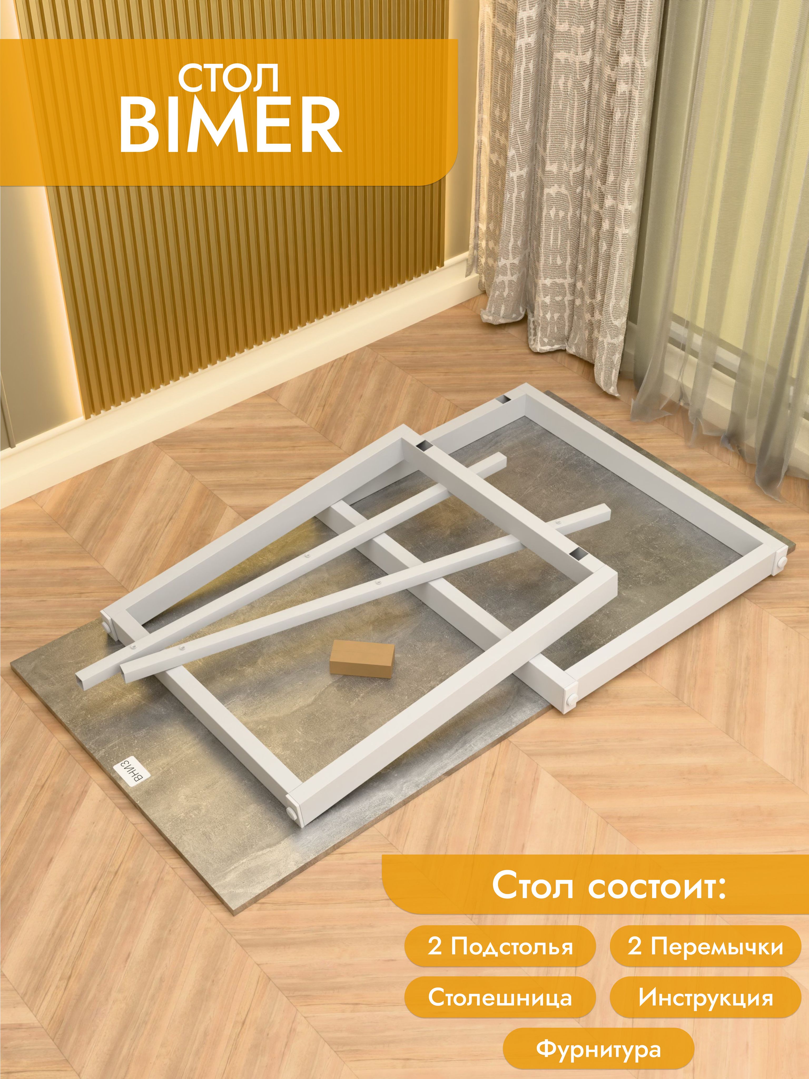 Модель Bimer выделяется подстольем в форме прямоугольной рамы, что делает ее особенно устойчивой и визуально легкой. Конструкция из стали с порошковым покрытием не боится времени и сохраняет аккуратный вид. Столешница выполнена из ЛДСП премиум, устойчива к царапинам и легко моется. Размеры: ширина 120/135/155 см, глубина 60/70 см. Цвета: белая, антрацит, ателье светлый, дуб Сонома, дуб Табак. Цвет подстолья: белый или черный. Bimer — надежный и стильный партнер для вашего рабочего пространства.