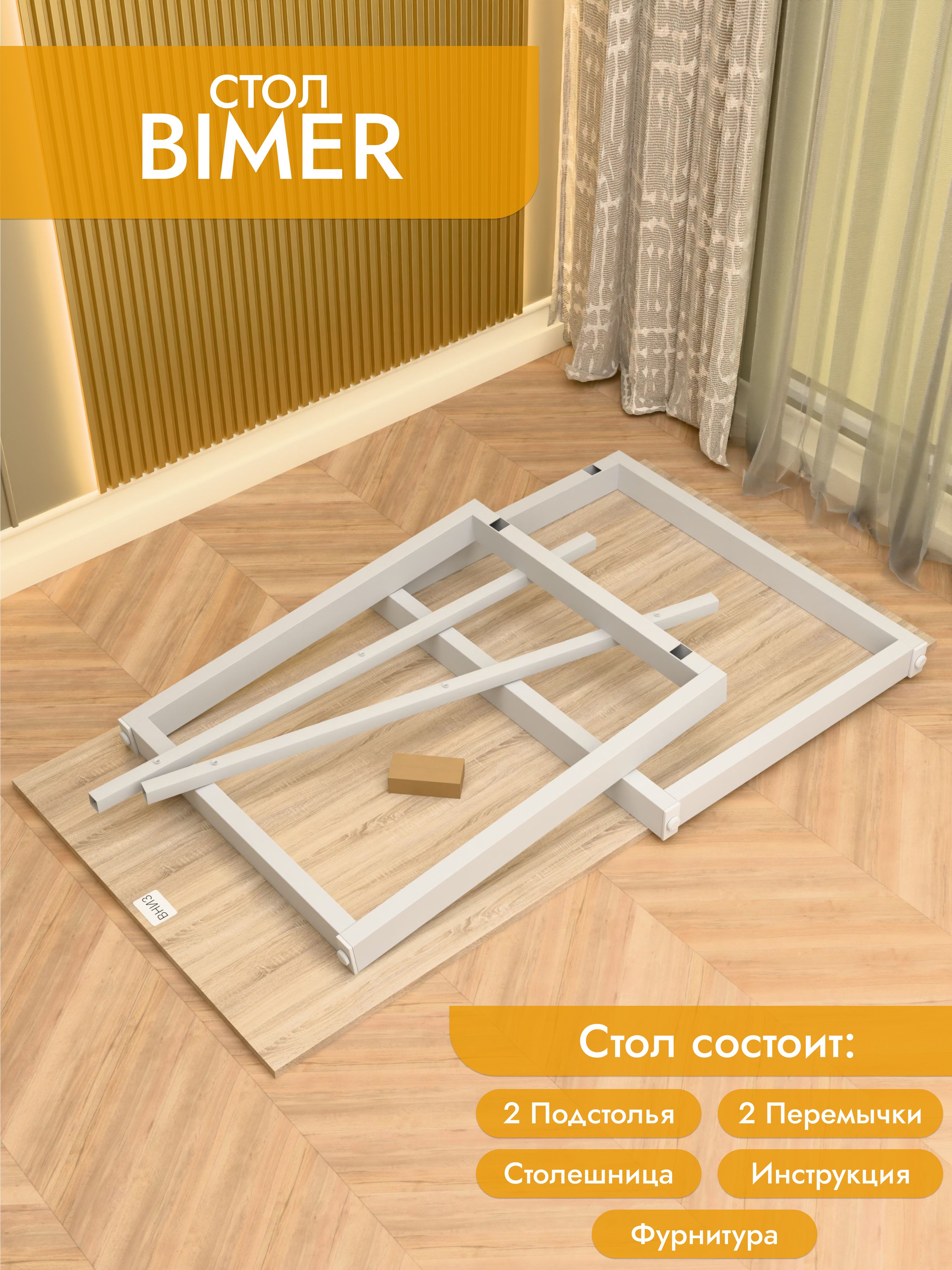 Модель Bimer выделяется подстольем в форме прямоугольной рамы, что делает ее особенно устойчивой и визуально легкой. Конструкция из стали с порошковым покрытием не боится времени и сохраняет аккуратный вид. Столешница выполнена из ЛДСП премиум, устойчива к царапинам и легко моется. Размеры: ширина 120/135/155 см, глубина 60/70 см. Цвета: белая, антрацит, ателье светлый, дуб Сонома, дуб Табак. Цвет подстолья: белый или черный. Bimer — надежный и стильный партнер для вашего рабочего пространства.