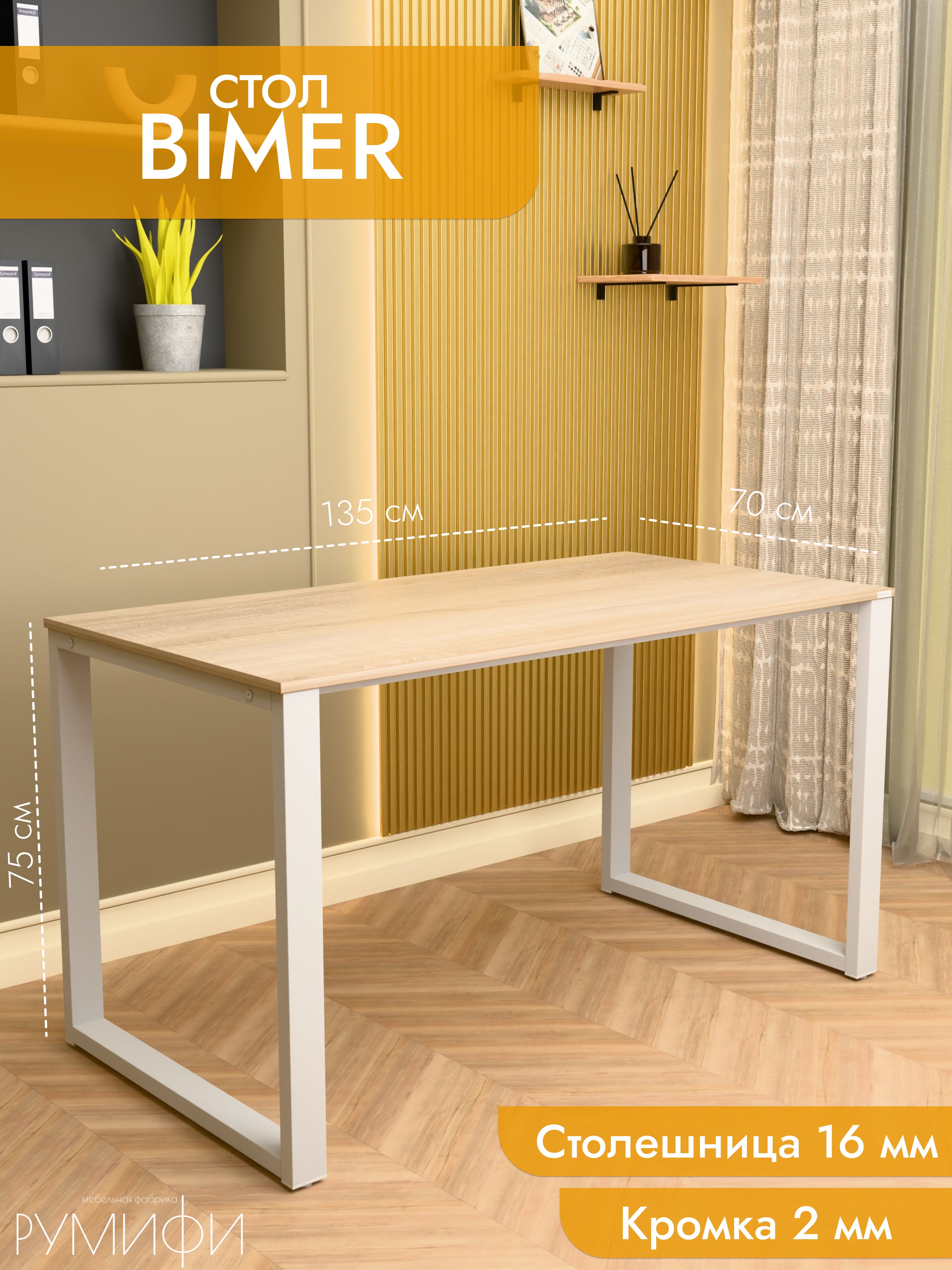 Модель Bimer выделяется подстольем в форме прямоугольной рамы, что делает ее особенно устойчивой и визуально легкой. Конструкция из стали с порошковым покрытием не боится времени и сохраняет аккуратный вид. Столешница выполнена из ЛДСП премиум, устойчива к царапинам и легко моется. Размеры: ширина 120/135/155 см, глубина 60/70 см. Цвета: белая, антрацит, ателье светлый, дуб Сонома, дуб Табак. Цвет подстолья: белый или черный. Bimer — надежный и стильный партнер для вашего рабочего пространства.