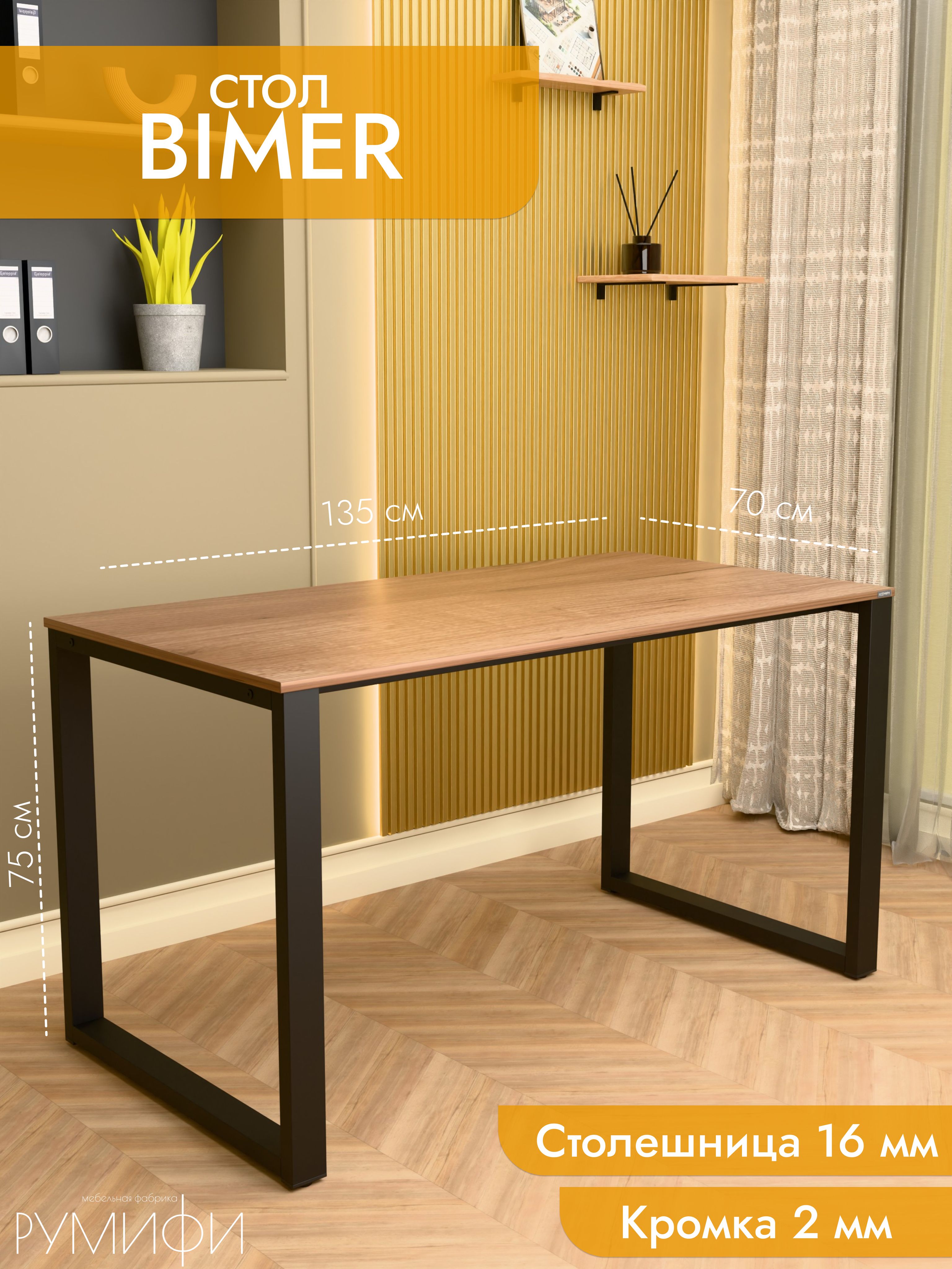 Модель Bimer выделяется подстольем в форме прямоугольной рамы, что делает ее особенно устойчивой и визуально легкой. Конструкция из стали с порошковым покрытием не боится времени и сохраняет аккуратный вид. Столешница выполнена из ЛДСП премиум, устойчива к царапинам и легко моется. Размеры: ширина 120/135/155 см, глубина 60/70 см. Цвета: белая, антрацит, ателье светлый, дуб Сонома, дуб Табак. Цвет подстолья: белый или черный. Bimer — надежный и стильный партнер для вашего рабочего пространства.