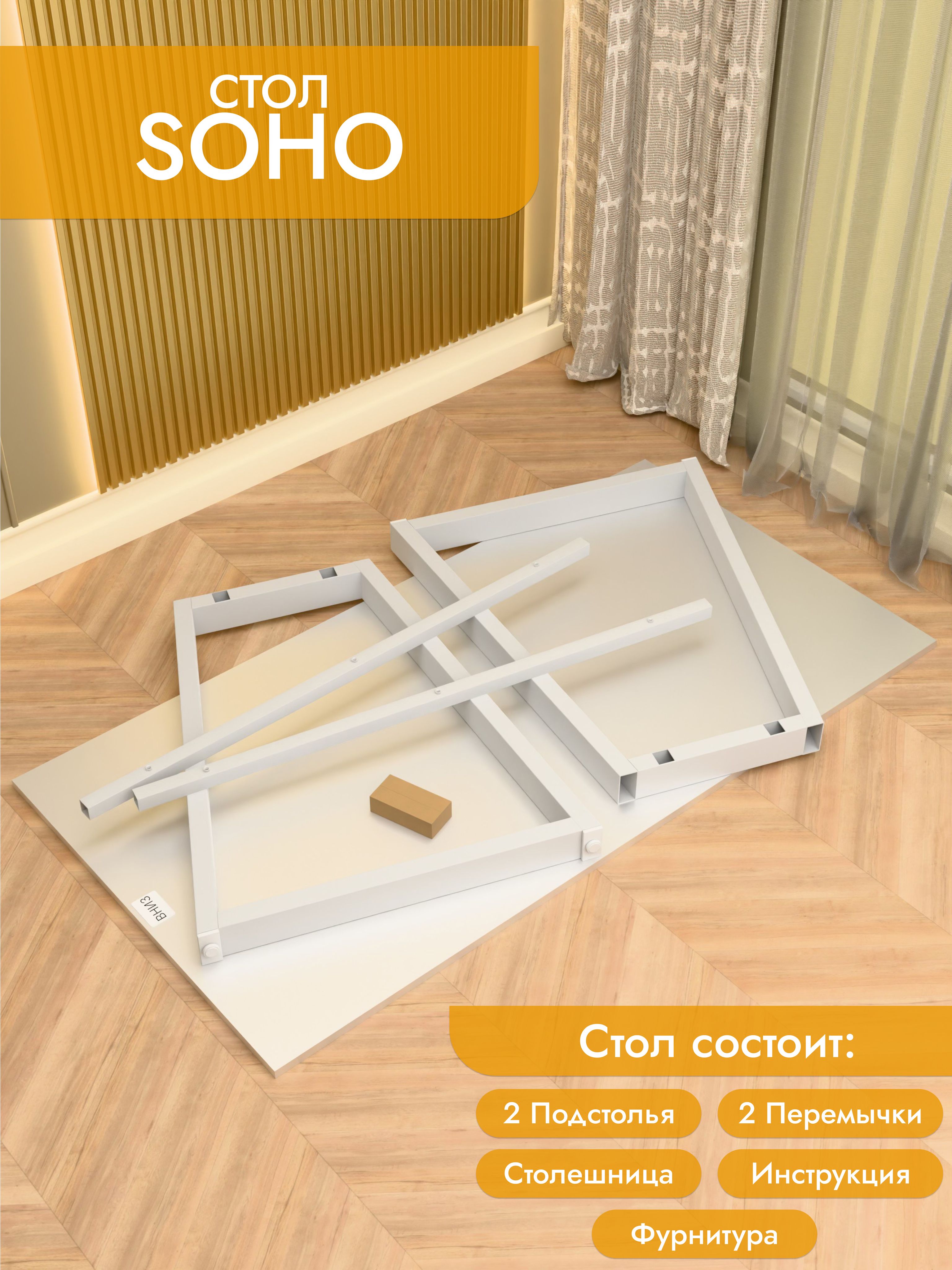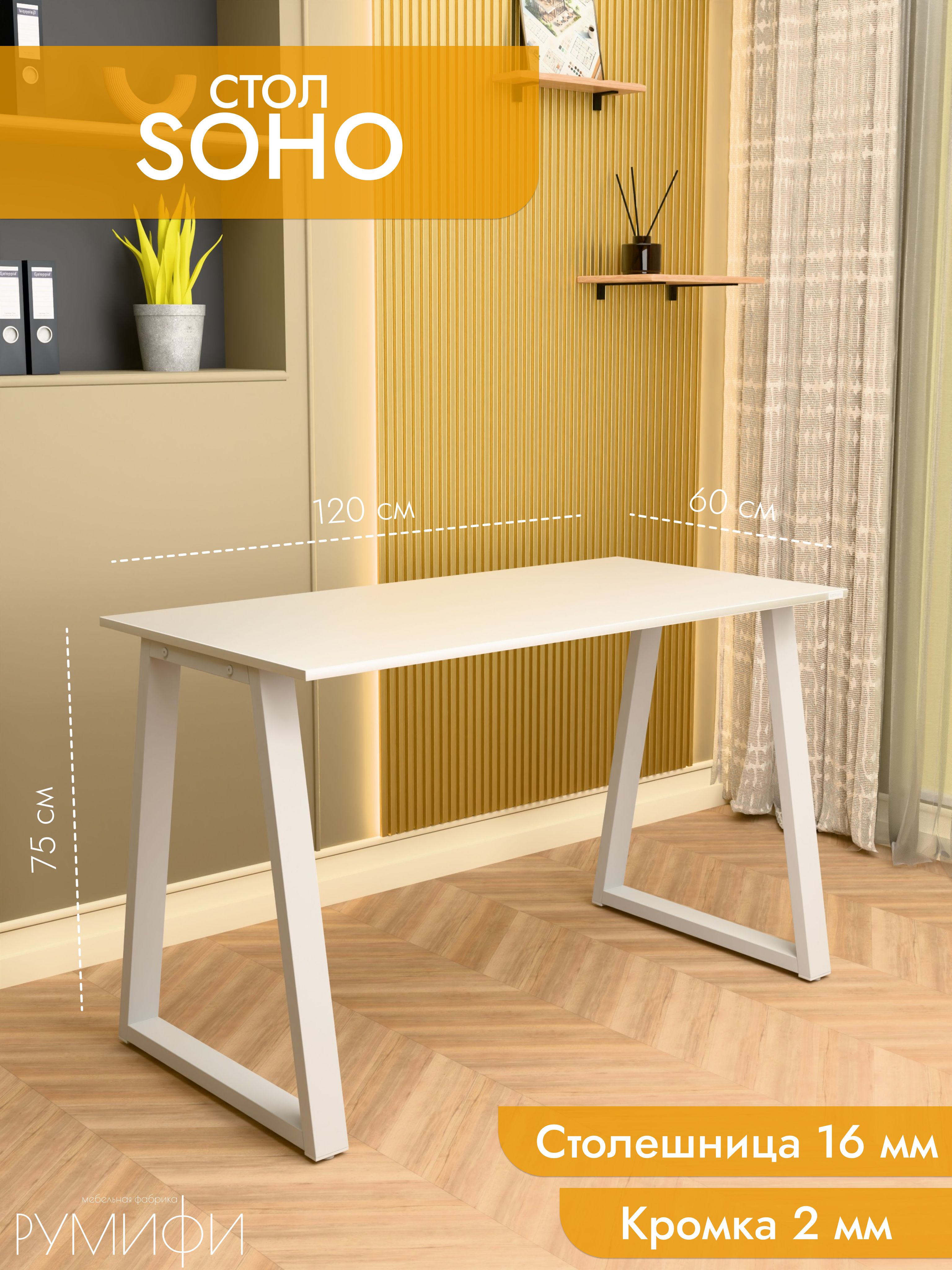 Стол Soho сочетает в себе легкость форм и современный минимализм. Скошенные опоры придают модели изящный вид, при этом не теряя в прочности. Металлическое основание устойчиво к нагрузкам и царапинам, а ЛДСП премиум с кромкой делает столешницу долговечной и удобной в уходе. Размеры: ширина 120/135/155 см, глубина 60/70 см. Цвета: белая, антрацит, ателье светлый, дуб Сонома, дуб Табак. Цвет подстолья: белый или черный. Soho — утонченное решение для стильного рабочего места.