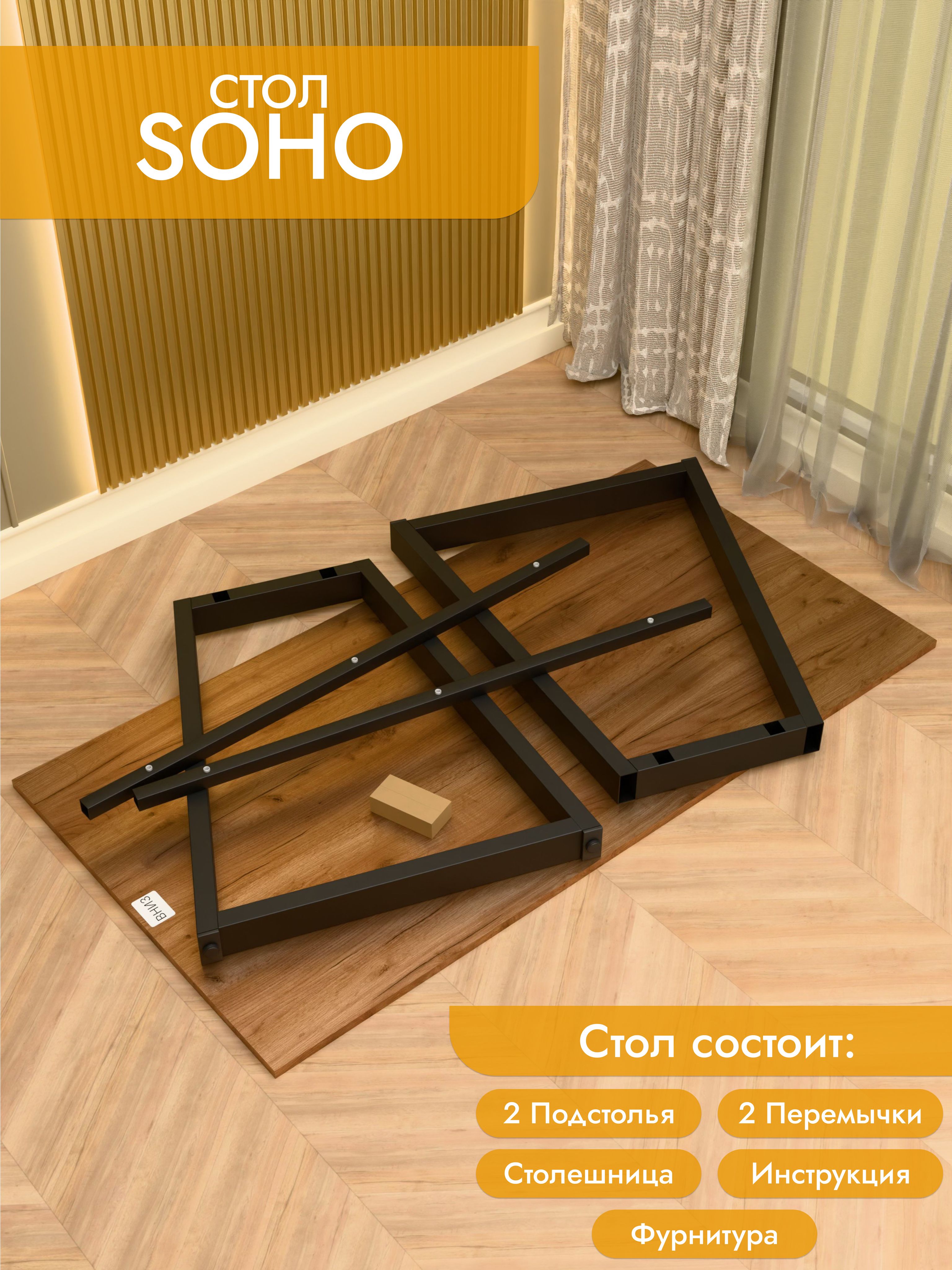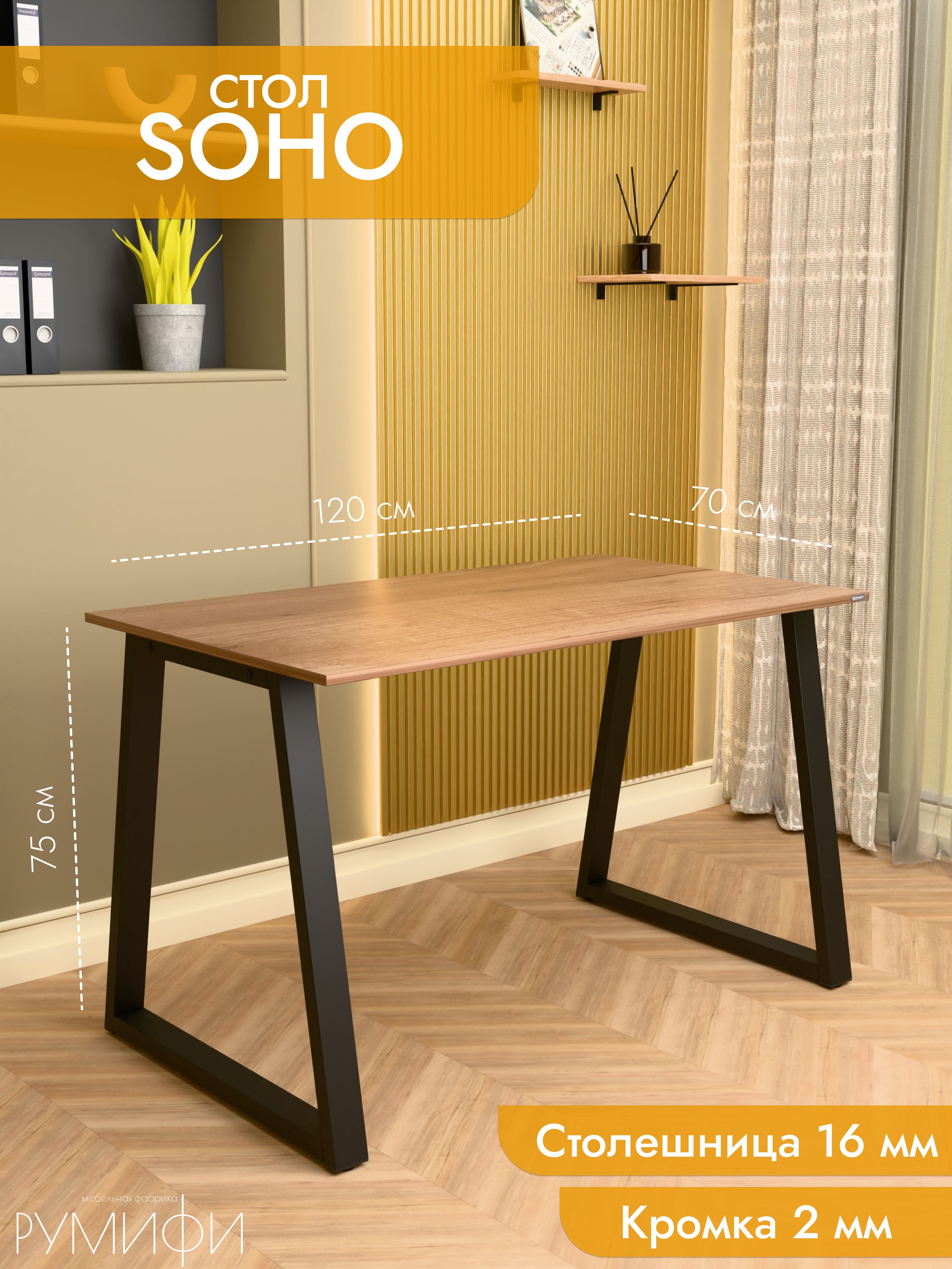 Стол Soho сочетает в себе легкость форм и современный минимализм. Скошенные опоры придают модели изящный вид, при этом не теряя в прочности. Металлическое основание устойчиво к нагрузкам и царапинам, а ЛДСП премиум с кромкой делает столешницу долговечной и удобной в уходе. Размеры: ширина 120/135/155 см, глубина 60/70 см. Цвета: белая, антрацит, ателье светлый, дуб Сонома, дуб Табак. Цвет подстолья: белый или черный. Soho — утонченное решение для стильного рабочего места.