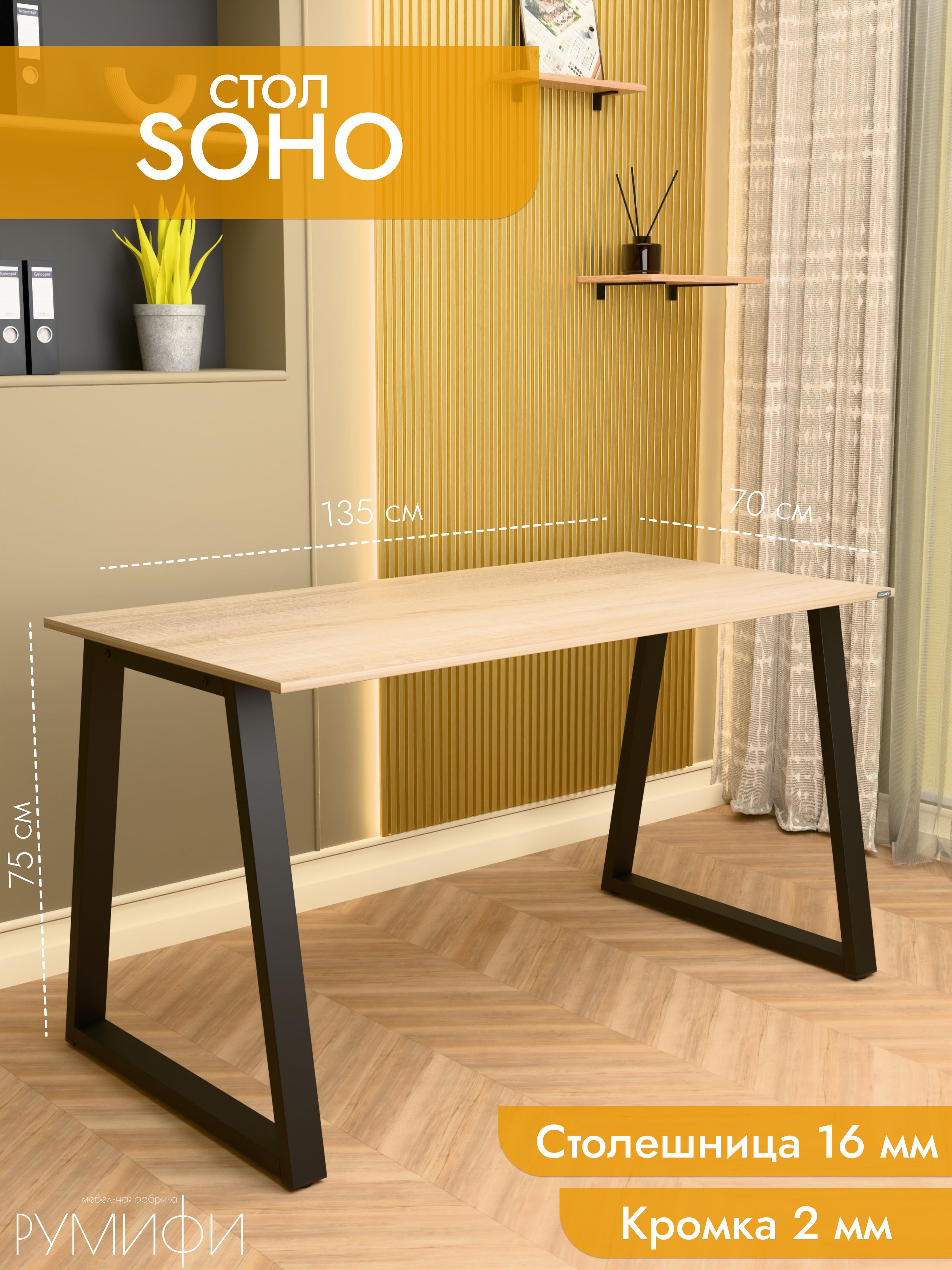 Стол Soho сочетает в себе легкость форм и современный минимализм. Скошенные опоры придают модели изящный вид, при этом не теряя в прочности. Металлическое основание устойчиво к нагрузкам и царапинам, а ЛДСП премиум с кромкой делает столешницу долговечной и удобной в уходе. Размеры: ширина 120/135/155 см, глубина 60/70 см. Цвета: белая, антрацит, ателье светлый, дуб Сонома, дуб Табак. Цвет подстолья: белый или черный. Soho — утонченное решение для стильного рабочего места.