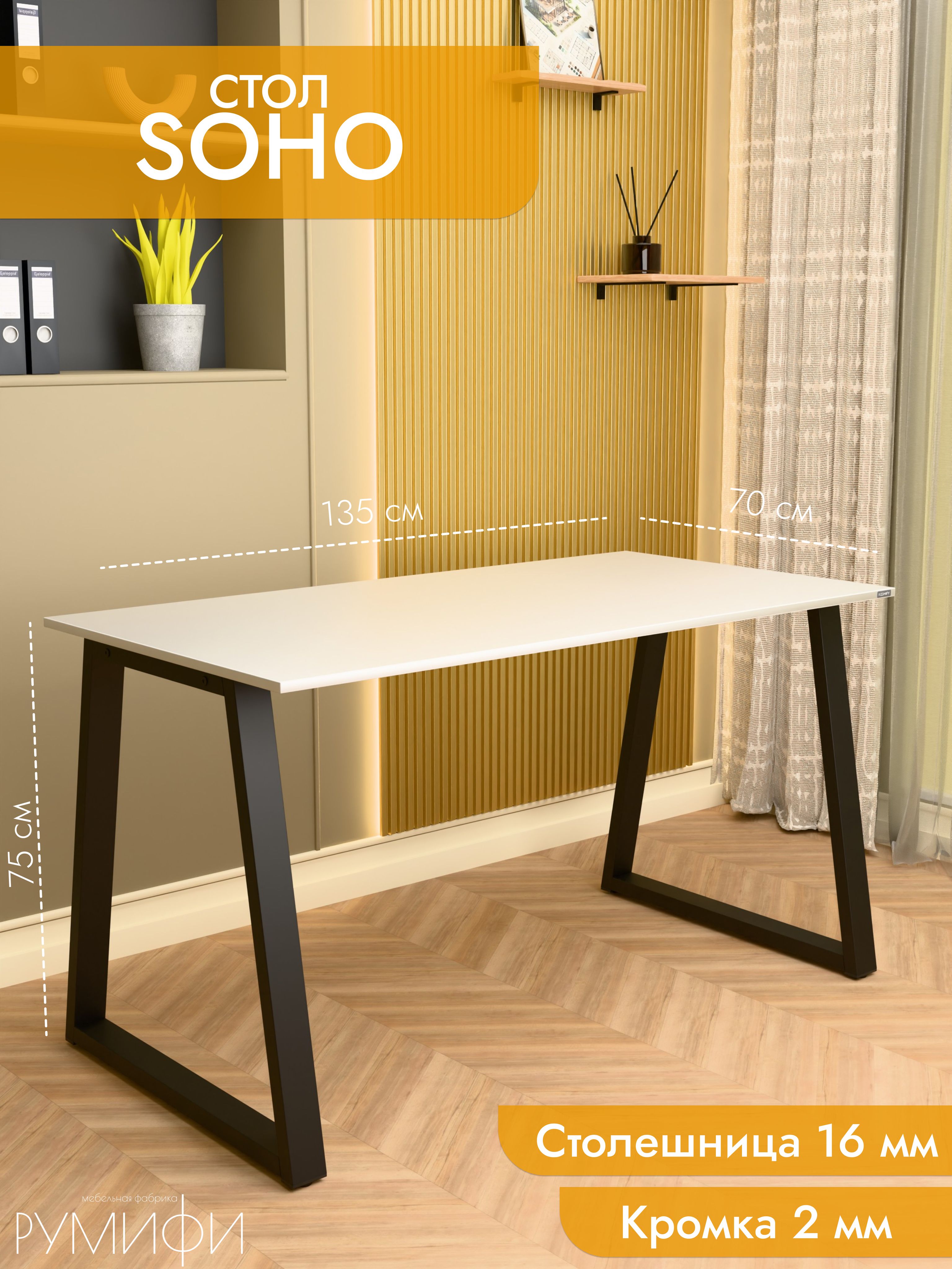 Стол Soho сочетает в себе легкость форм и современный минимализм. Скошенные опоры придают модели изящный вид, при этом не теряя в прочности. Металлическое основание устойчиво к нагрузкам и царапинам, а ЛДСП премиум с кромкой делает столешницу долговечной и удобной в уходе. Размеры: ширина 120/135/155 см, глубина 60/70 см. Цвета: белая, антрацит, ателье светлый, дуб Сонома, дуб Табак. Цвет подстолья: белый или черный. Soho — утонченное решение для стильного рабочего места.