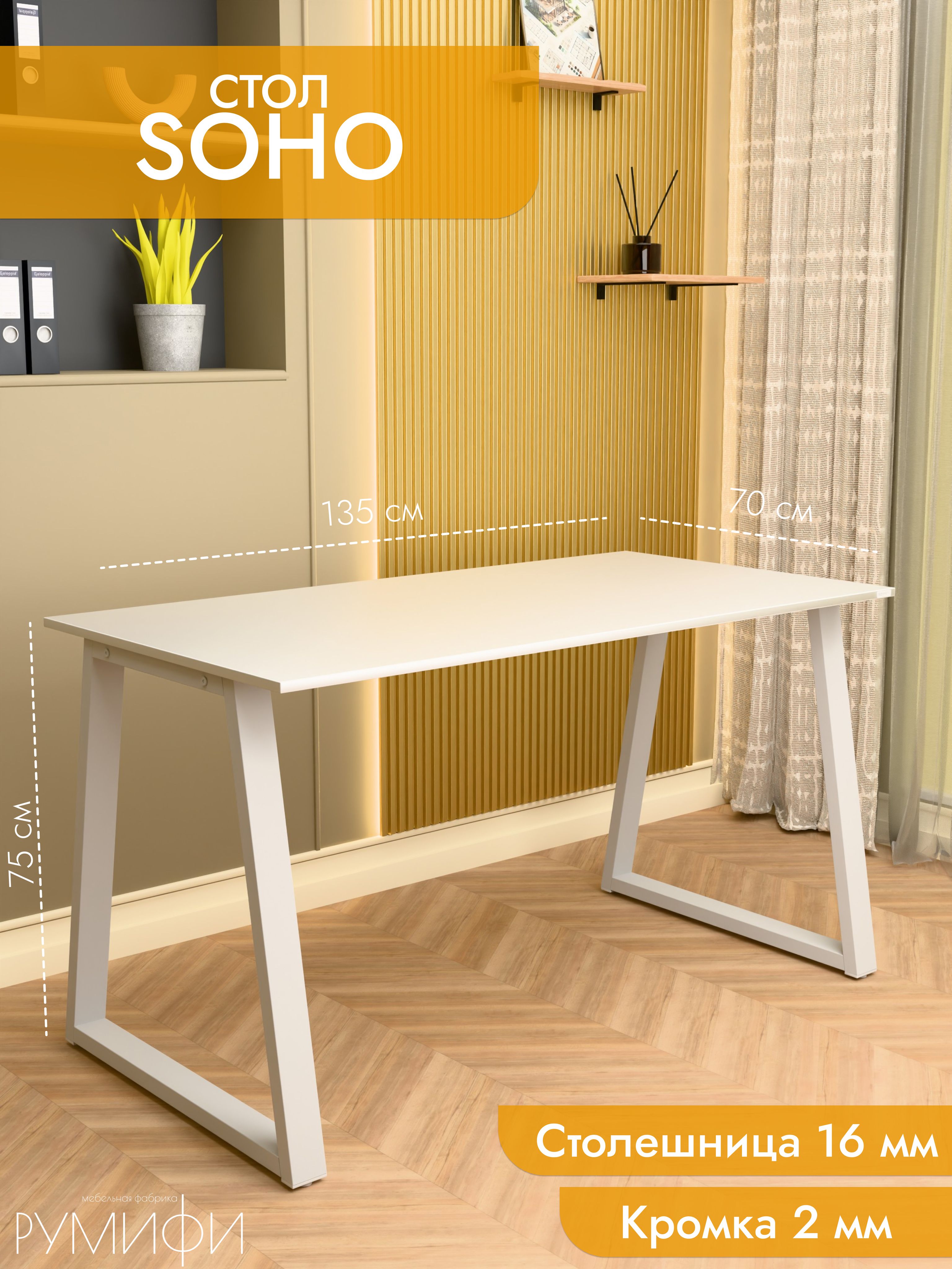 Стол Soho сочетает в себе легкость форм и современный минимализм. Скошенные опоры придают модели изящный вид, при этом не теряя в прочности. Металлическое основание устойчиво к нагрузкам и царапинам, а ЛДСП премиум с кромкой делает столешницу долговечной и удобной в уходе. Размеры: ширина 120/135/155 см, глубина 60/70 см. Цвета: белая, антрацит, ателье светлый, дуб Сонома, дуб Табак. Цвет подстолья: белый или черный. Soho — утонченное решение для стильного рабочего места.