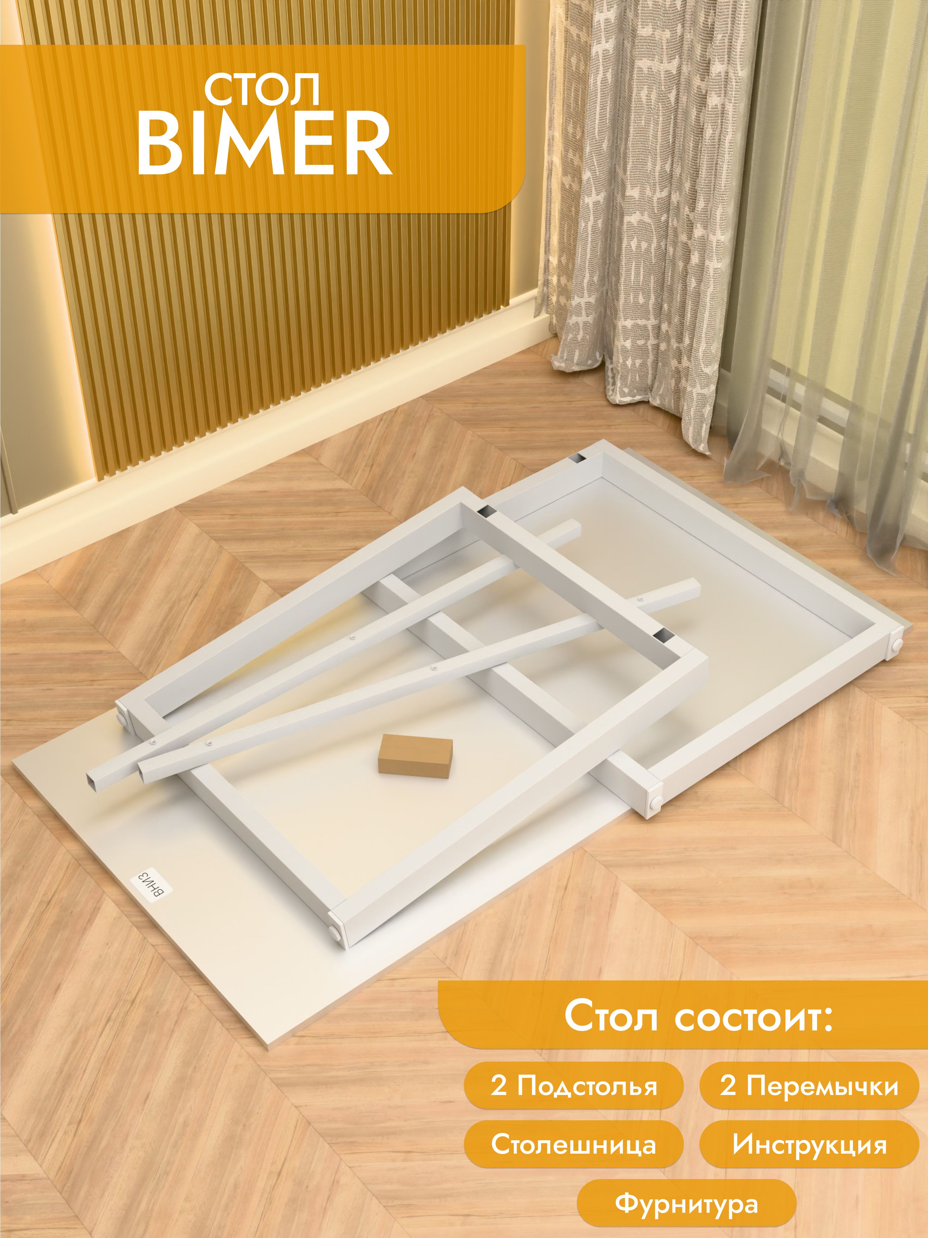 Модель Bimer выделяется подстольем в форме прямоугольной рамы, что делает ее особенно устойчивой и визуально легкой. Конструкция из стали с порошковым покрытием не боится времени и сохраняет аккуратный вид. Столешница выполнена из ЛДСП премиум, устойчива к царапинам и легко моется. Размеры: ширина 100/135/155 см, глубина 60/70 см. Цвета: белая, антрацит, ателье светлый, дуб Сонома, дуб Табак. Цвет подстолья: белый или черный. Bimer — надежный и стильный партнер для вашего рабочего пространства.
