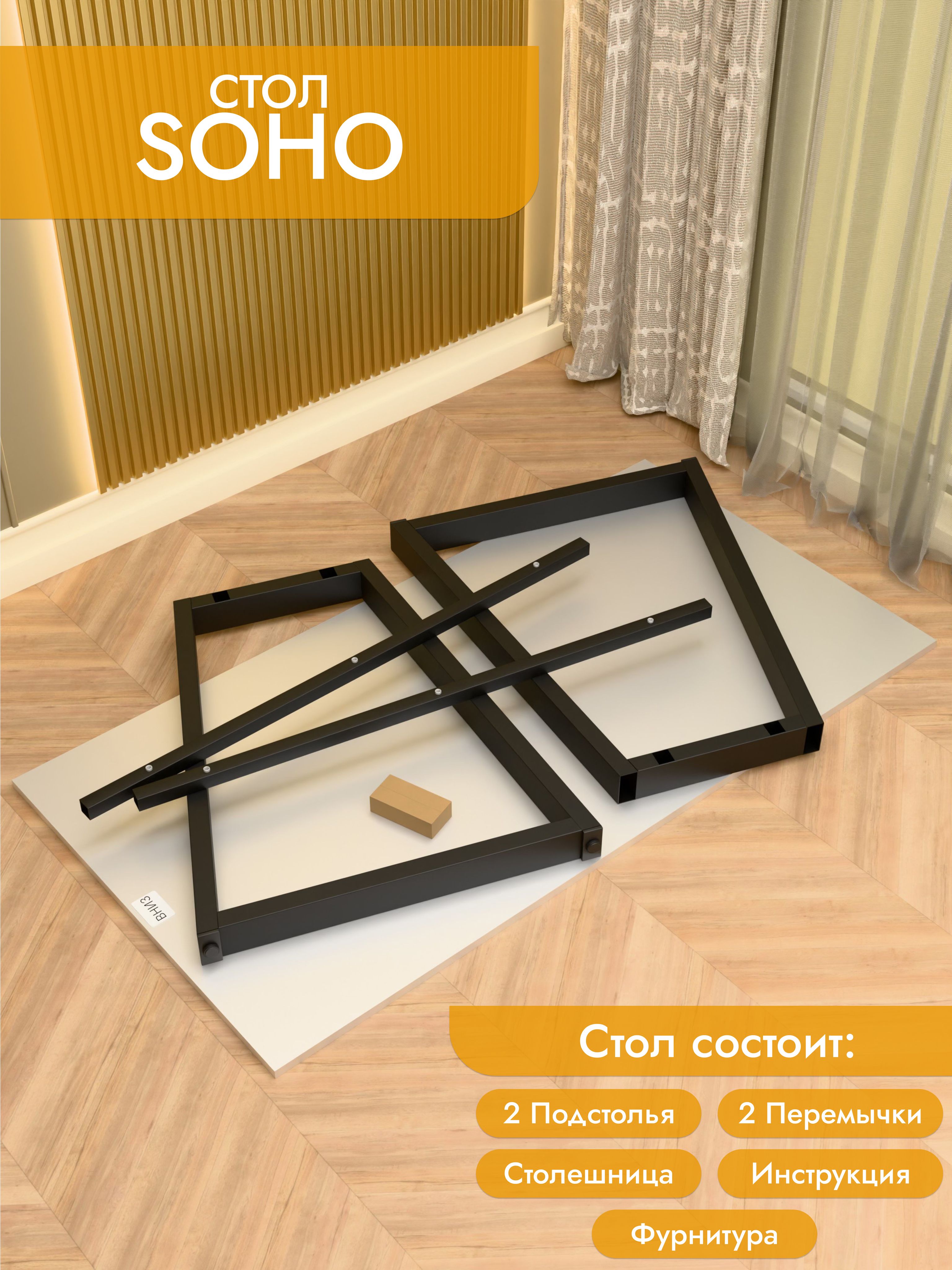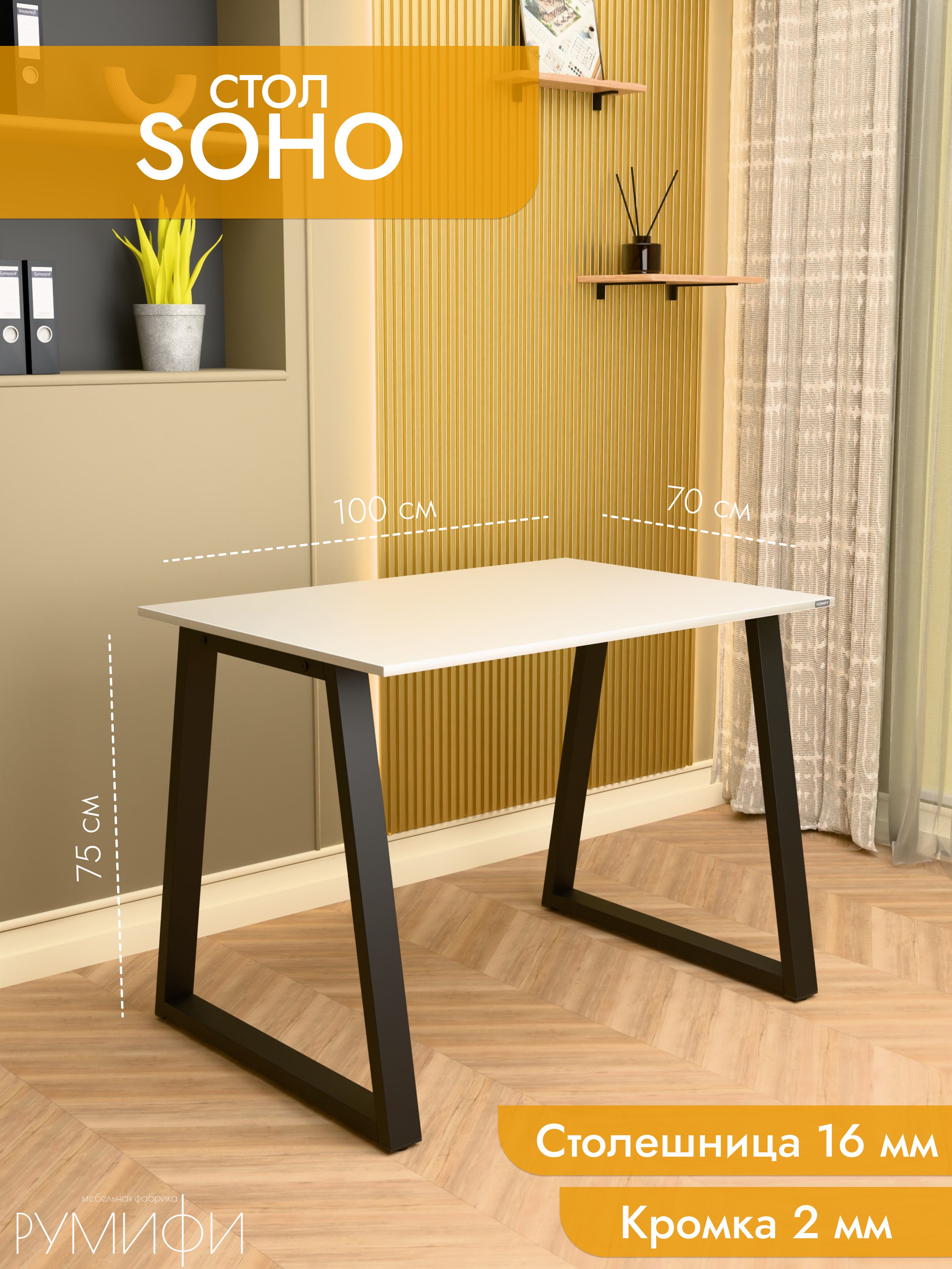 Стол Soho сочетает в себе легкость форм и современный минимализм. Скошенные опоры придают модели изящный вид, при этом не теряя в прочности. Металлическое основание устойчиво к нагрузкам и царапинам, а ЛДСП премиум с кромкой делает столешницу долговечной и удобной в уходе. Размеры: ширина 100/135/155 см, глубина 60/70 см. Цвета: белая, антрацит, ателье светлый, дуб Сонома, дуб Табак. Цвет подстолья: белый или черный. Soho — утонченное решение для стильного рабочего места.
