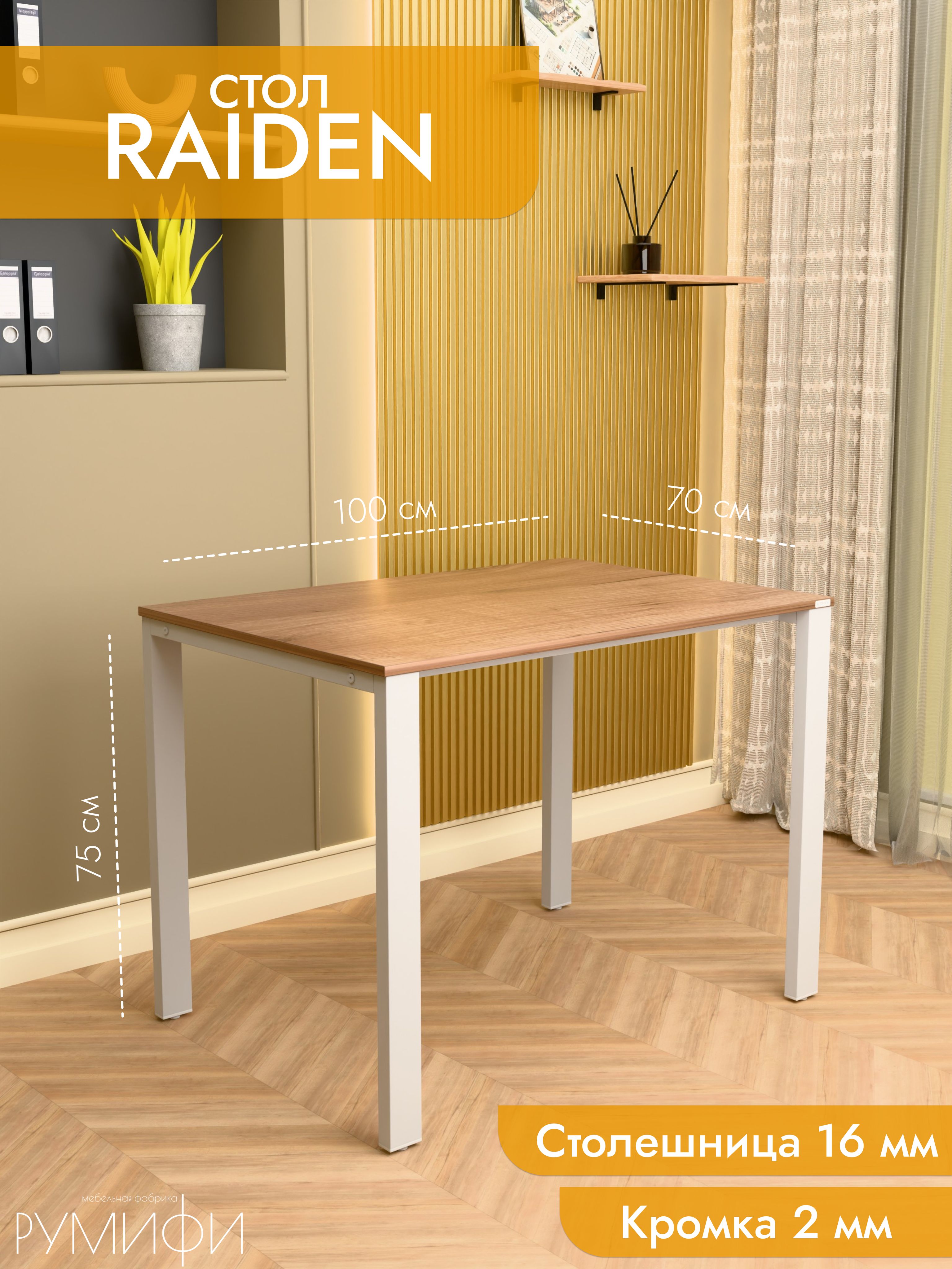 RAIDEN — это стол с мощным и выразительным характером. Подстолье выполнено в виде массивных рам с диагональными усилителями, что придаёт конструкции брутальность и подчёркивает индустриальный стиль. Столешница толщиной 16 мм доступна в популярных декорах: дуб сонома, дуб табак, антрацит, ателье светлый и белый. Металлическое основание предлагается в чёрном и белом муаре, сером матовом и хроме. Размеры от 100 до 200 см позволяют использовать RAIDEN как дома, так и в офисе. Его конструкция рассчитана на высокие нагрузки, а дизайн органично вписывается в интерьеры в стиле лофт или хай-тек. RAIDEN создаёт атмосферу силы и надёжности. Это модель для тех, кто ценит уверенность и долговечность мебели. Резюме: RAIDEN — это мощный и стильный стол. Он станет основой современного рабочего пространства с акцентом на надёжность.