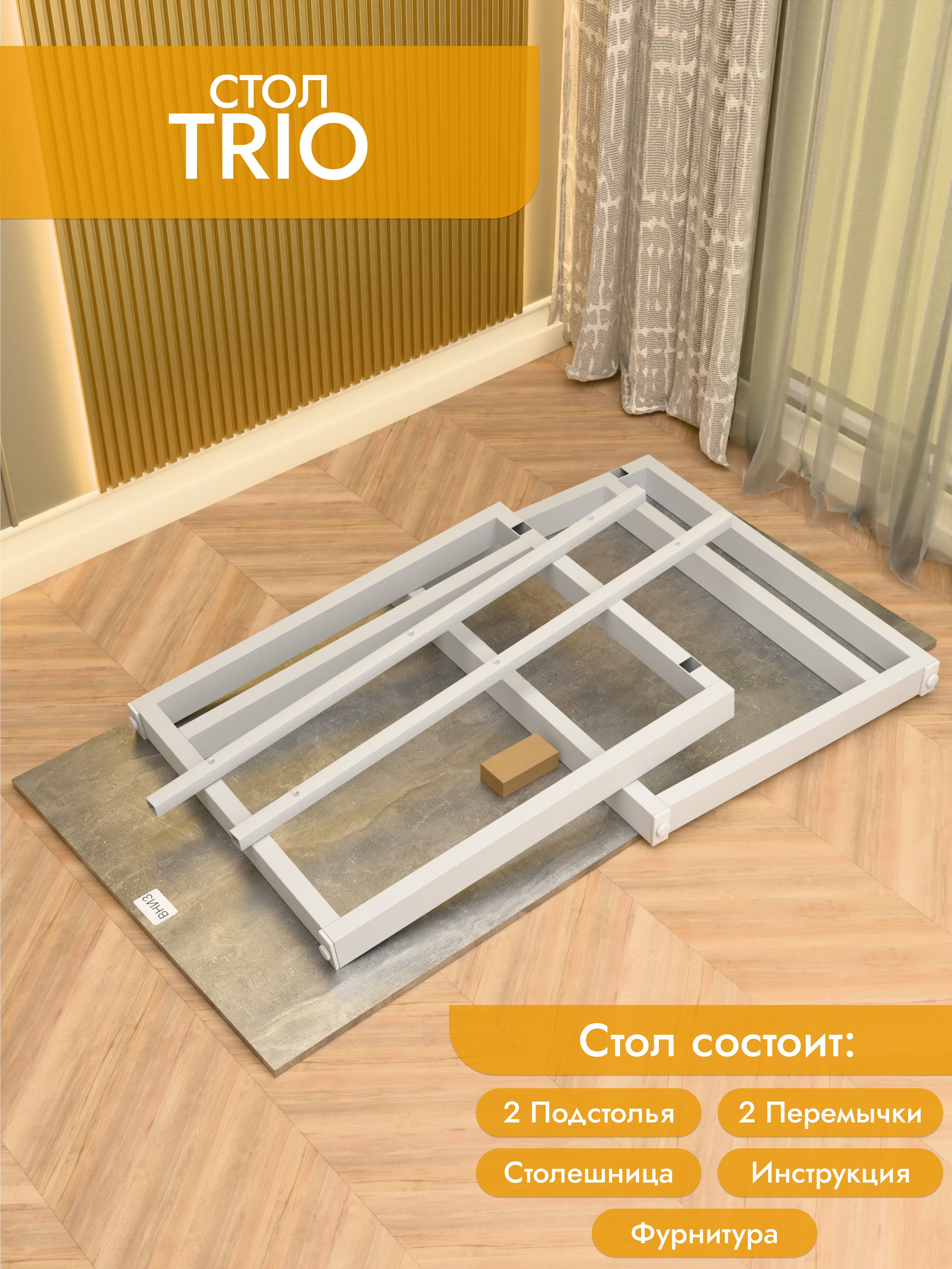 Практичный и современный стол Trio имеет прочное прямоугольное основание и дополнительную царгу для усиления конструкции. Это решение обеспечивает надежность даже при интенсивной эксплуатации. Столешница из ЛДСП премиум с кромкой устойчива к повседневным нагрузкам, а порошковое покрытие металла защищает от повреждений. Размеры: ширина 100/135/155 см, глубина 60/70 см. Цвета: белая, антрацит, ателье светлый, дуб Сонома, дуб Табак. Цвет подстолья: белый или черный. Trio — выбор для тех, кто ценит надежность и современный дизайн.