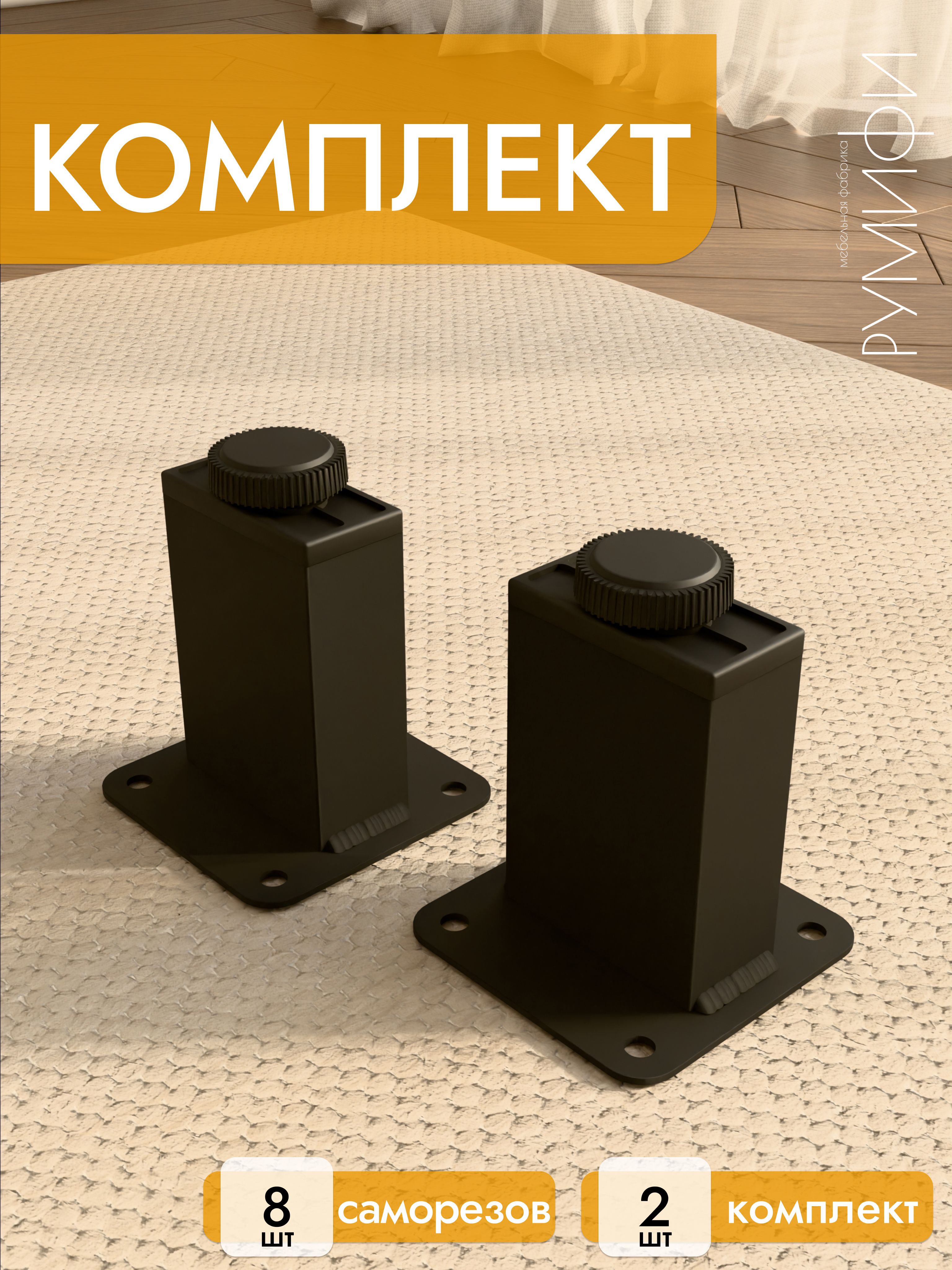 Опора для мебели 10 см, чёрная, 2 шт