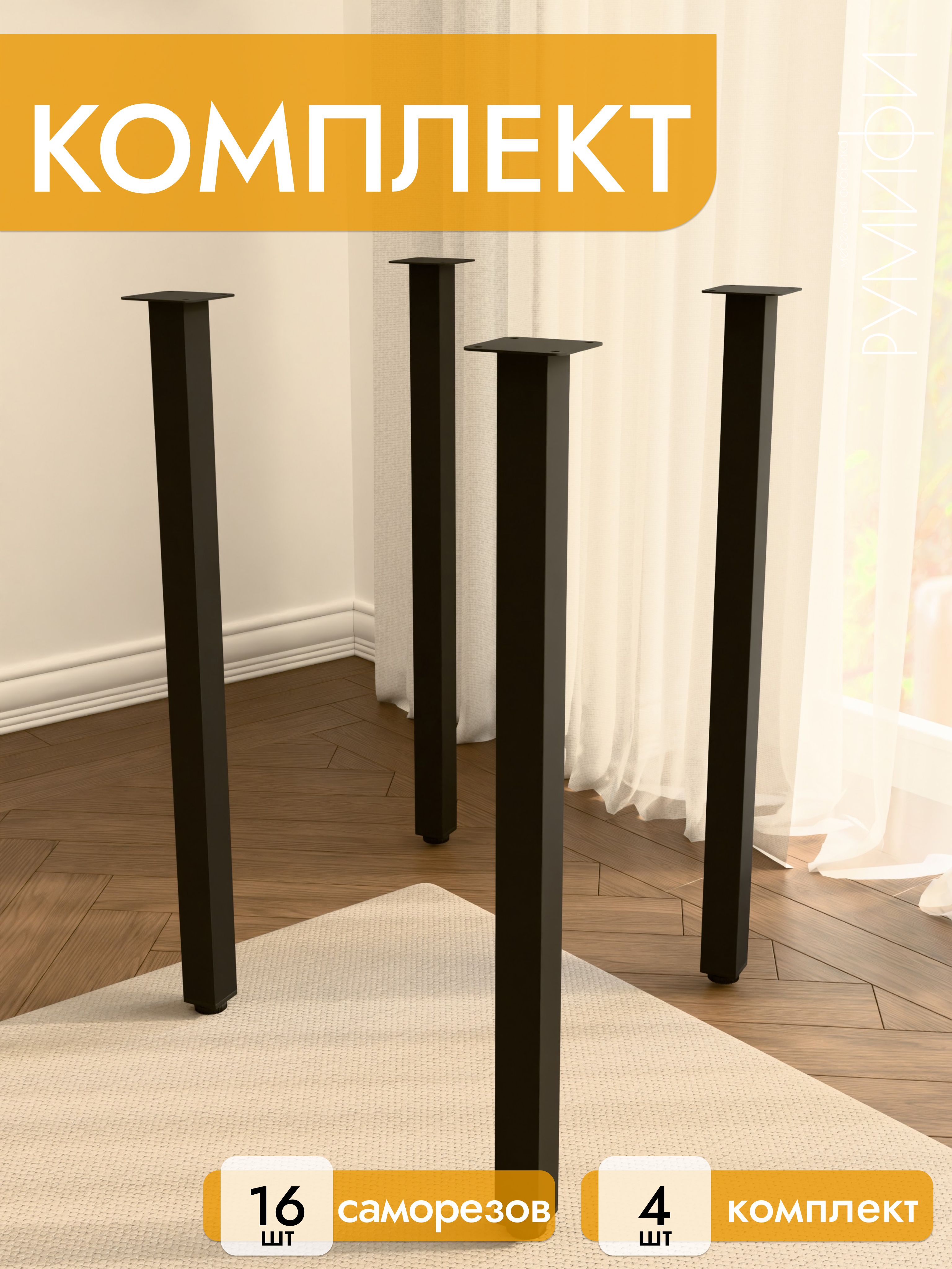 Опора для мебели 72 см, чёрная, 4 шт