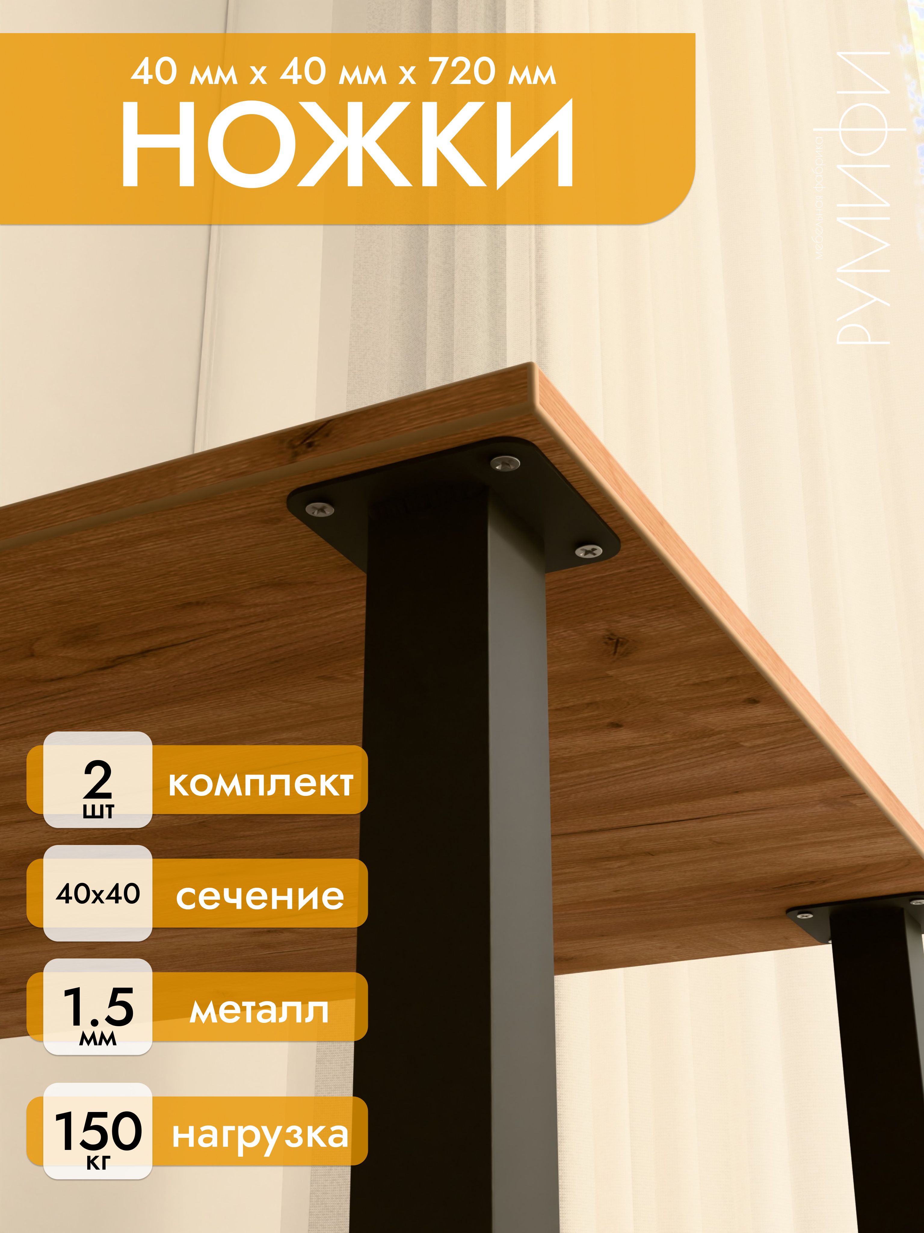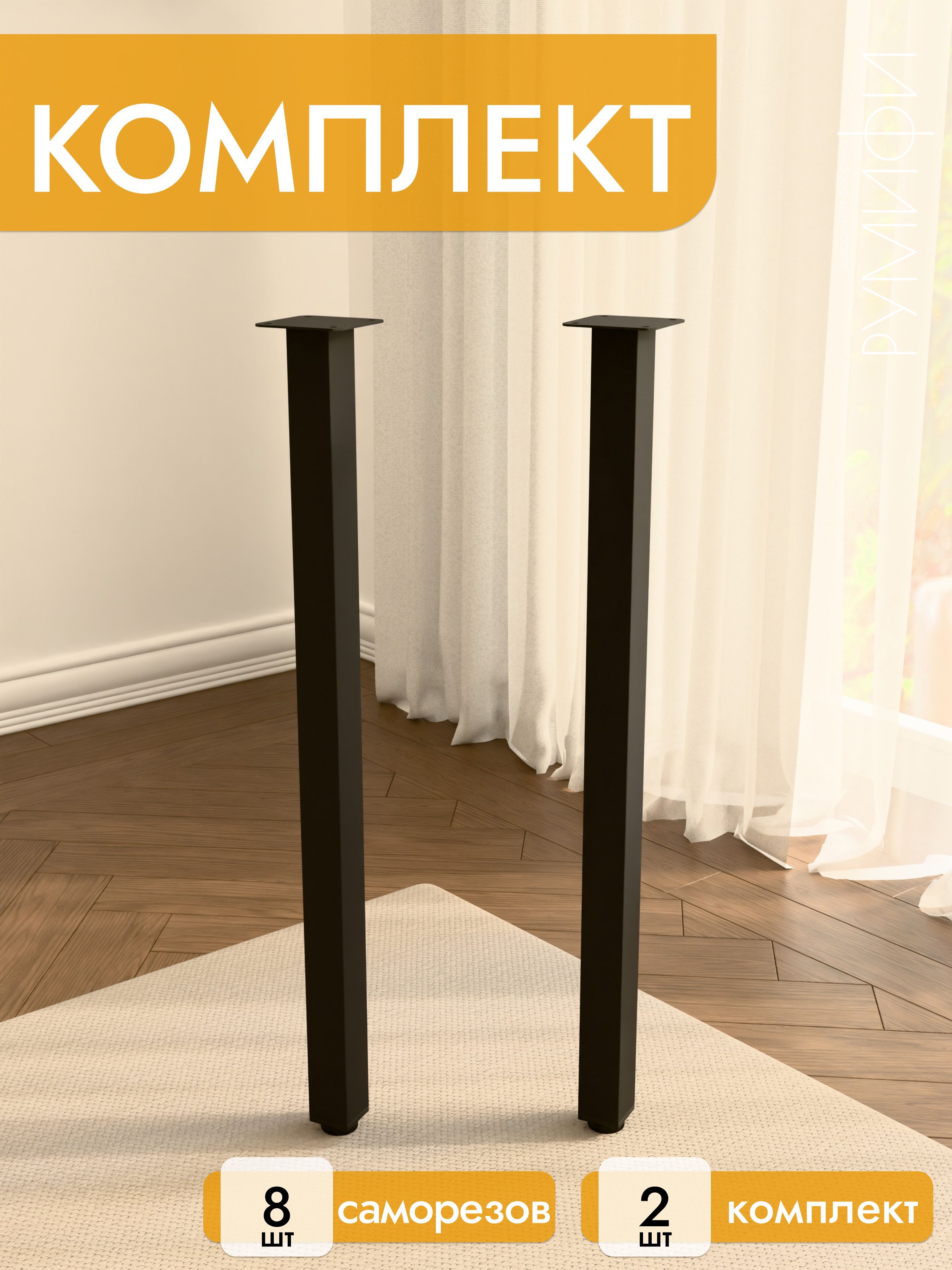 Опора для мебели 72 см, чёрная, 2 шт