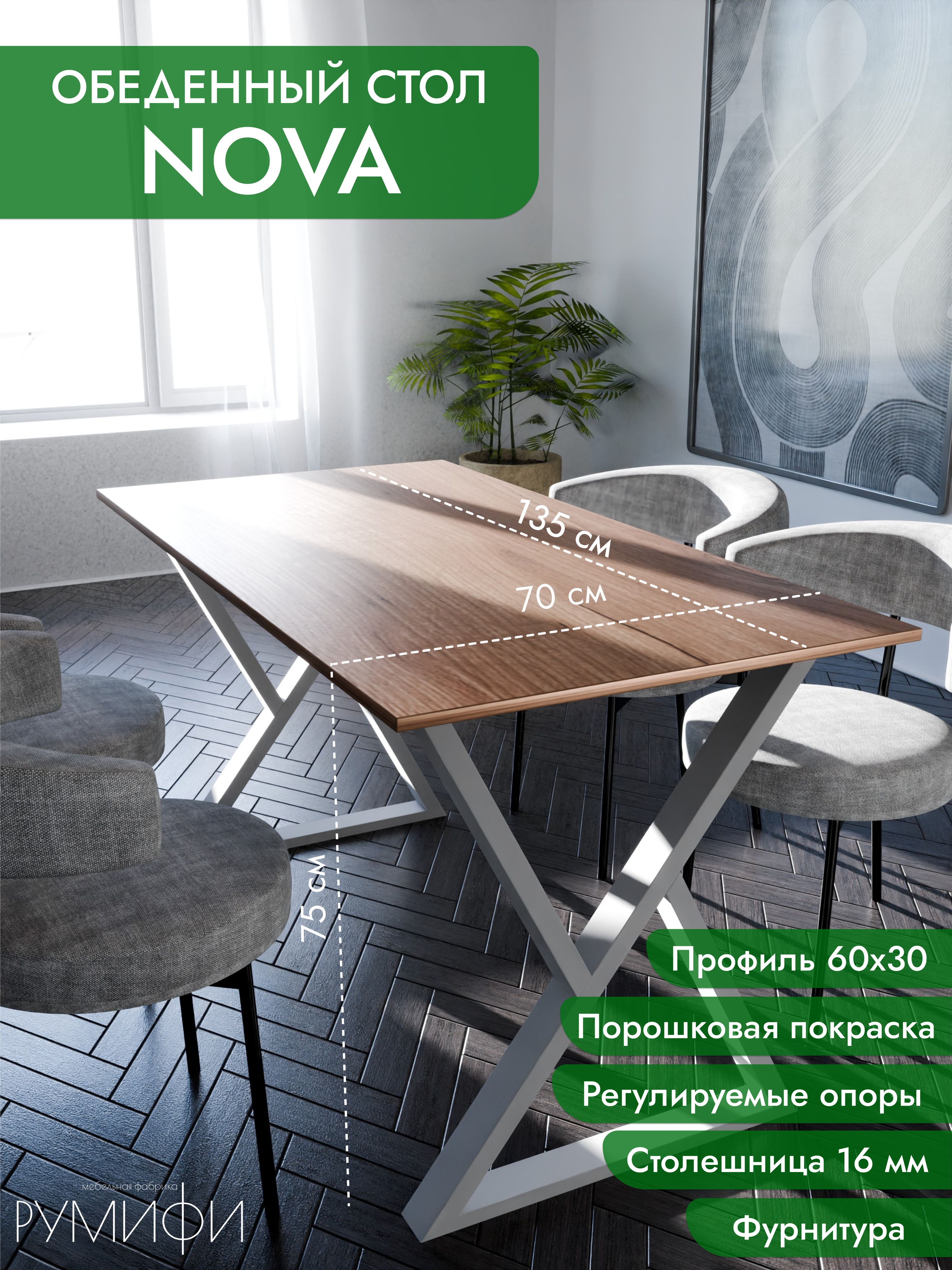 Модель Nova отличается эффектным дизайном с диагональными перекрестными элементами на опорах. Благодаря такой конструкции стол выглядит технологично и современно, гармонично вписываясь как в офисное пространство, так и в домашний интерьер. Металлическое подстолье покрыто прочной порошковой краской, устойчивой к сколам и коррозии. Столешница из ЛДСП премиум с защитной кромкой гарантирует долговечность и удобство в эксплуатации. Размеры: ширина 120/135/155 см, глубина 60/70 см. Цвета: белая, антрацит, ателье светлый, дуб Сонома, дуб Табак. Цвет подстолья: белый или черный. Nova — стильный акцент в интерьере с продуманной эргономикой.