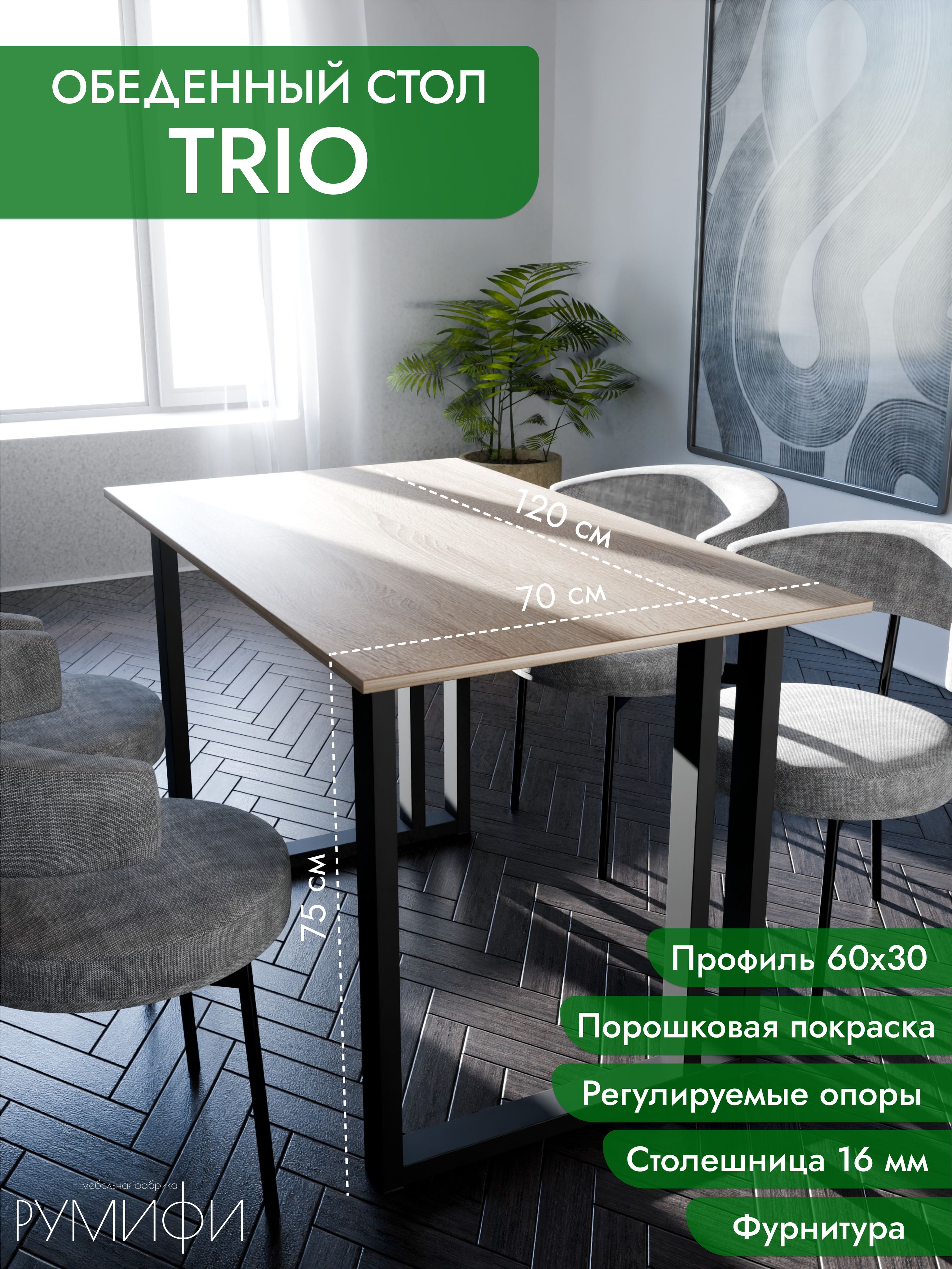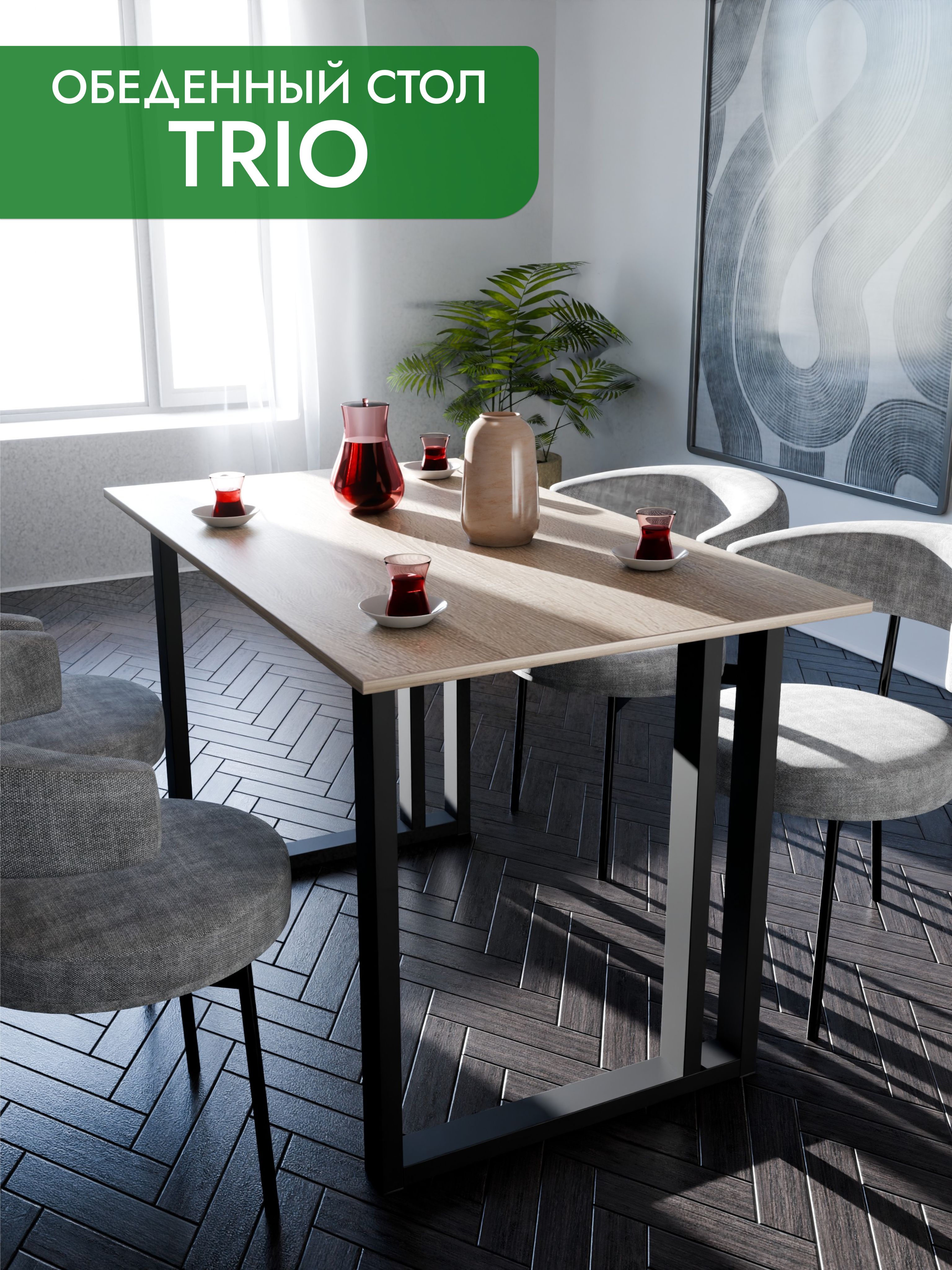Практичный и современный стол Trio имеет прочное прямоугольное основание и дополнительную царгу для усиления конструкции. Это решение обеспечивает надежность даже при интенсивной эксплуатации. Столешница из ЛДСП премиум с кромкой устойчива к повседневным нагрузкам, а порошковое покрытие металла защищает от повреждений. Размеры: ширина 120/135/155 см, глубина 60/70 см. Цвета: белая, антрацит, ателье светлый, дуб Сонома, дуб Табак. Цвет подстолья: белый или черный. Trio — выбор для тех, кто ценит надежность и современный дизайн.