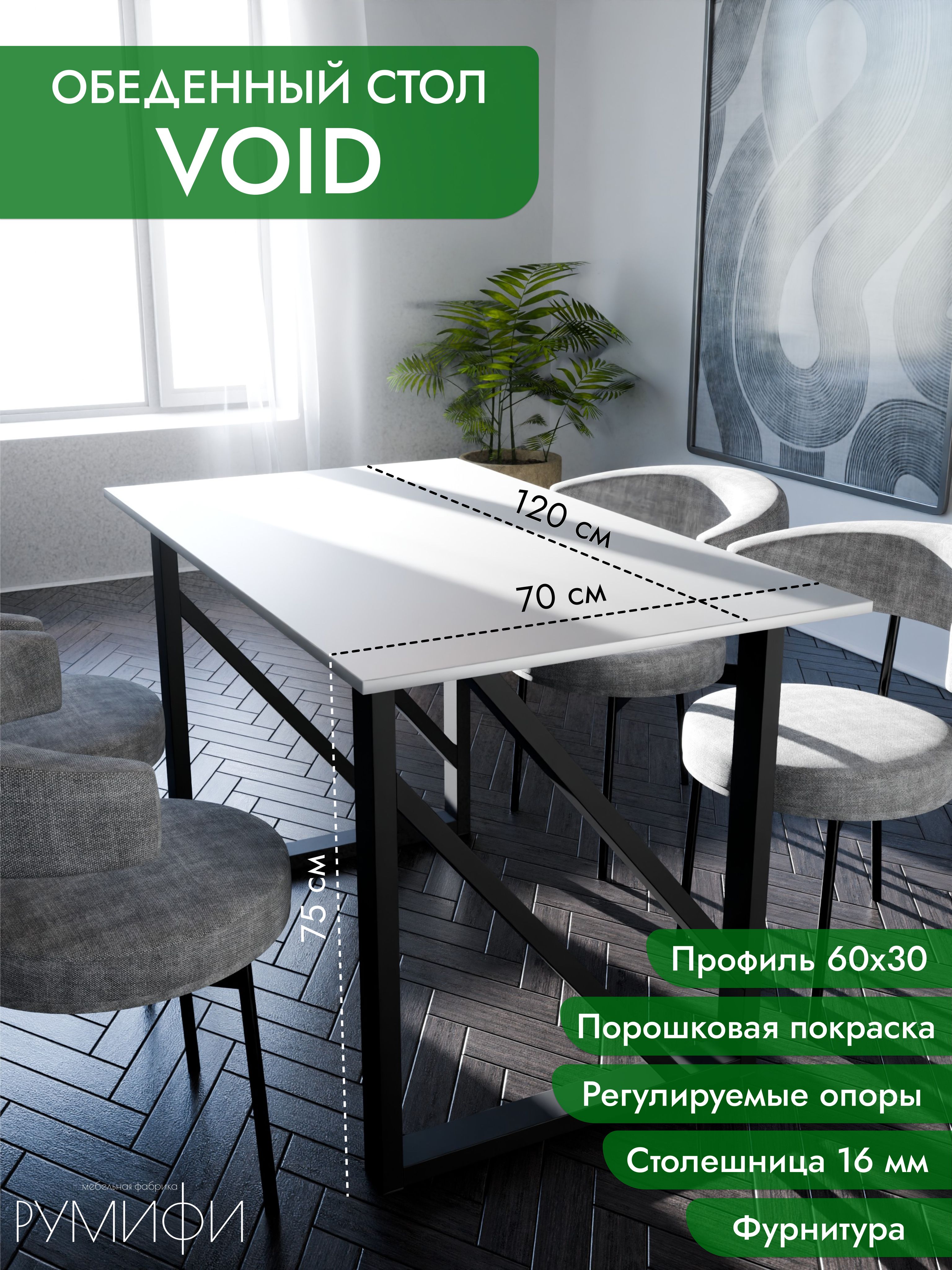 Модель Void отличается эффектным дизайном с диагональными перекрестными элементами на опорах. Благодаря такой конструкции стол выглядит технологично и современно, гармонично вписываясь как в офисное пространство, так и в домашний интерьер. Металлическое подстолье покрыто прочной порошковой краской, устойчивой к сколам и коррозии. Столешница из ЛДСП премиум с защитной кромкой гарантирует долговечность и удобство в эксплуатации. Размеры: ширина 120/135/155 см, глубина 60/70 см. Цвета: белая, антрацит, ателье светлый, дуб Сонома, дуб Табак. Цвет подстолья: белый или черный. Void — стильный акцент в интерьере с продуманной эргономикой.
