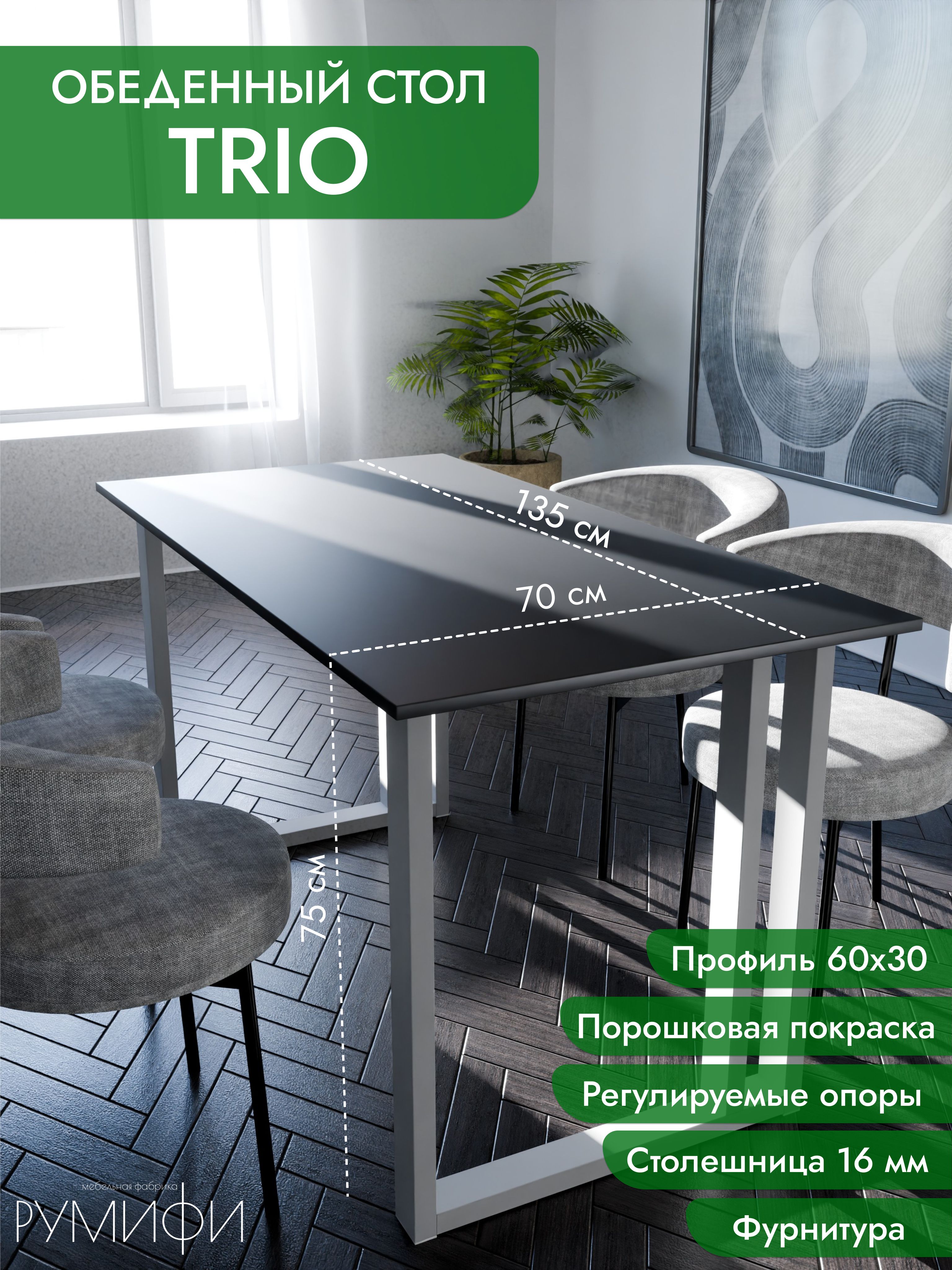 Практичный и современный стол Trio имеет прочное прямоугольное основание и дополнительную царгу для усиления конструкции. Это решение обеспечивает надежность даже при интенсивной эксплуатации. Столешница из ЛДСП премиум с кромкой устойчива к повседневным нагрузкам, а порошковое покрытие металла защищает от повреждений. Размеры: ширина 120/135/155 см, глубина 60/70 см. Цвета: белая, антрацит, ателье светлый, дуб Сонома, дуб Табак. Цвет подстолья: белый или черный. Trio — выбор для тех, кто ценит надежность и современный дизайн.