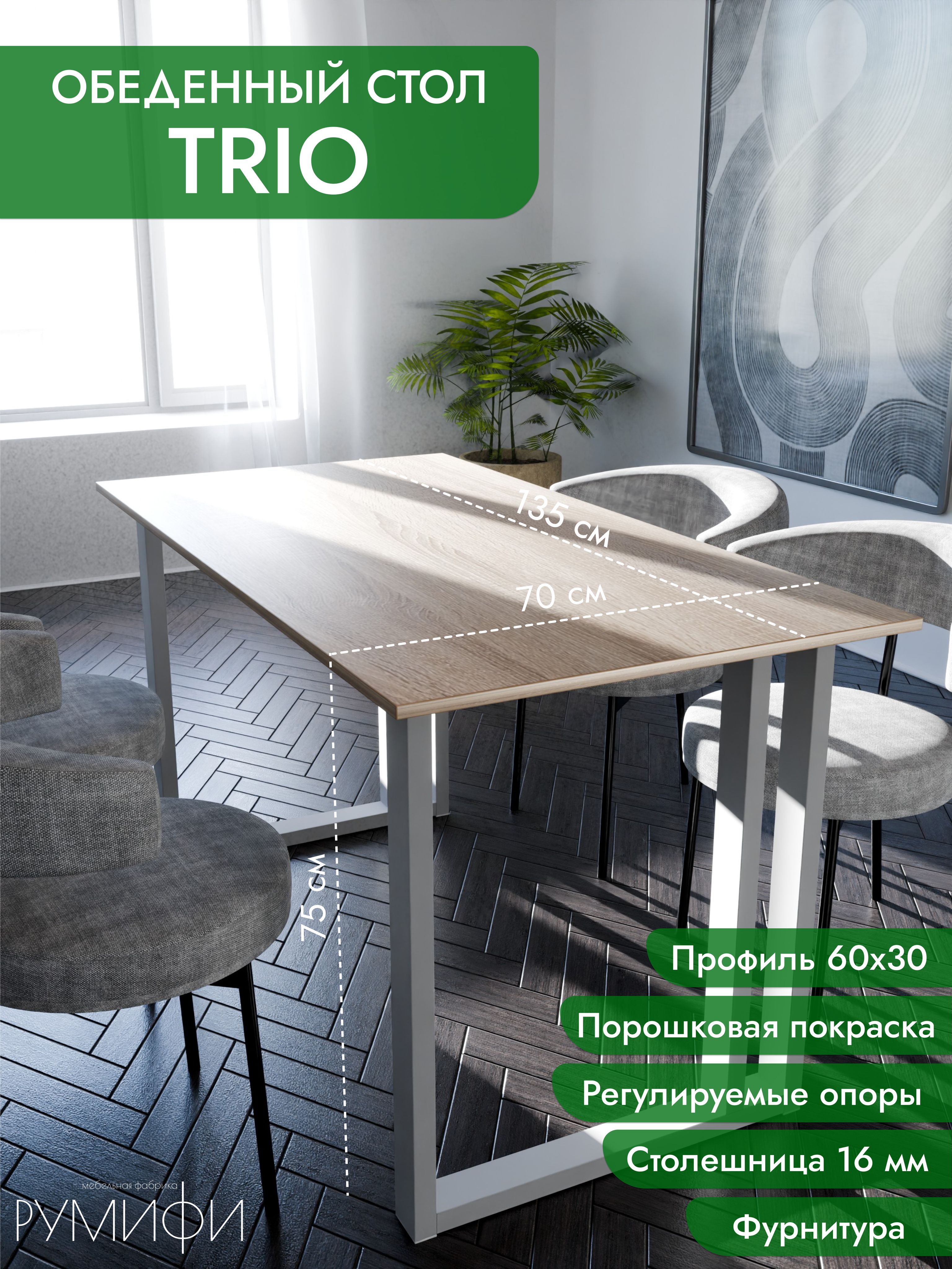 Практичный и современный стол Trio имеет прочное прямоугольное основание и дополнительную царгу для усиления конструкции. Это решение обеспечивает надежность даже при интенсивной эксплуатации. Столешница из ЛДСП премиум с кромкой устойчива к повседневным нагрузкам, а порошковое покрытие металла защищает от повреждений. Размеры: ширина 120/135/155 см, глубина 60/70 см. Цвета: белая, антрацит, ателье светлый, дуб Сонома, дуб Табак. Цвет подстолья: белый или черный. Trio — выбор для тех, кто ценит надежность и современный дизайн.