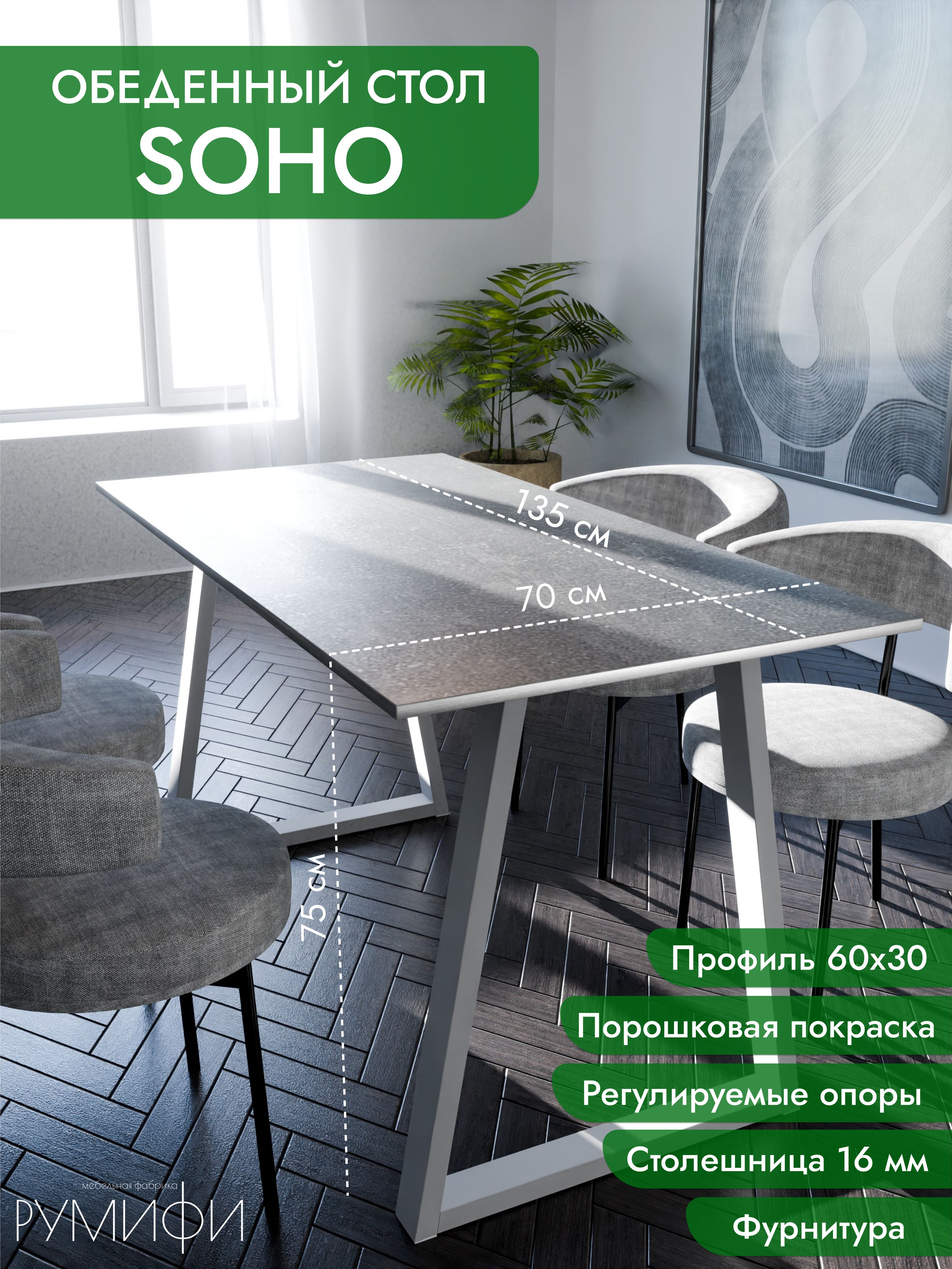 Стол Soho сочетает в себе легкость форм и современный минимализм. Скошенные опоры придают модели изящный вид, при этом не теряя в прочности. Металлическое основание устойчиво к нагрузкам и царапинам, а ЛДСП премиум с кромкой делает столешницу долговечной и удобной в уходе. Размеры: ширина 120/135/155 см, глубина 60/70 см. Цвета: белая, антрацит, ателье светлый, дуб Сонома, дуб Табак. Цвет подстолья: белый или черный. Soho — утонченное решение для стильного рабочего места.