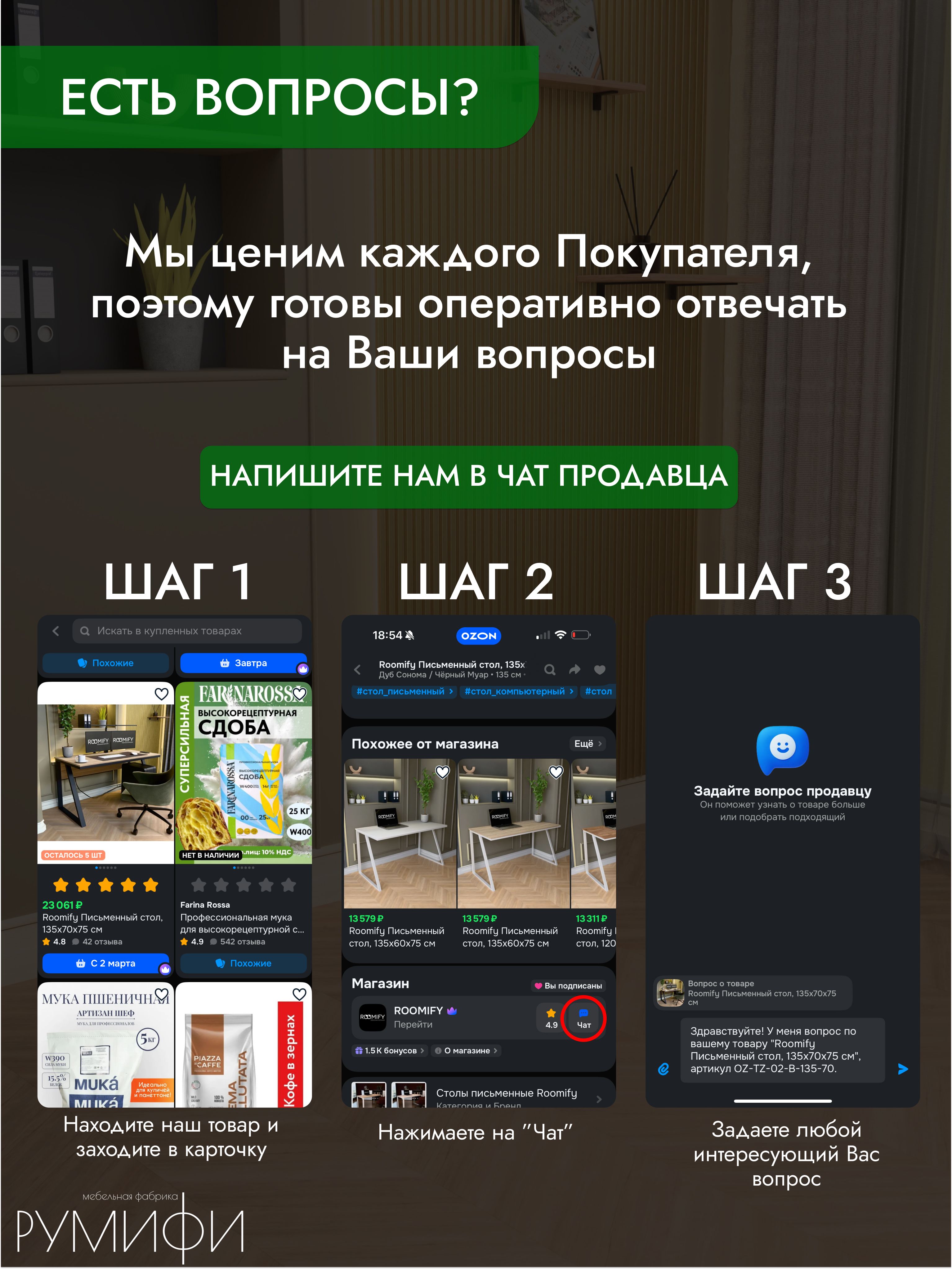 - Глубина стола