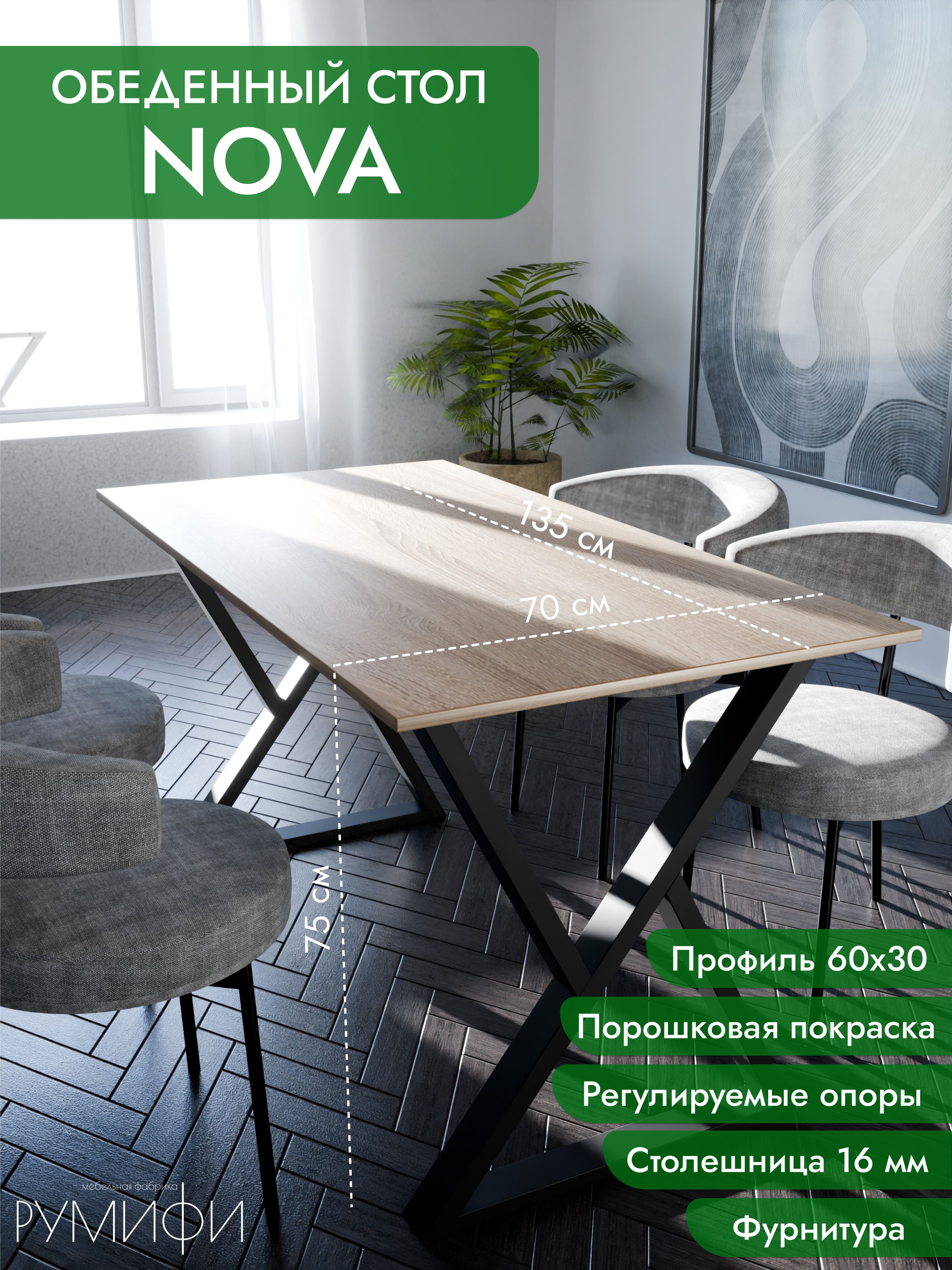Модель Nova отличается эффектным дизайном с диагональными перекрестными элементами на опорах. Благодаря такой конструкции стол выглядит технологично и современно, гармонично вписываясь как в офисное пространство, так и в домашний интерьер. Металлическое подстолье покрыто прочной порошковой краской, устойчивой к сколам и коррозии. Столешница из ЛДСП премиум с защитной кромкой гарантирует долговечность и удобство в эксплуатации. Размеры: ширина 120/135/155 см, глубина 60/70 см. Цвета: белая, антрацит, ателье светлый, дуб Сонома, дуб Табак. Цвет подстолья: белый или черный. Nova — стильный акцент в интерьере с продуманной эргономикой.