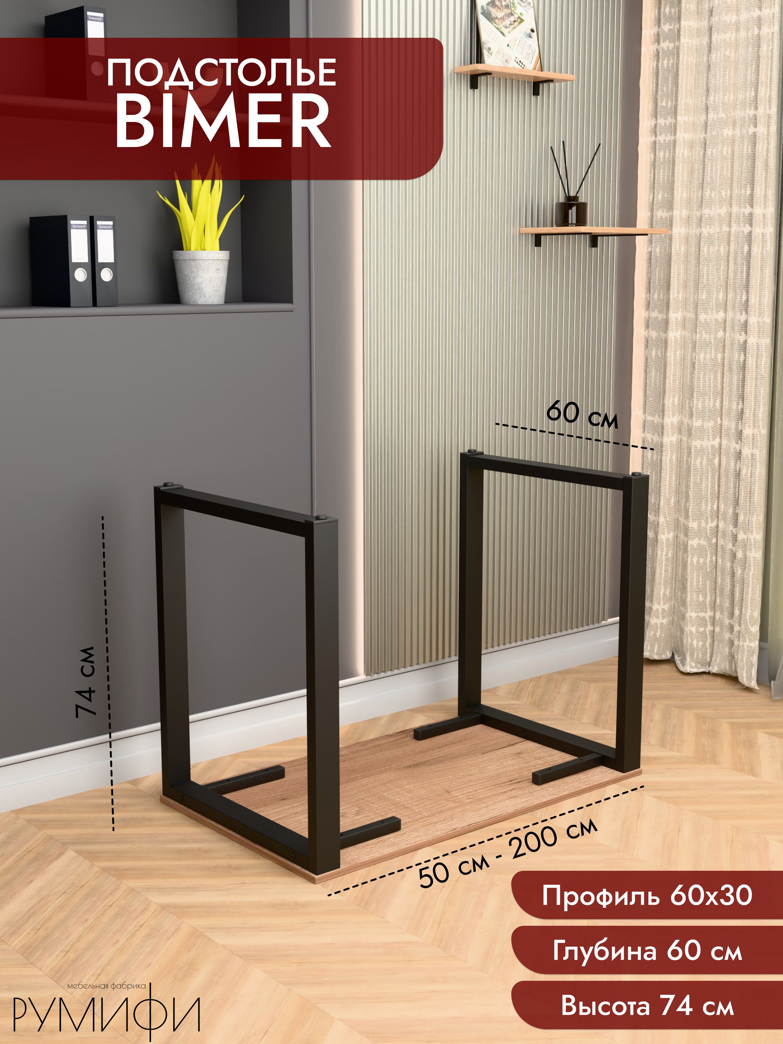 Подстолье BIMER — надёжная опора для письменного, обеденного или рабочего стола. Профиль 60×30 мм, финиш — порошковое напыление (белый / чёрный муар). Высота 74 см, глубина 60 или 70 см. Регулируемые опоры, ход 1,5 см. Конструкция разборная, поставка напрямую от производителя.