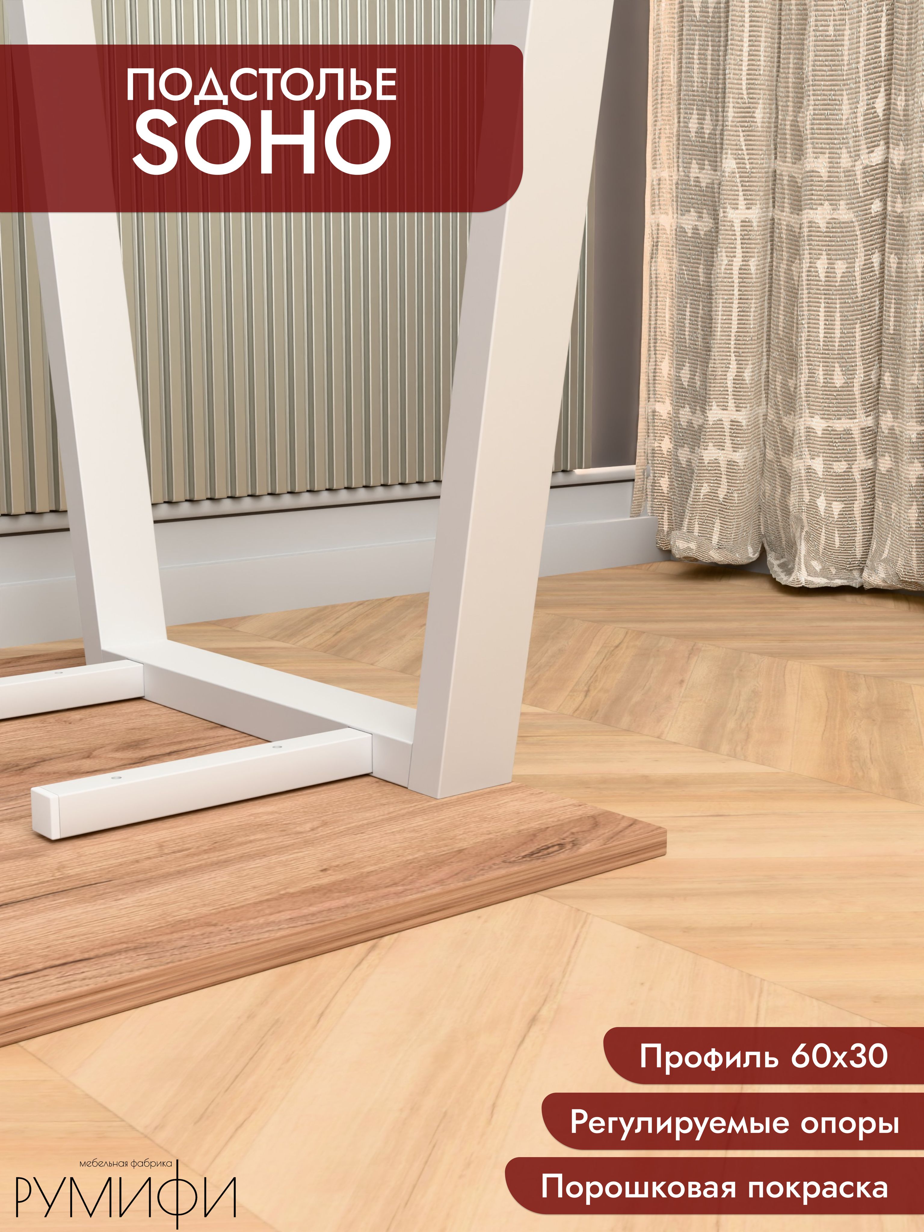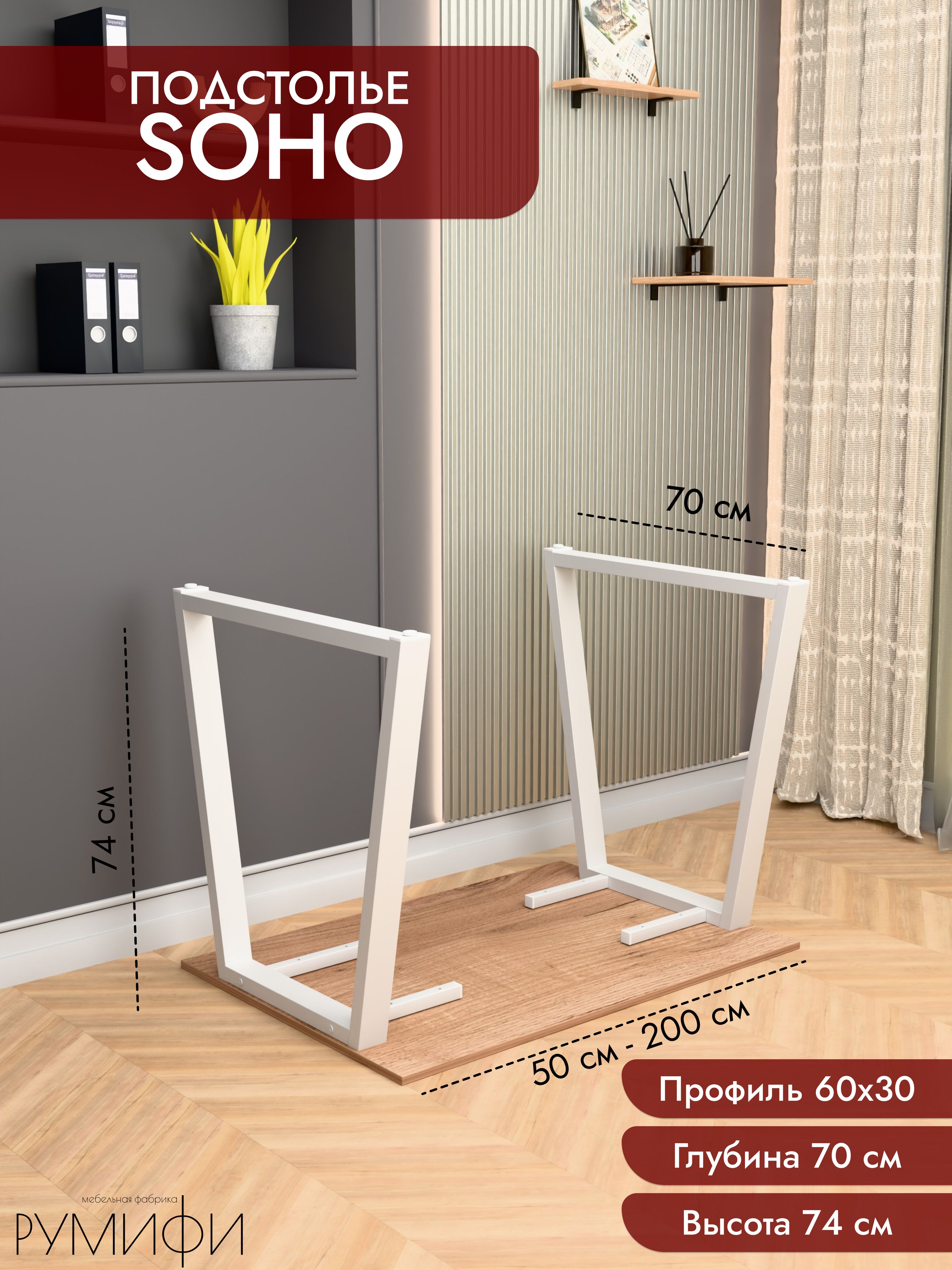 Подстолье SOHO для кухни, гостиной или домашнего офиса в духе лофта и современного интерьера. Каркас 60×30 мм, порошковая покраска — белый или чёрный муар. Высота 74 см, на выбор глубина 60 или 70 см. Регулируемые опоры с ходом 1,5 см, удобная разборная установка. Производитель — прямой.