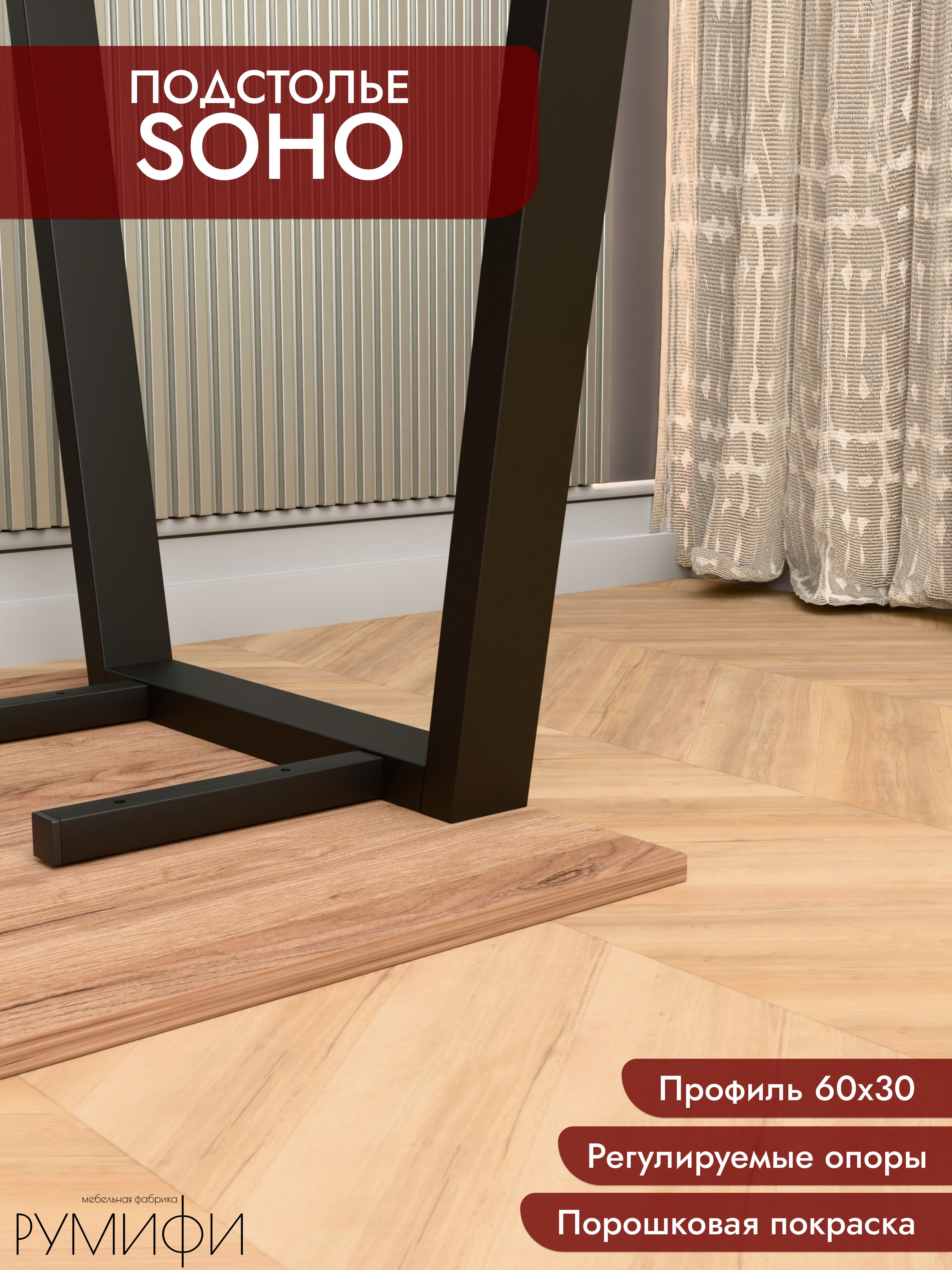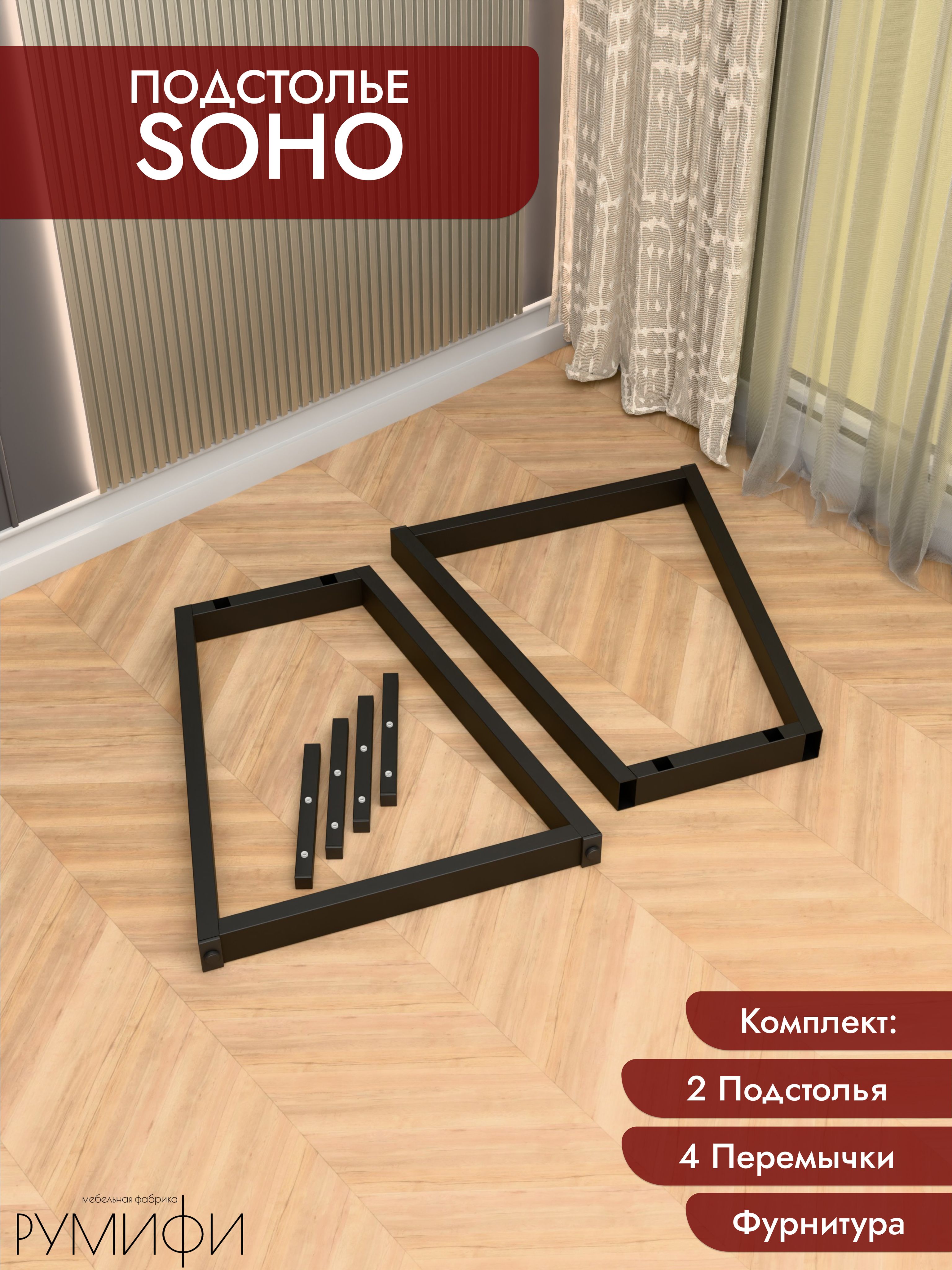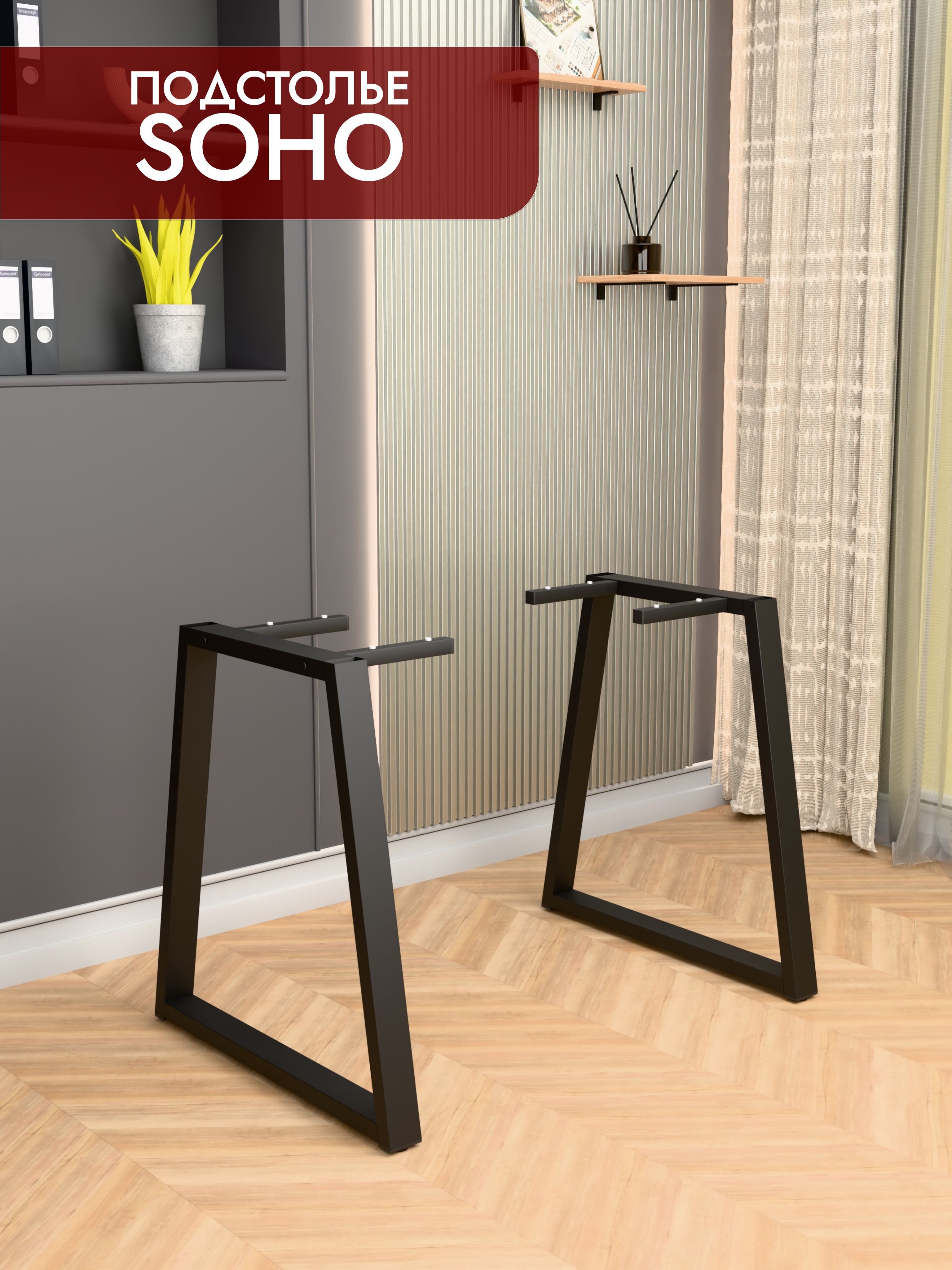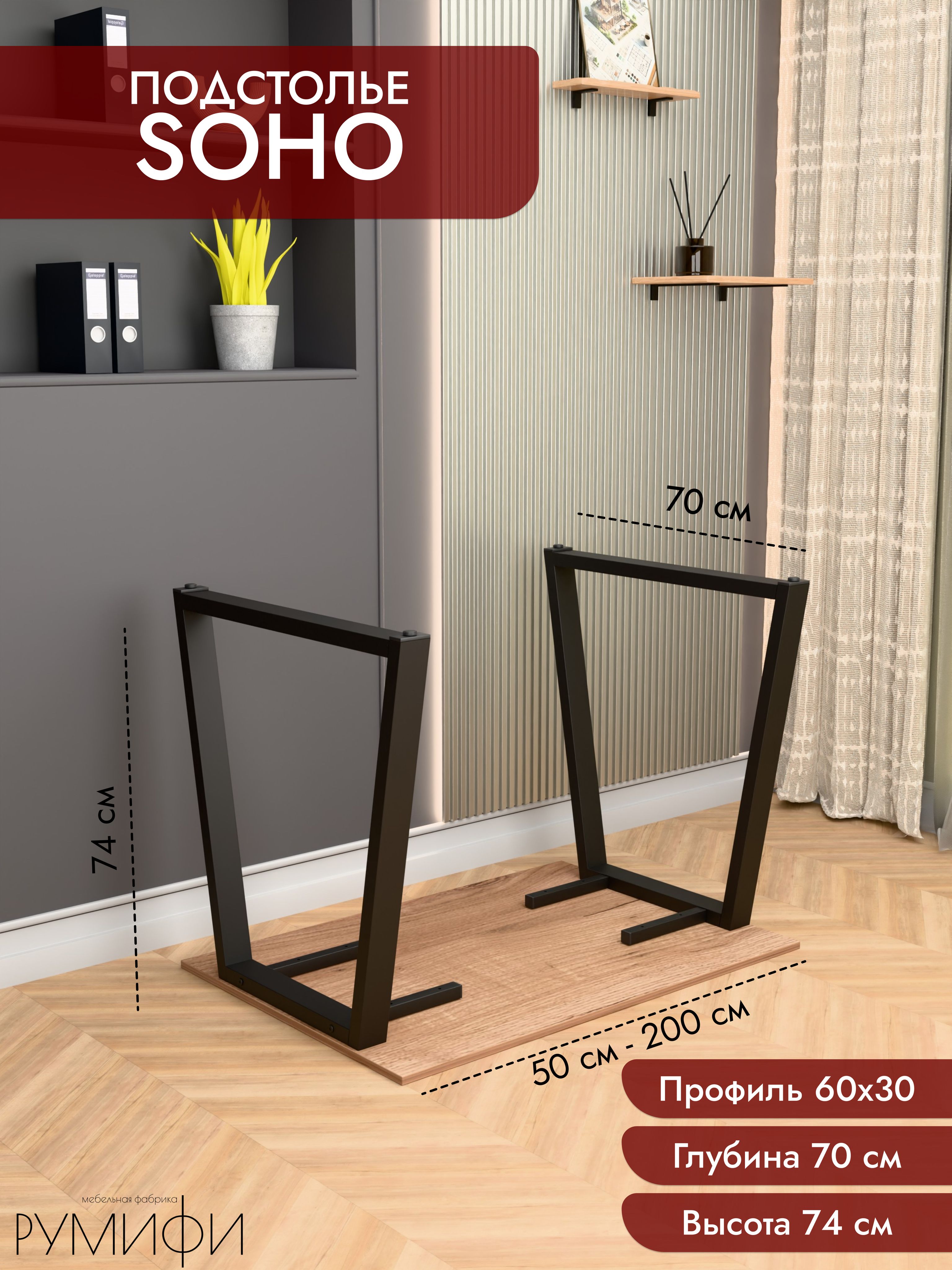 Подстолье SOHO для кухни, гостиной или домашнего офиса в духе лофта и современного интерьера. Каркас 60×30 мм, порошковая покраска — белый или чёрный муар. Высота 74 см, на выбор глубина 60 или 70 см. Регулируемые опоры с ходом 1,5 см, удобная разборная установка. Производитель — прямой.