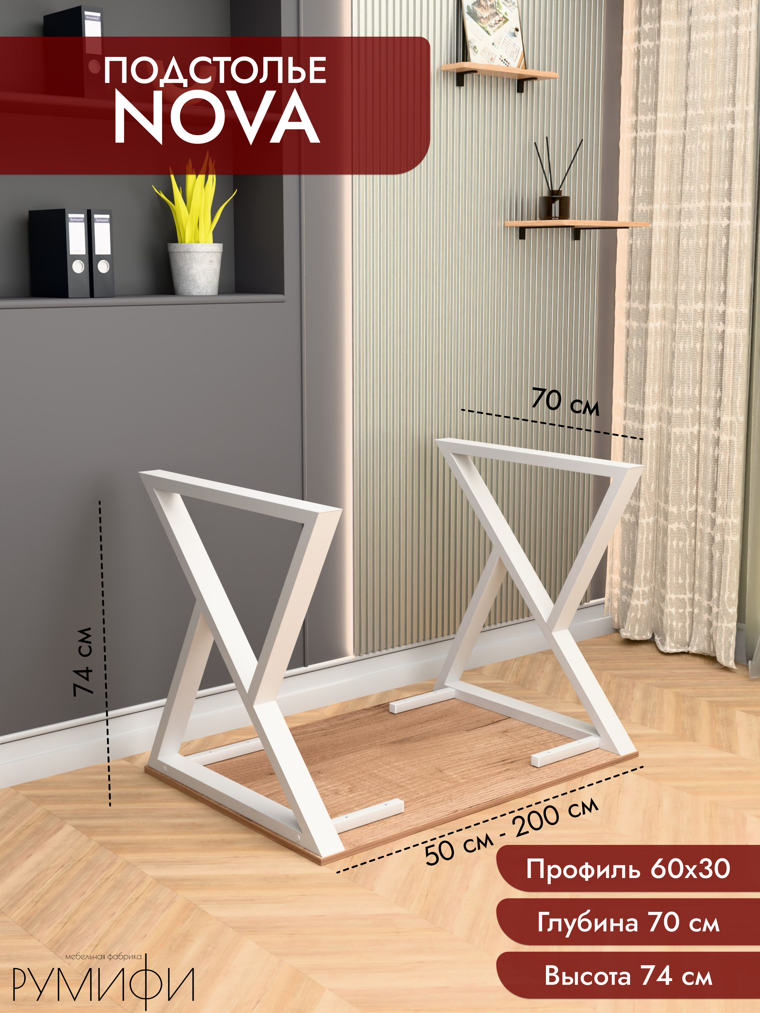 Металлическое подстолье NOVA для столешницы в современном лаконичном стиле. Каркас из профильной трубы 60×30 мм, стойкая порошковая покраска в цвете белый или чёрный муар. Рабочая высота 74 см, глубина на выбор 60 или 70 см. Сборно-разборная конструкция удобна для доставки и монтажа. Производство — от производителя.
