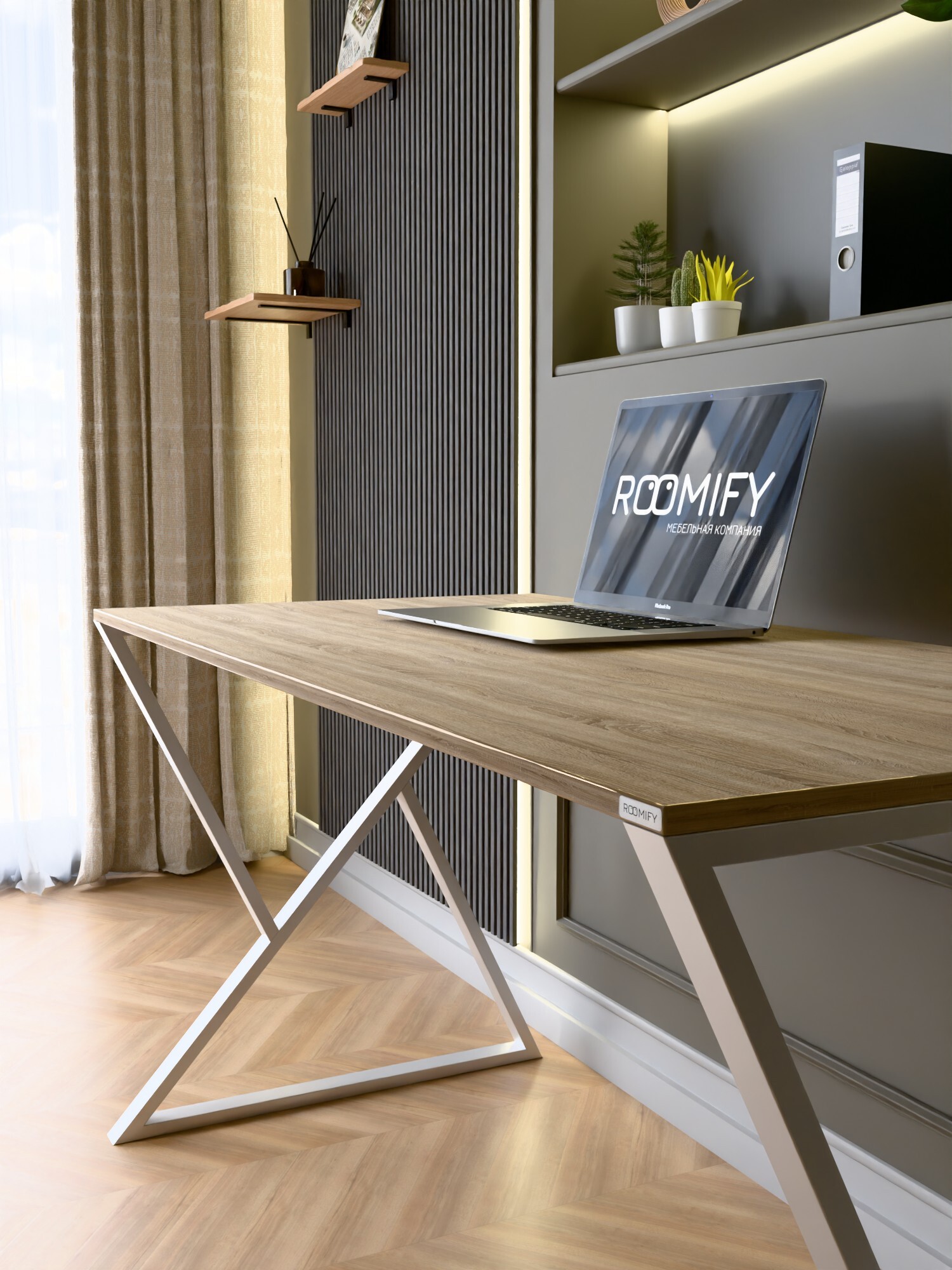 Стол NOVA — эффектный минимализм и надёжность каждый день NOVA — письменный/компьютерный стол с выразительными X-образными опорами. Диагонали визуально облегчают конструкцию и одновременно усиливают жёсткость, поэтому стол уверенно стоит и не «гуляет». Столешница из ЛДСП 16 мм с аккуратной кромкой ПВХ 2 мм выдерживает повседневные нагрузки и легко очищается. Основание выполнено из стали толщиной 1,5 мм: профиль опор 40×20 мм, перемычки 20×20 мм — продуманная геометрия для стабильности без лишнего веса. Производство в России, компания ROOMIFY. Преимущества: Современный дизайн с X-опорами — акцент в интерьере квартиры, офиса или коворкинга. Открытое пространство для ног и проводов, удобно убирать под столом. Прочные материалы и аккуратные стыки. Варианты исполнения: ЛДСП: Дуб Табачный, Белый, Дуб Сонома, Ателье Светлый. Подстолья: Белый или Чёрный муар. Размеры: ширина 100/120/135 см, глубина 60/70 см — легко подобрать под ваши задачи и площадь. Выберите цвет и размер — NOVA станет стильной и долговечной основой рабочего места.