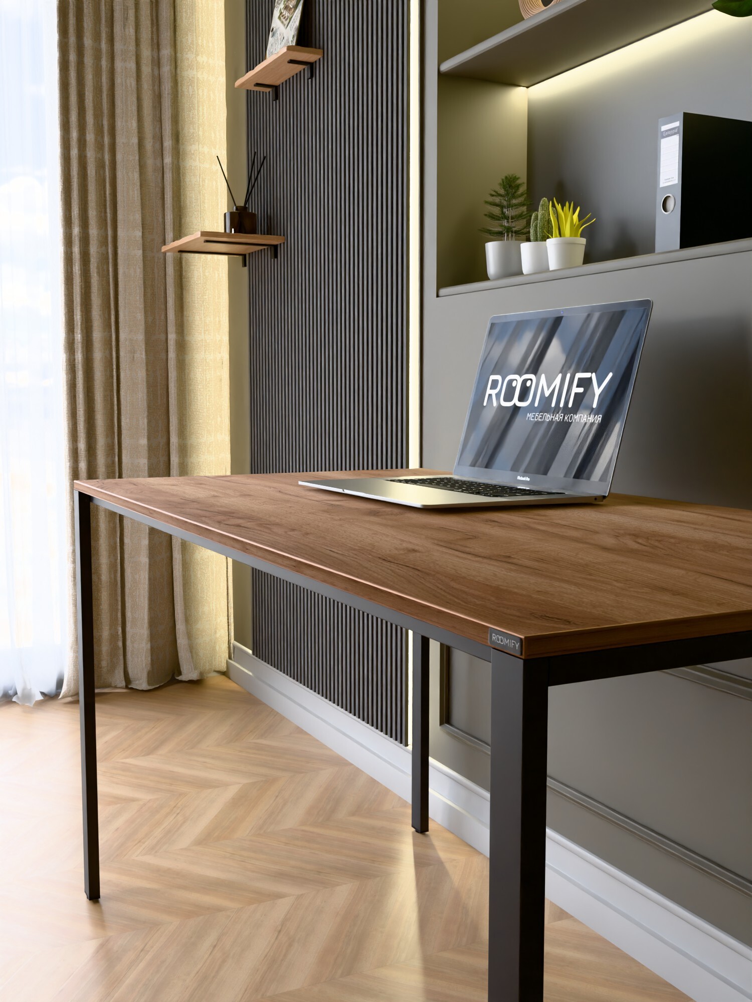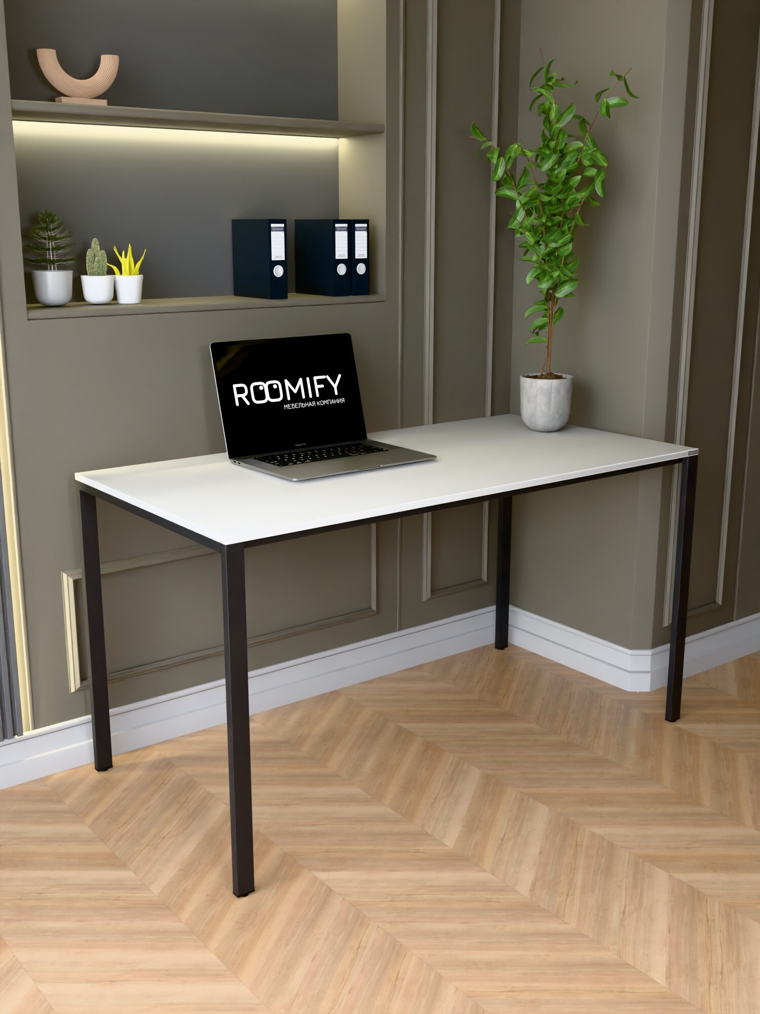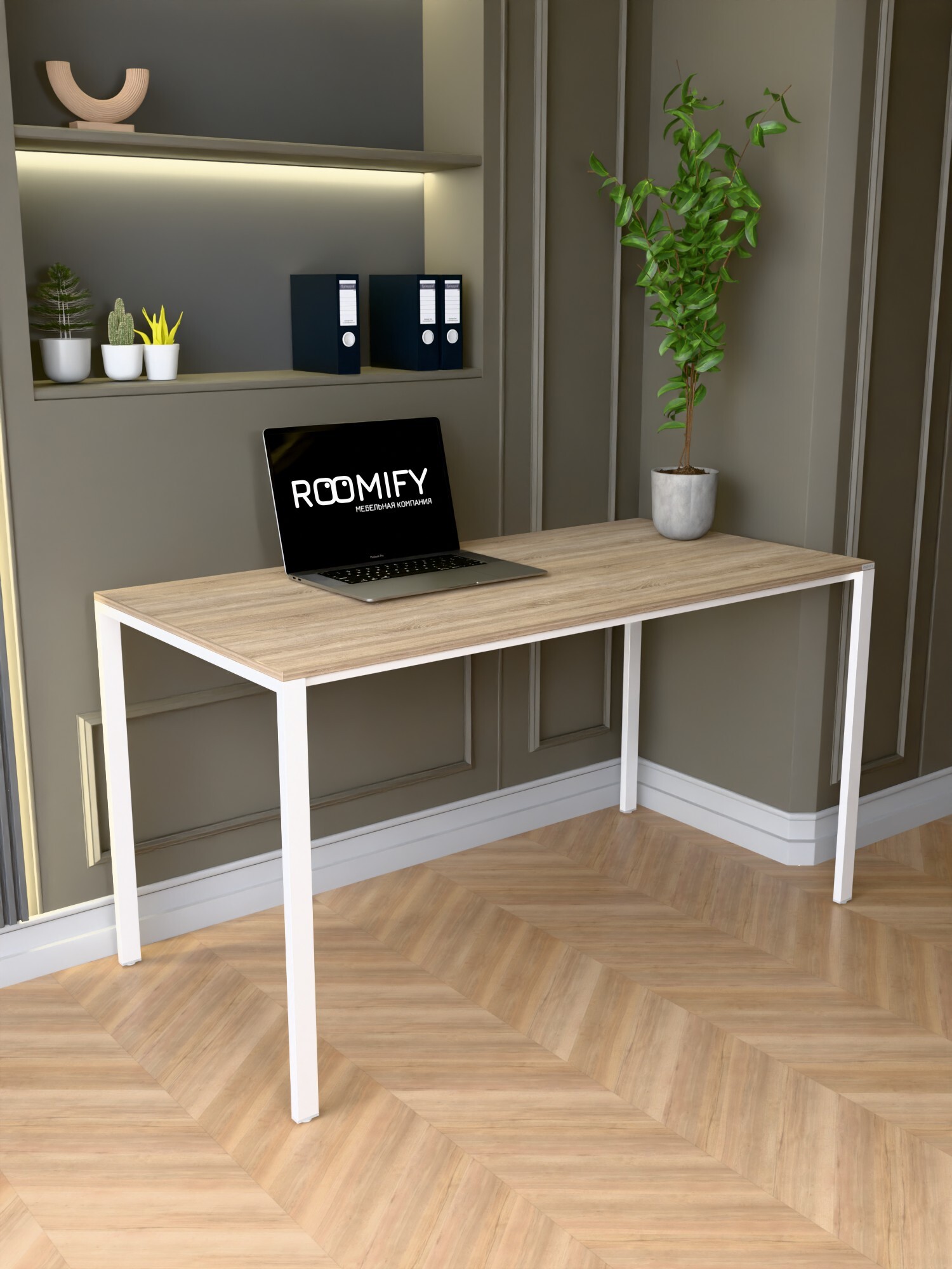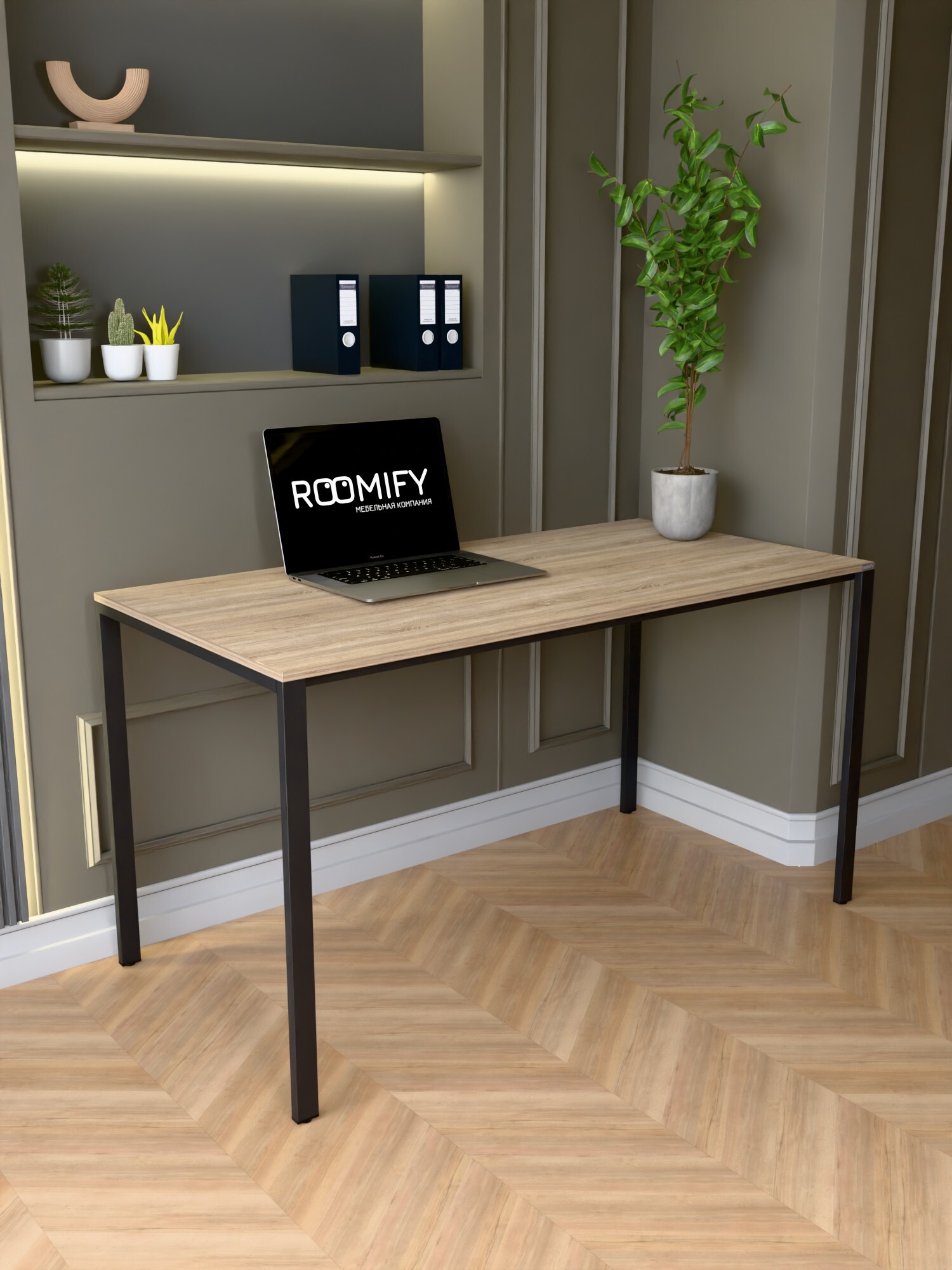 Стол RAIDEN — универсальный рабочий стол в минимализме RAIDEN создаёт аккуратное пространство для работы и учёбы: прямые металлические опоры по углам и тонкая рама под столешницей обеспечивают жёсткость без громоздкости, удобно убирать и прокладывать кабели. Идеален для дома, офиса и коворкинга. Производство в России, компания ROOMIFY — стабильное качество и аккуратные стыки. Преимущества Столешница ЛДСП 16 мм с кромкой ПВХ 2 мм — прочная, легко очищается. Надёжное подстолье: толщина металла 1,5 мм, профиль опор 40×20 мм, перемычки 20×20 мм — устойчивая конструкция без «раскачки». 4 цвета ЛДСП: Дуб Табачный, Белый, Дуб Сонома, Ателье Светлый. Подстолья: Белый или Чёрный муар — легко вписать в светлый или тёмный интерьер. Размеры на выбор: ширина 100/120/135 см, глубина 60/70 см — подберите под площадь комнаты и задачи. RAIDEN выглядит аккуратно, занимает минимум места и выдерживает ежедневные нагрузки. Выберите цвет и размер — добавьте стол в корзину и соберите стильное, долговечное и удобное рабочее место.