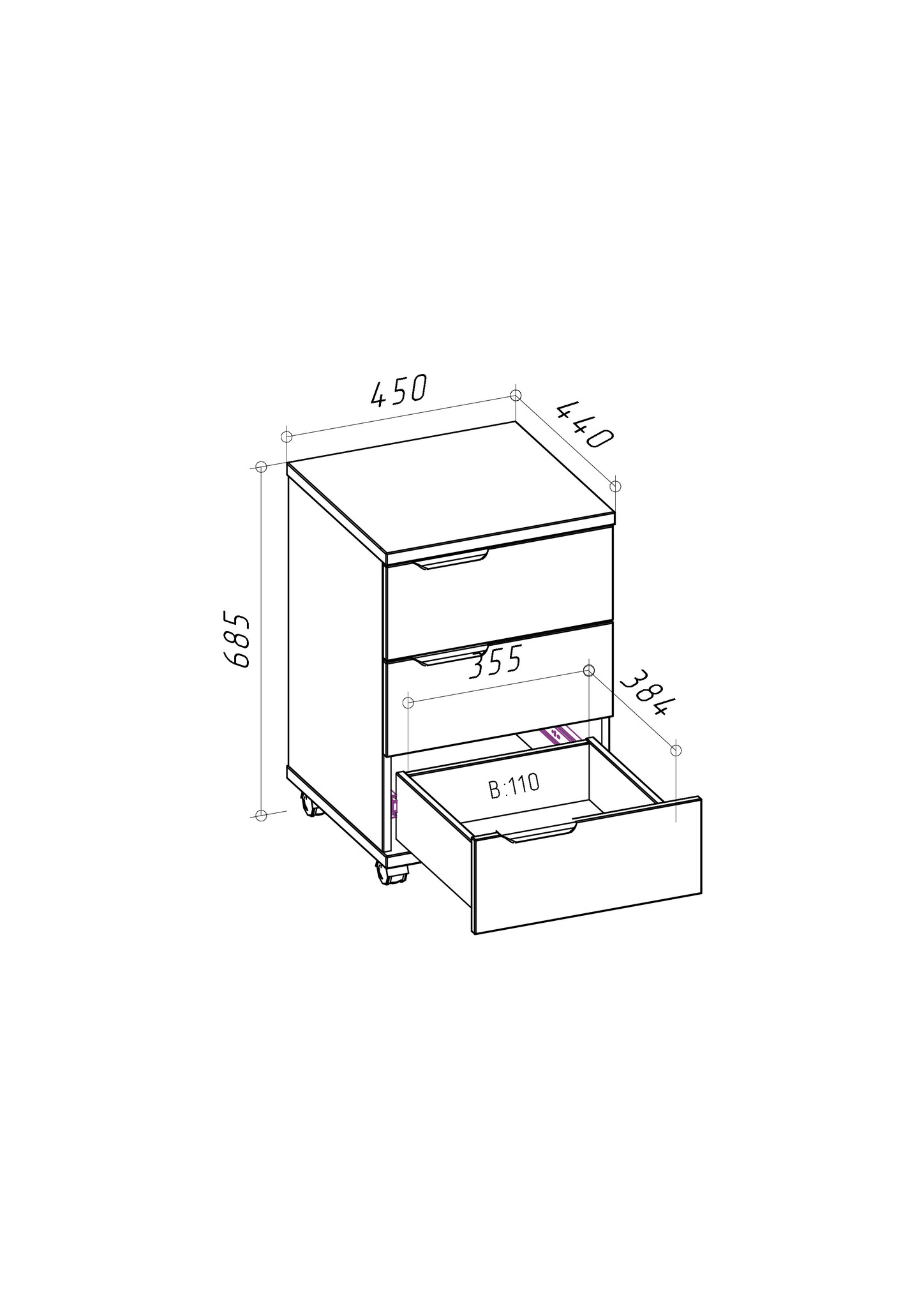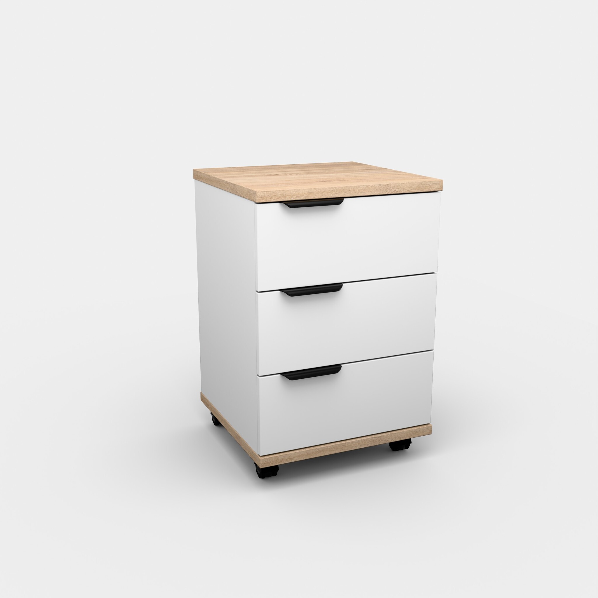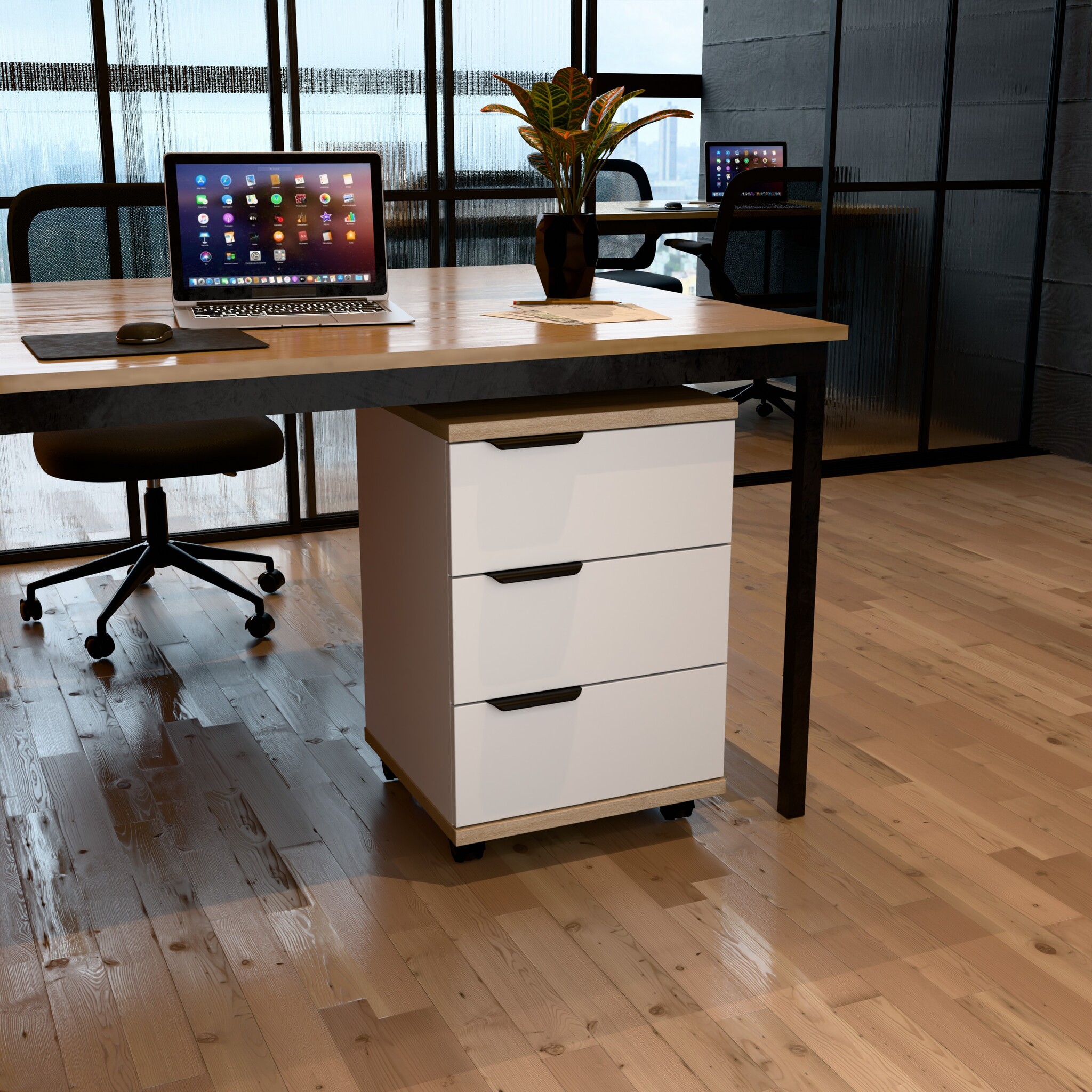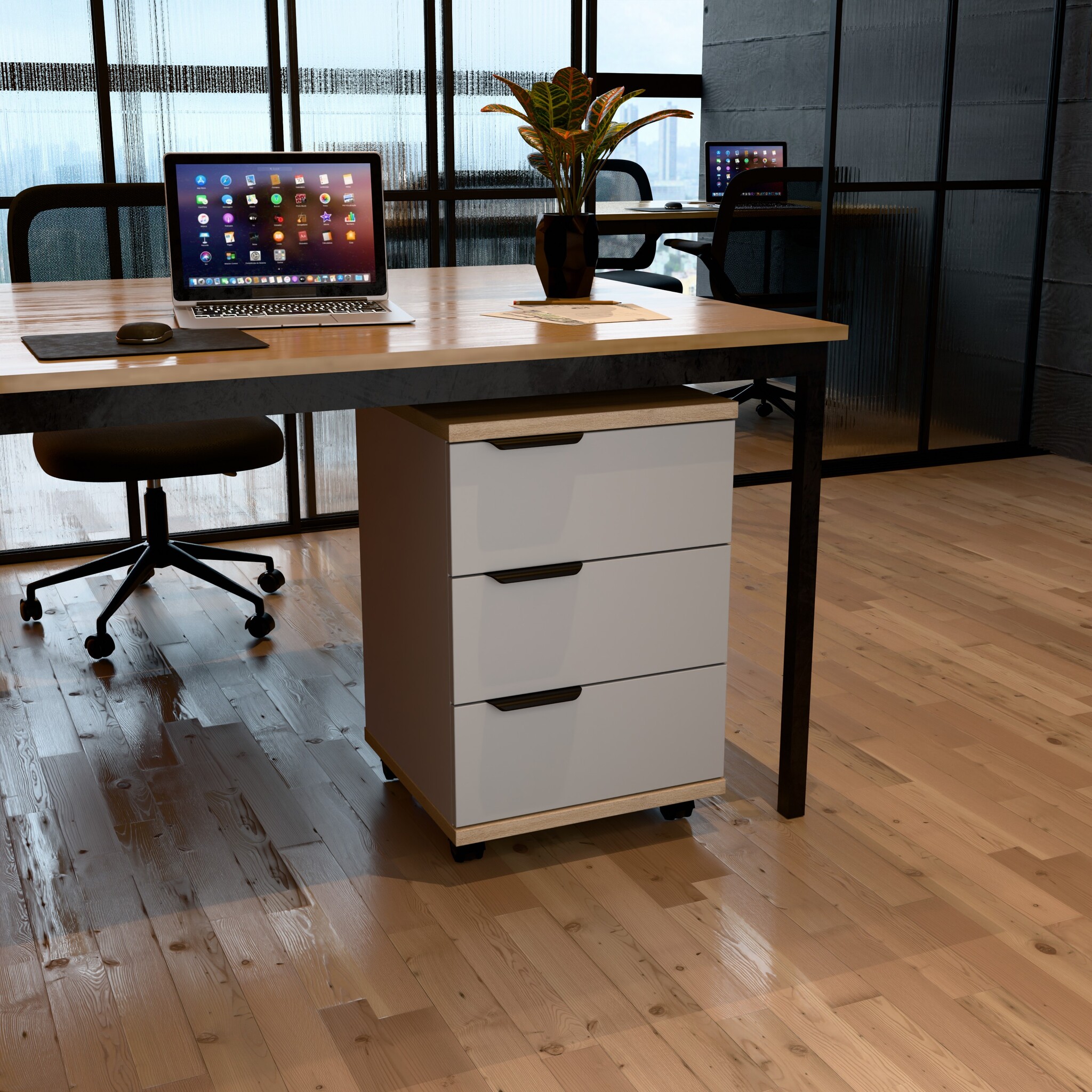 Оптимизируйте свое рабочее пространство с этой стильной и функциональной подкатной тумбой. Ее минималистичный дизайн сочетает в себе удобную эргономику и лёгкость, создавая современный и привлекательный вид. Три вместительных ящика с удобными черными ручками обеспечивают достаточно места для хранения документов, канцелярских принадлежностей и других необходимых вещей. Благодаря колесикам тумбу легко перемещать, что позволяет организовать пространство в соответствии с вашими потребностями. Эта подкатная тумба идеально подходит для тех, кто ценит порядок и эффективность на рабочем месте.