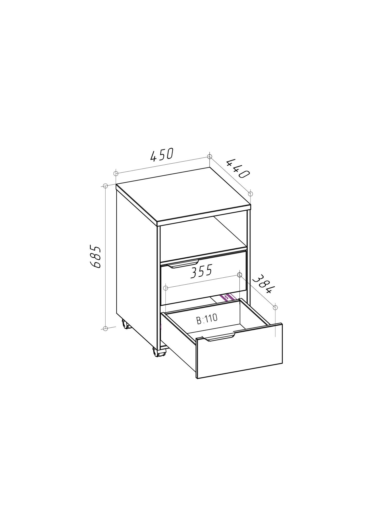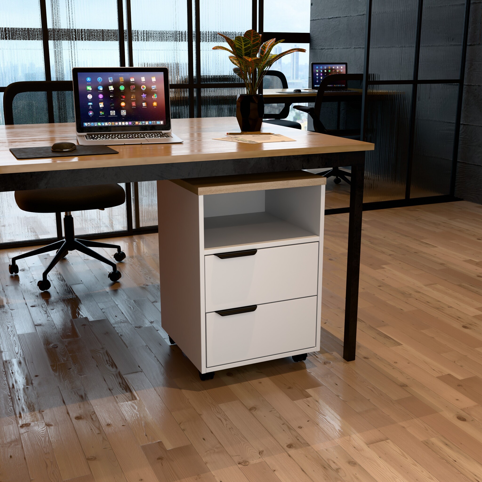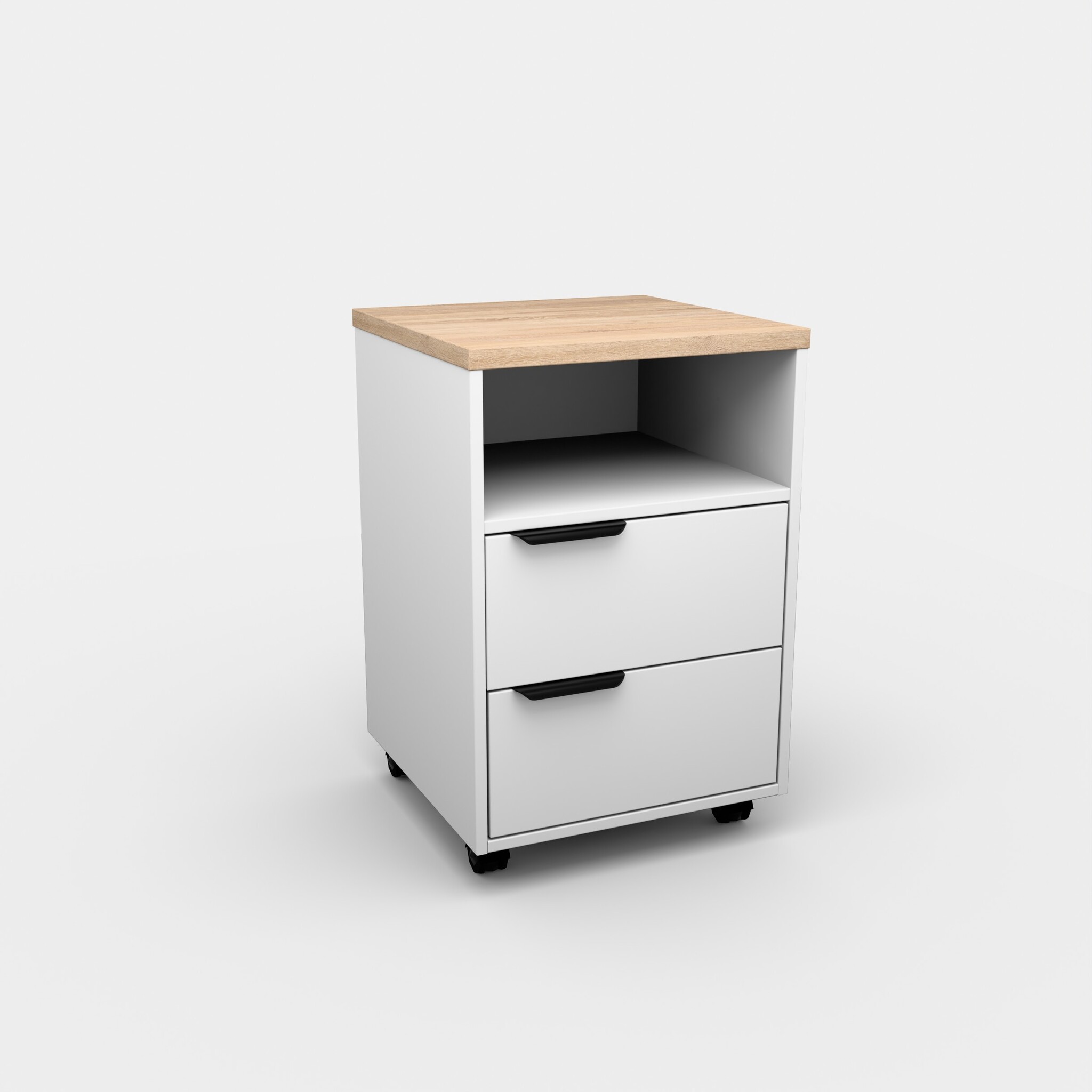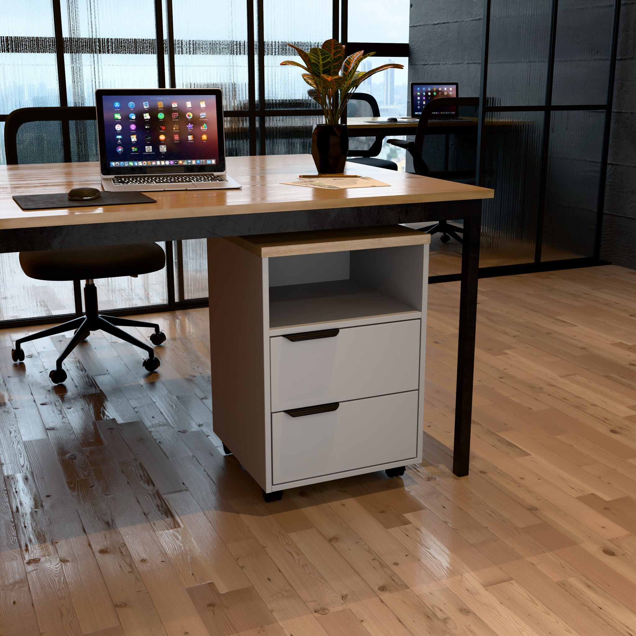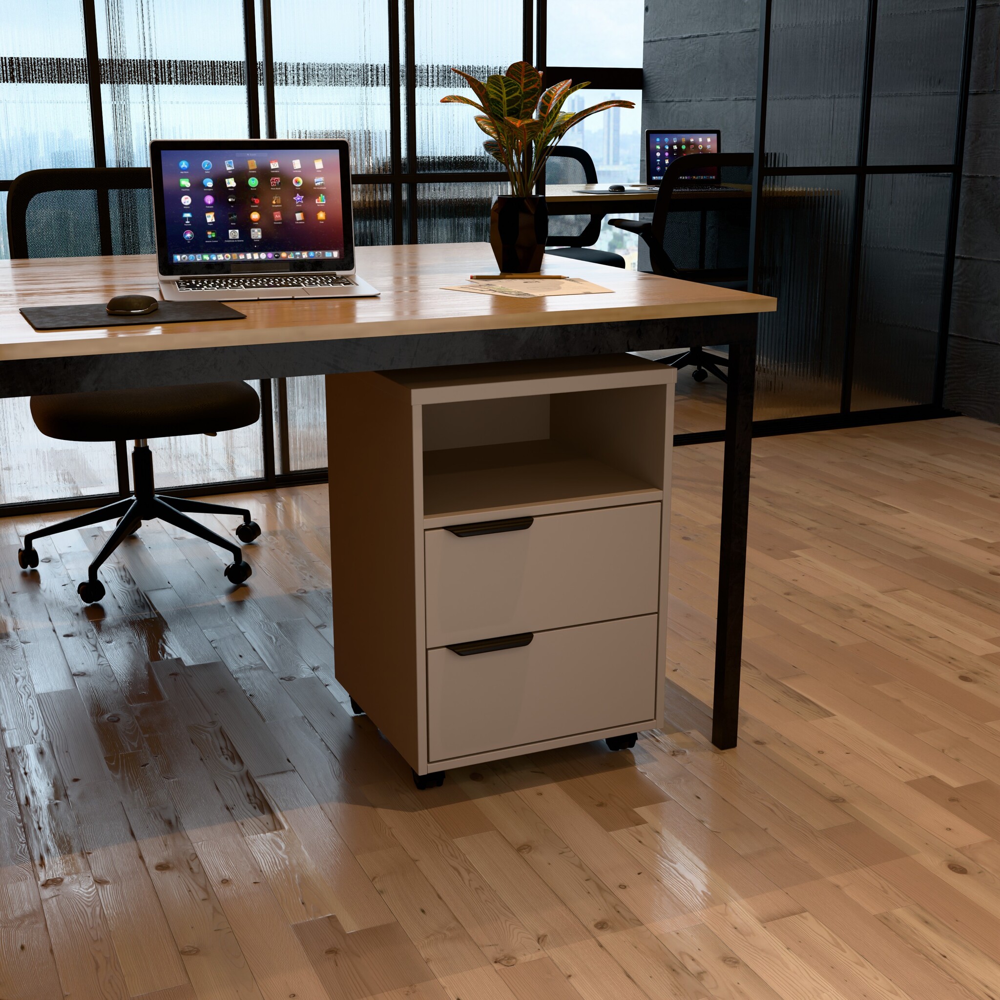 Организуйте свое рабочее пространство с максимальным комфортом с этой стильной и мобильной тумбой. Два вместительных ящика с элегантными черными ручками и открытая ниша предоставляют универсальные возможности для хранения. Разместите необходимые документы и канцелярские принадлежности в ящиках, а в нише удобно держать под рукой книги или другие предметы. Благодаря колесикам тумба легко перемещается, позволяя создать идеальную организацию рабочего пространства. Эта подкатная тумба - идеальное решение для тех, кто ценит стиль, функциональность и мобильность.