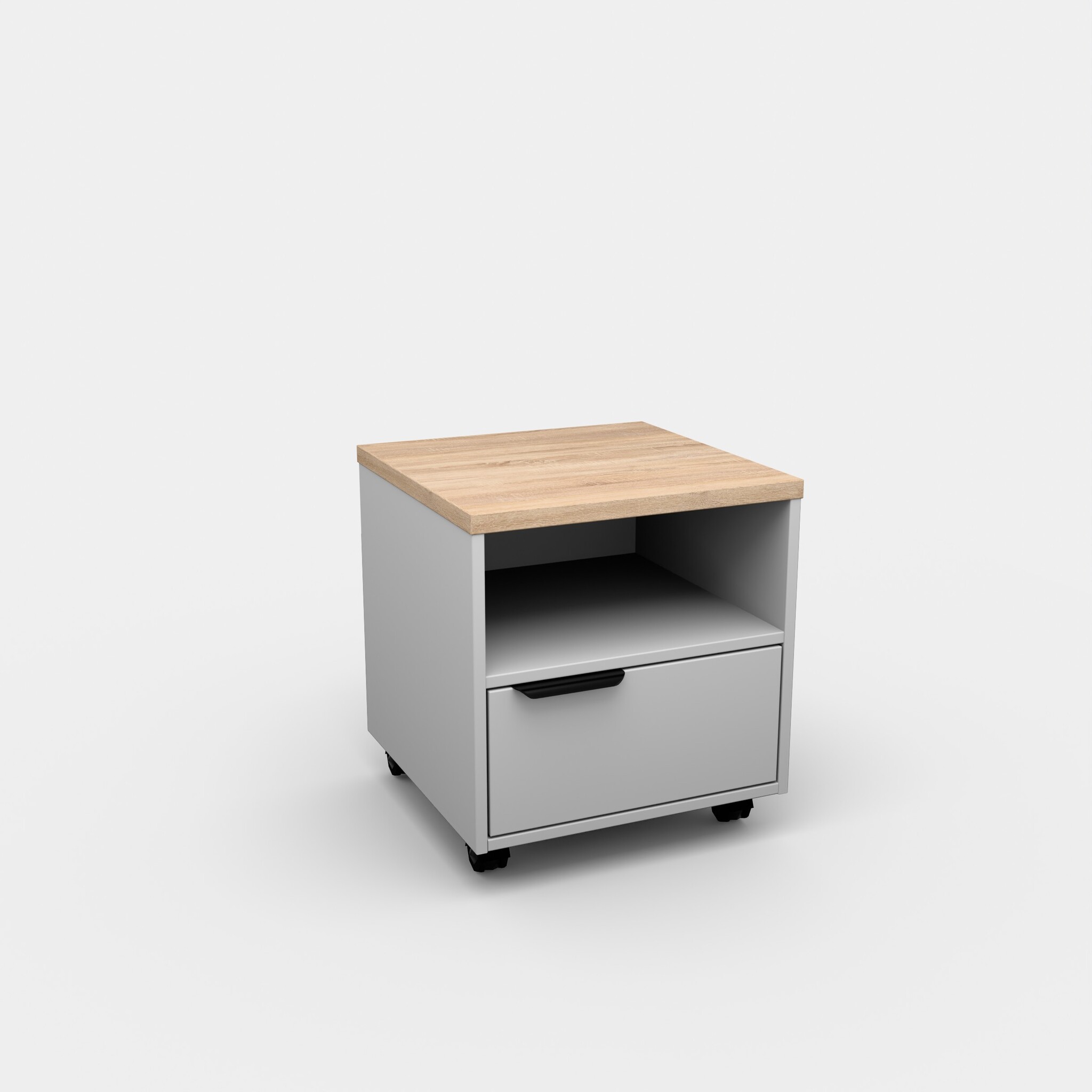 Компактная и функциональная подкатная тумба, идеально подходящая для оптимизации рабочего пространства. Прочный корпус в минималистичном стиле гармонично сочетается с теплой столешницей , создавая современный и привлекательный вид. Вместительный ящик с удобной черной ручкой и открытая ниша позволяют эффективно организовать хранение. Разместите необходимые документы и канцелярские принадлежности в ящике, а в нише - часто используемые предметы, которые всегда должны быть под рукой. Благодаря колесикам тумбу легко перемещать, адаптируя пространство под ваши потребности. Эта подкатная тумба - оптимальное решение для тех, кто ценит порядок, стиль и мобильность в рабочей среде.