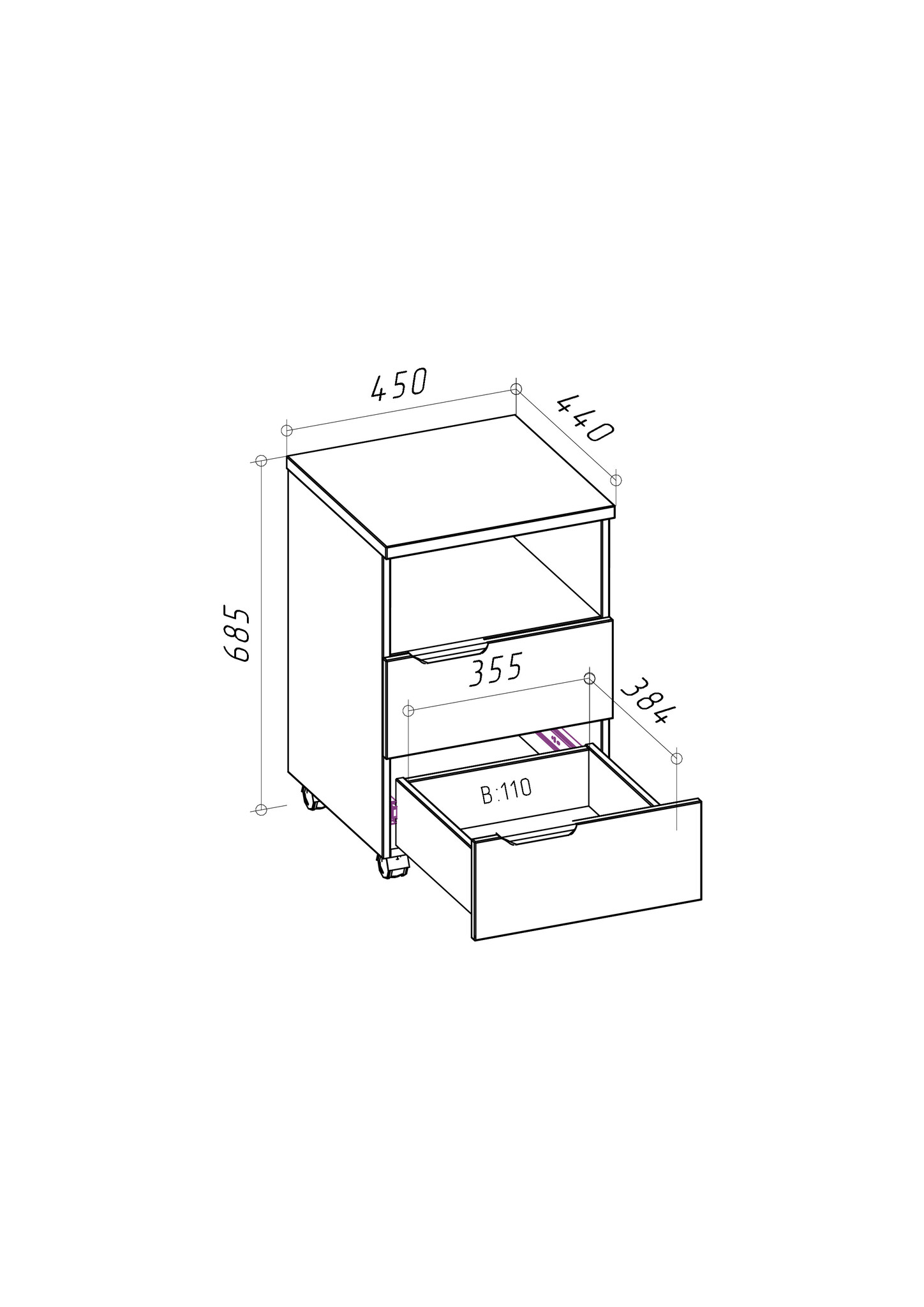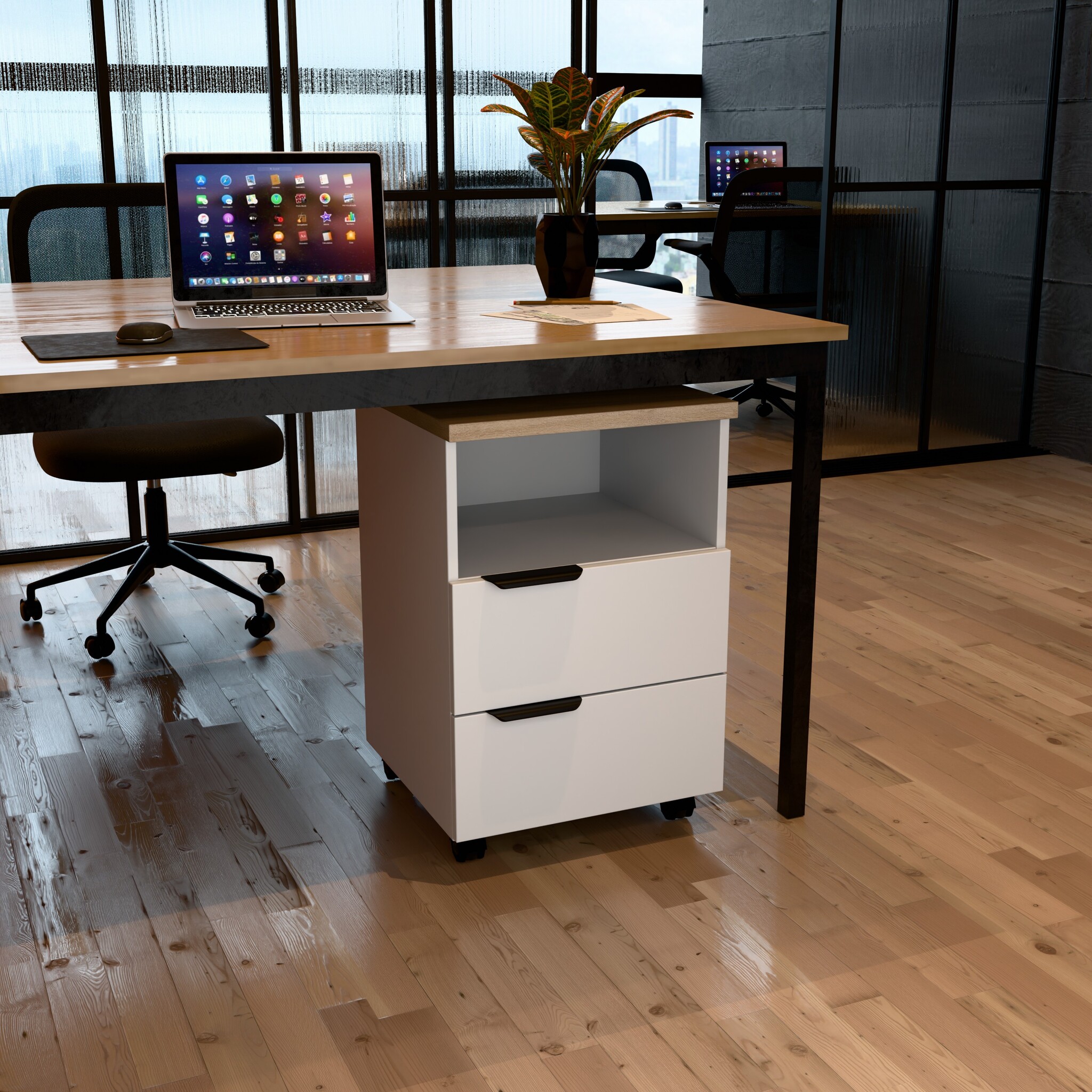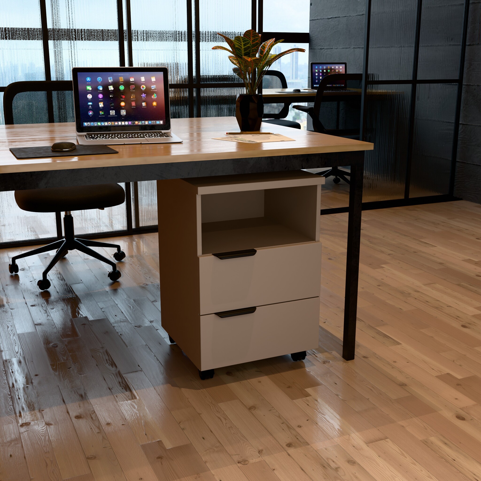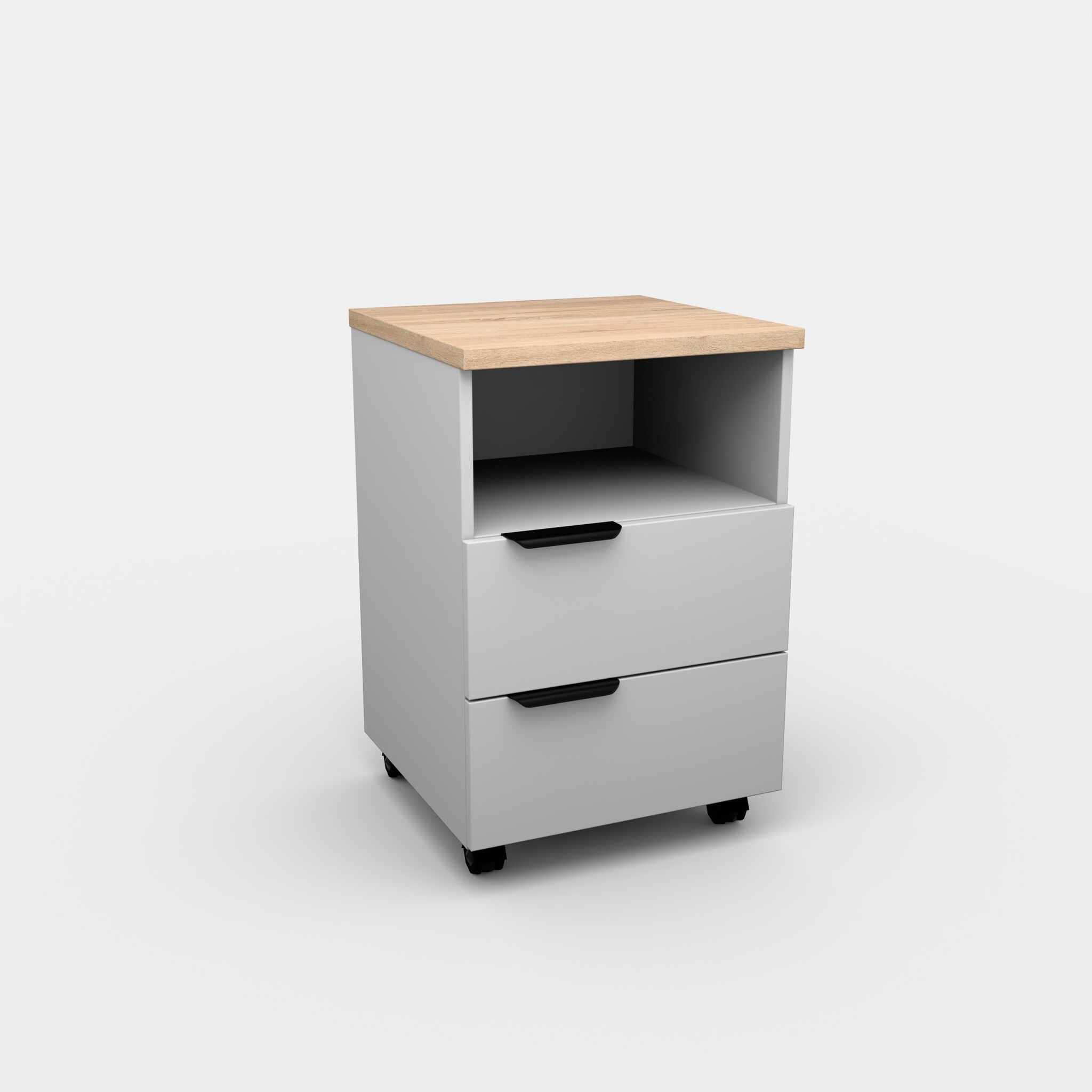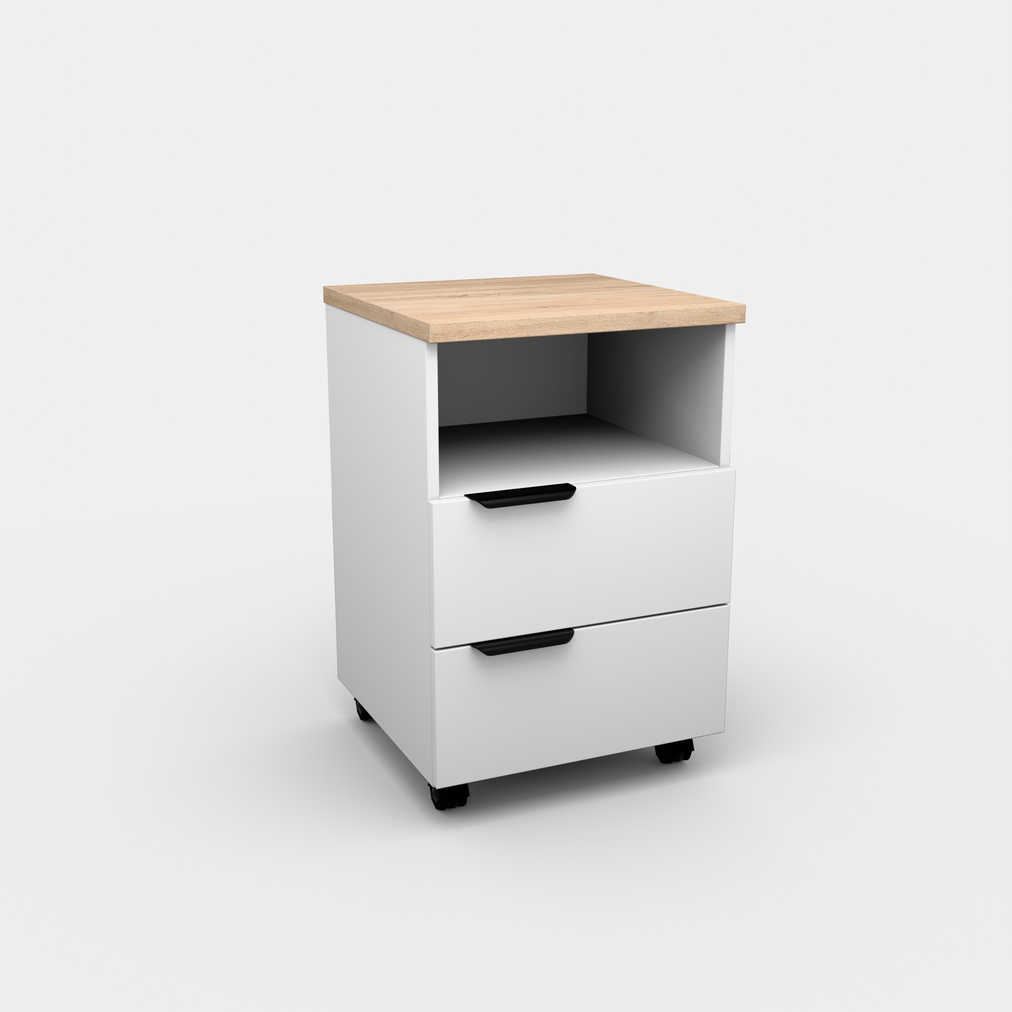 Организуйте свое рабочее пространство с максимальным комфортом с этой стильной и мобильной тумбой. Два вместительных ящика с элегантными черными ручками и открытая ниша предоставляют универсальные возможности для хранения. Разместите необходимые документы и канцелярские принадлежности в ящиках, а в нише удобно держать под рукой книги или другие предметы. Благодаря колесикам тумба легко перемещается, позволяя создать идеальную организацию рабочего пространства. Эта подкатная тумба - идеальное решение для тех, кто ценит стиль, функциональность и мобильность.