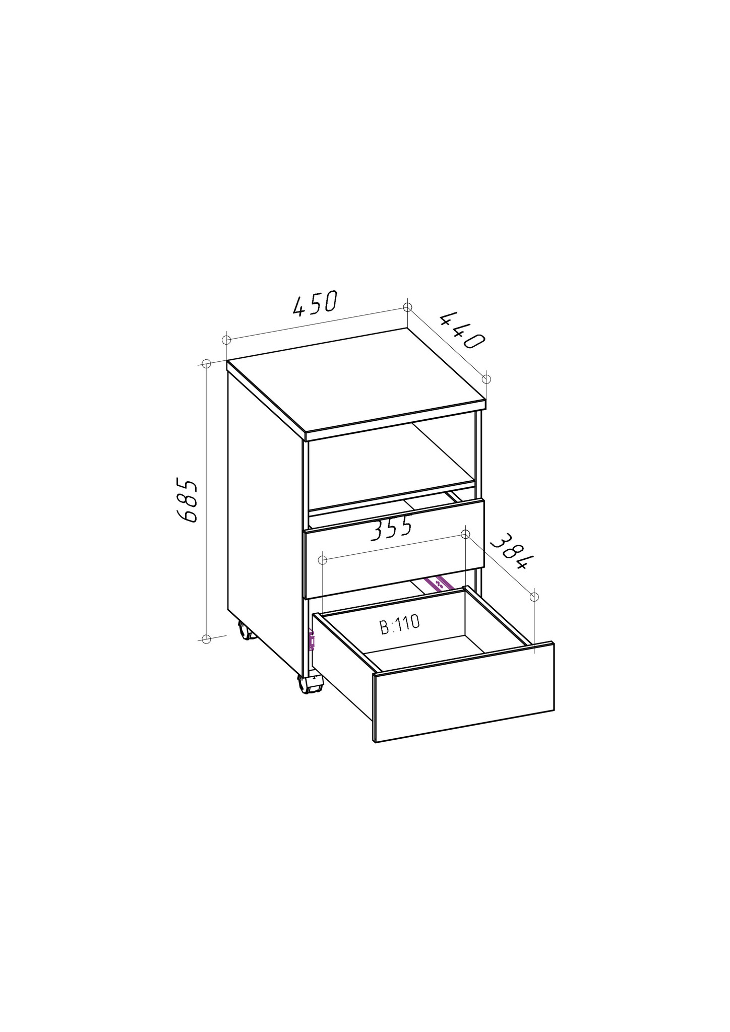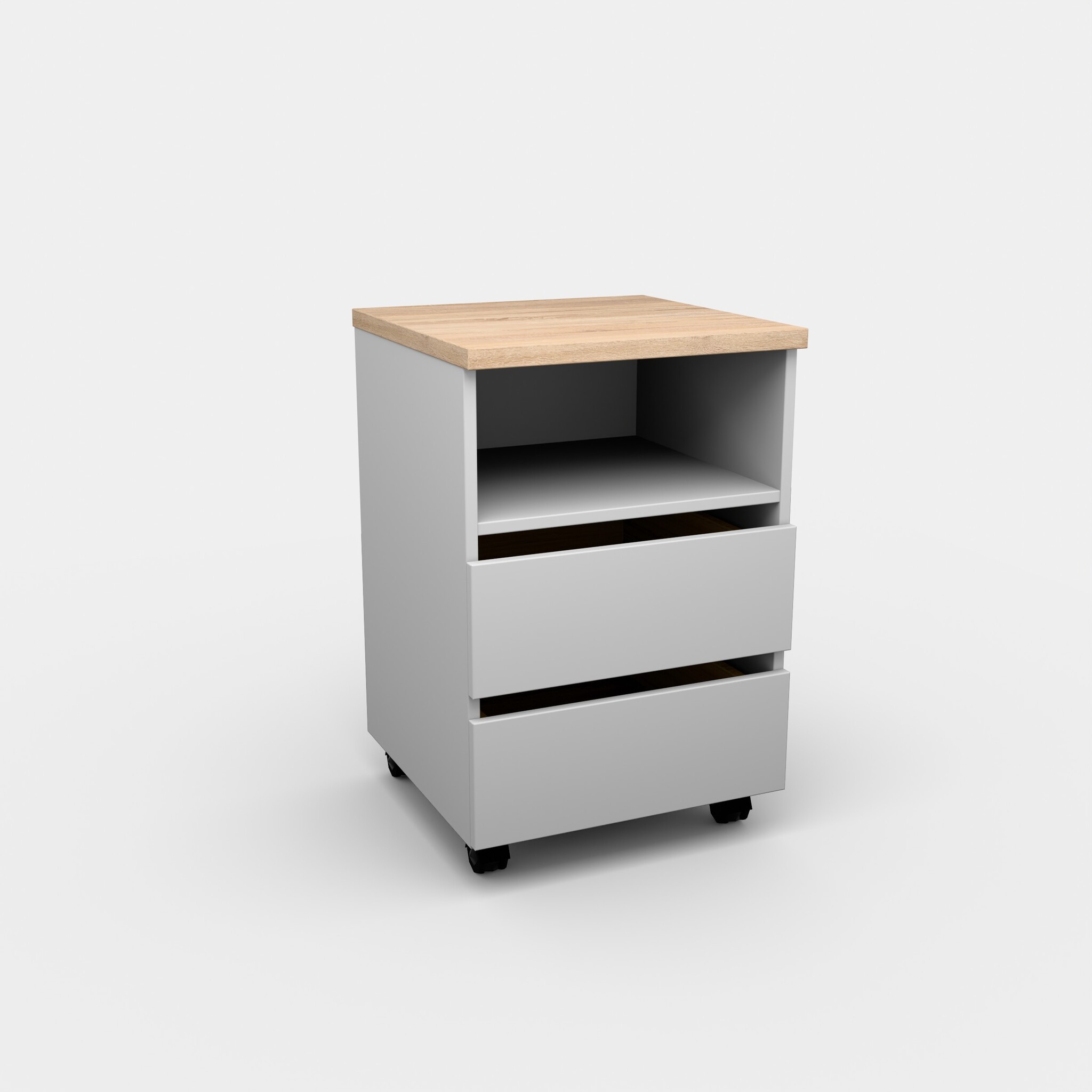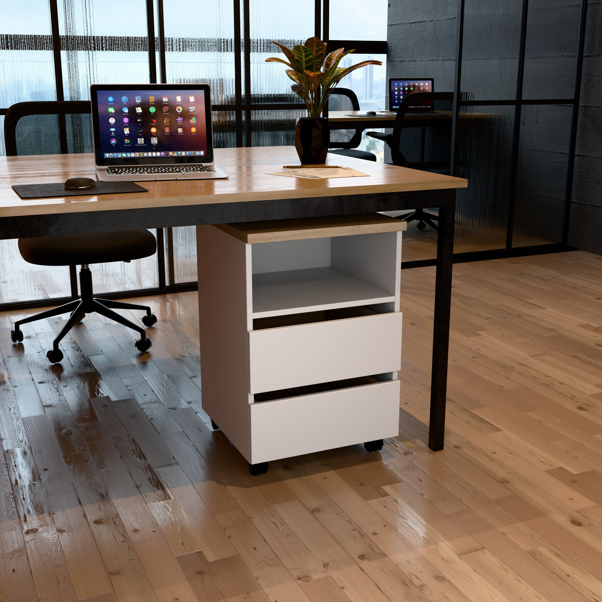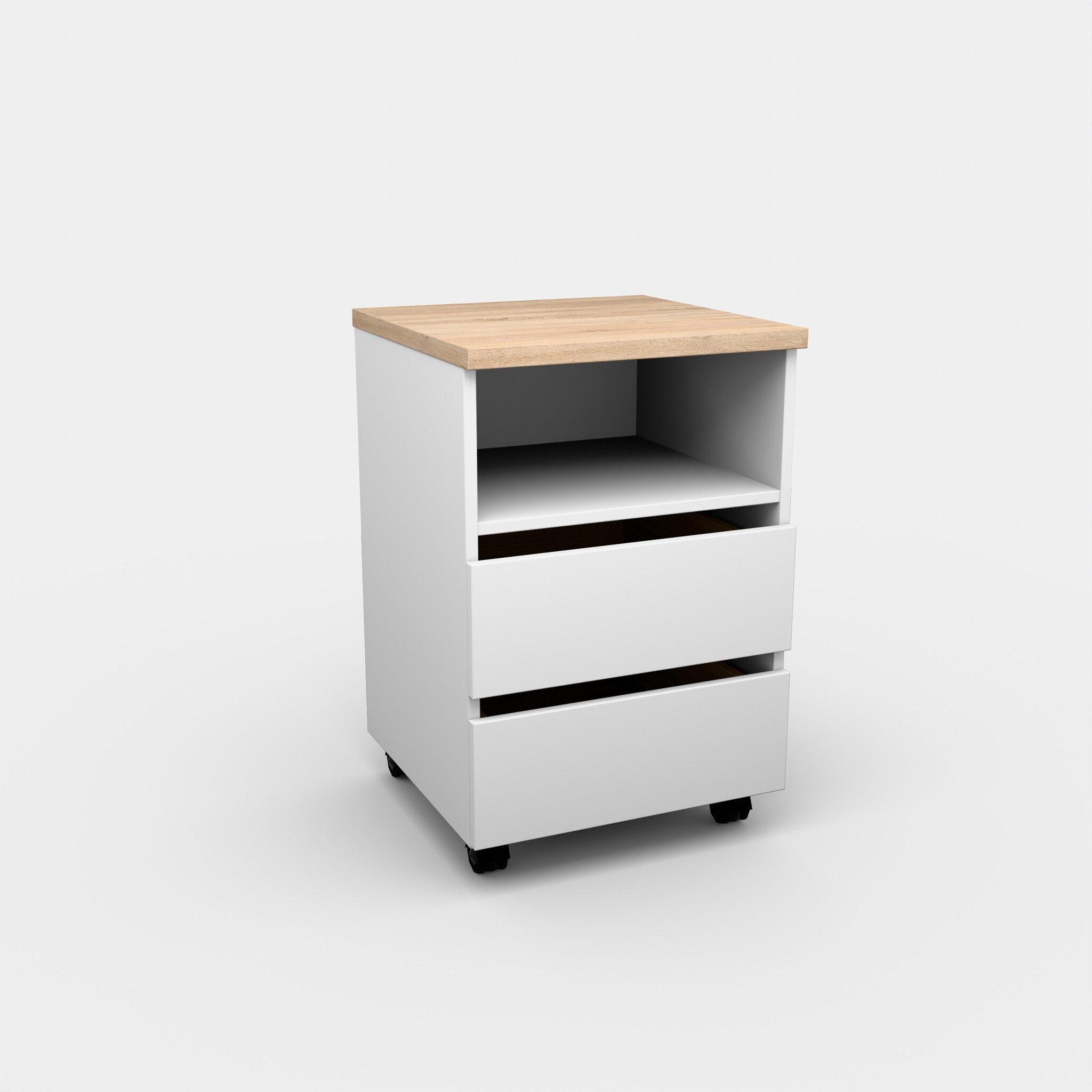 Организуйте свое рабочее пространство с максимальным комфортом с этой стильной и мобильной тумбой. Два вместительных ящика с элегантными черными ручками и открытая ниша предоставляют универсальные возможности для хранения. Разместите необходимые документы и канцелярские принадлежности в ящиках, а в нише удобно держать под рукой книги или другие предметы. Благодаря колесикам тумба легко перемещается, позволяя создать идеальную организацию рабочего пространства. Эта подкатная тумба - идеальное решение для тех, кто ценит стиль, функциональность и мобильность.