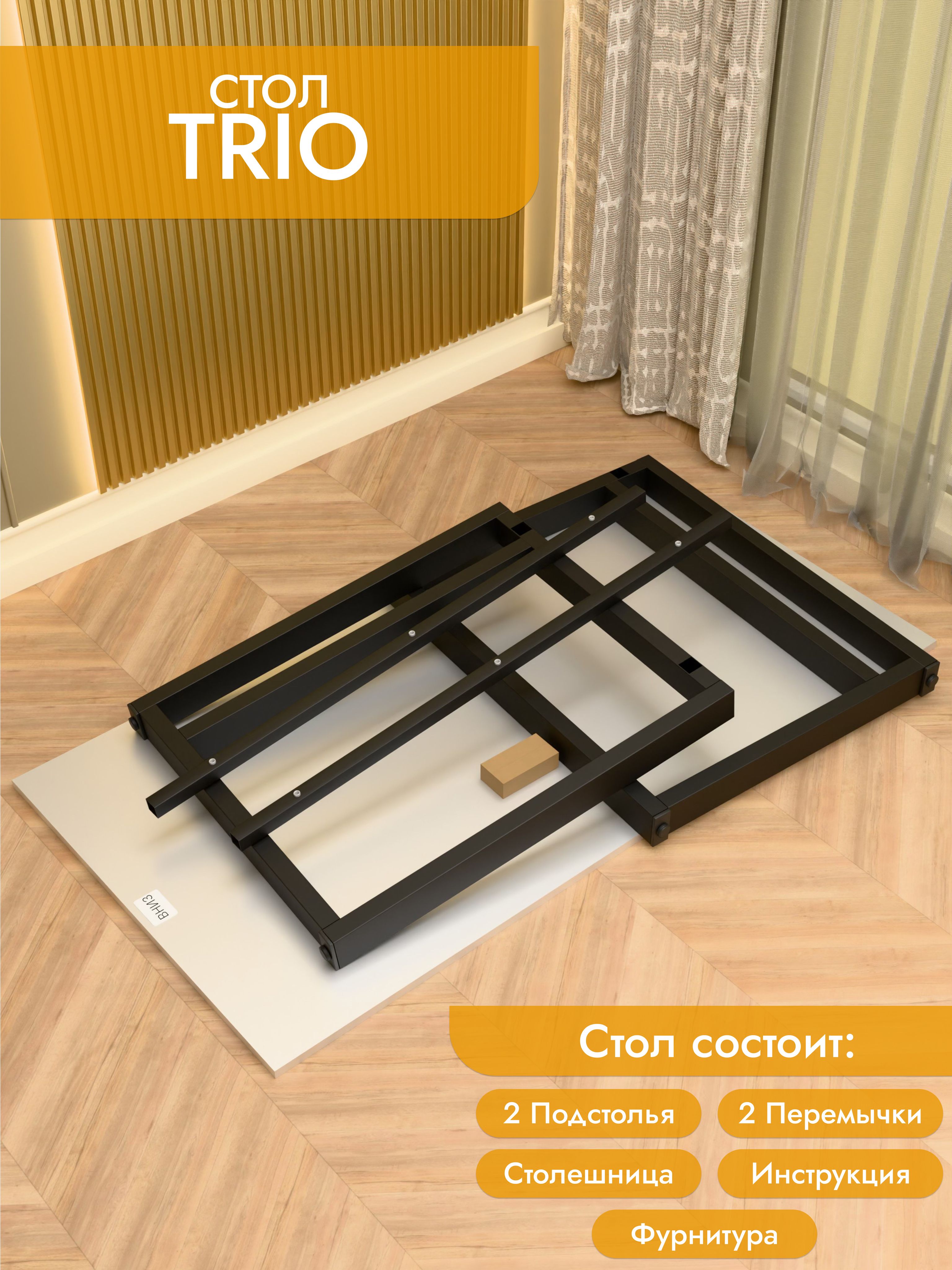 Практичный и современный стол Trio имеет прочное прямоугольное основание и дополнительную царгу для усиления конструкции. Это решение обеспечивает надежность даже при интенсивной эксплуатации. Столешница из ЛДСП премиум с кромкой устойчива к повседневным нагрузкам, а порошковое покрытие металла защищает от повреждений. Размеры: ширина 100/135/155 см, глубина 60/70 см. Цвета: белая, антрацит, ателье светлый, дуб Сонома, дуб Табак. Цвет подстолья: белый или черный. Trio — выбор для тех, кто ценит надежность и современный дизайн.
